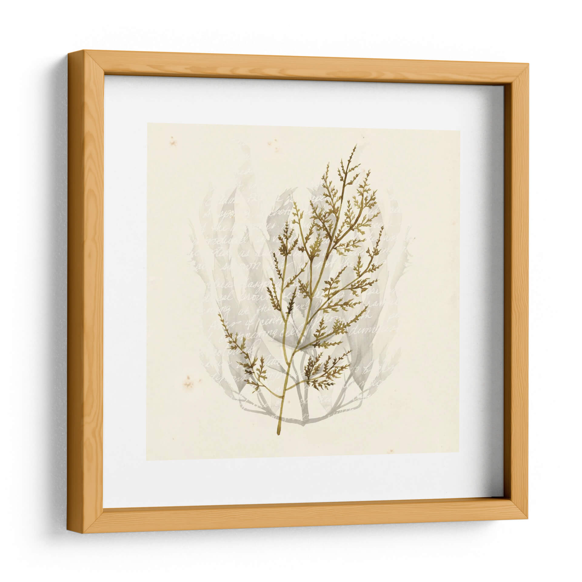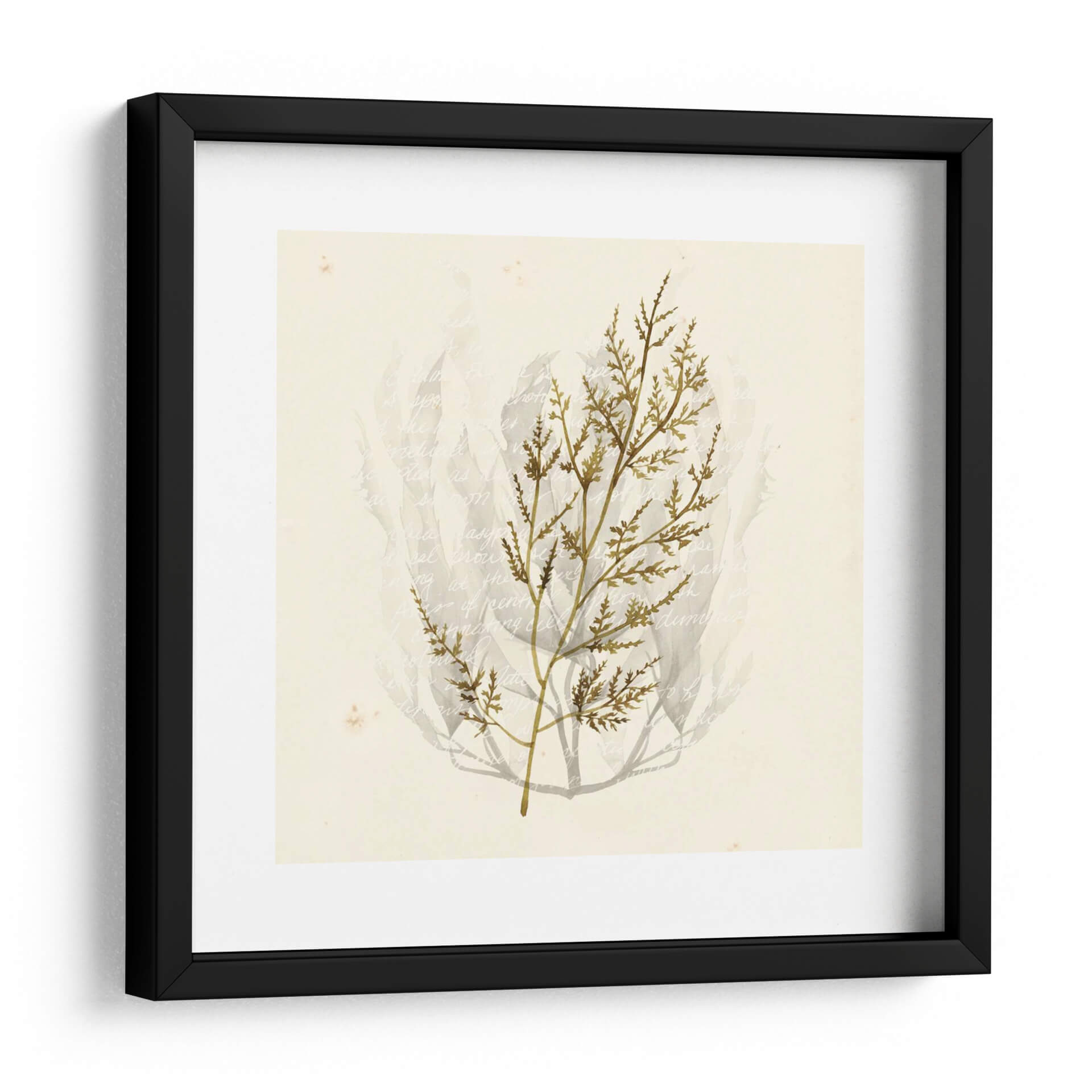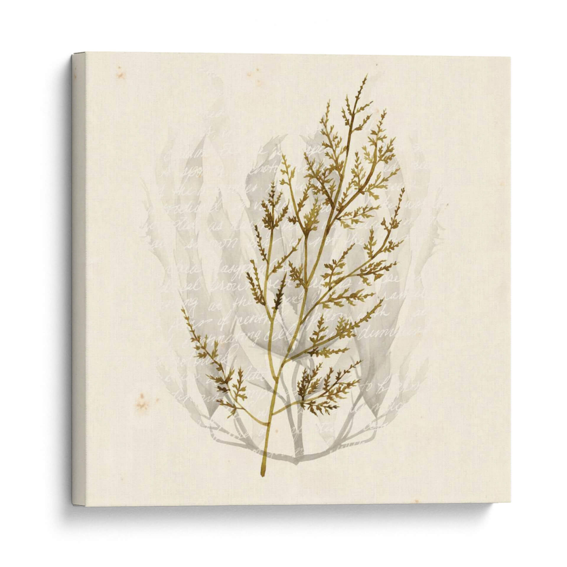 Sumérgete en la serenidad y la belleza botánica con 'Algas Vivas I', una obra de arte decorativo que captura la delicadeza de la flora marina. Esta pieza evoca una sensación de calma y conexión con la naturaleza, presentando un detallado estudio de algas en tonos dorados y ocres sobre un fondo de pergamino antiguo con sutiles texturas de escritura desvanecida. La composición, centrada en la elegancia de la rama de alga, crea un punto focal orgánico que invita a la contemplación. El estilo, que fusiona lo botánico con un toque vintage y etéreo, la convierte en una adición perfecta para cualquier espacio que busque un aire de sofisticación tranquila y natural. Ideal para salones, dormitorios o estudios, este cuadro decorativo aportará un elemento de serenidad y un recordatorio sutil de la intrincada belleza del mundo submarino. Su paleta de colores cálidos y terrosos se integra fácilmente en diversas decoraciones, aportando calidez y un toque artístico refinado. Descubre la armonía y la elegancia de la naturaleza capturada en 'Algas Vivas I'.
