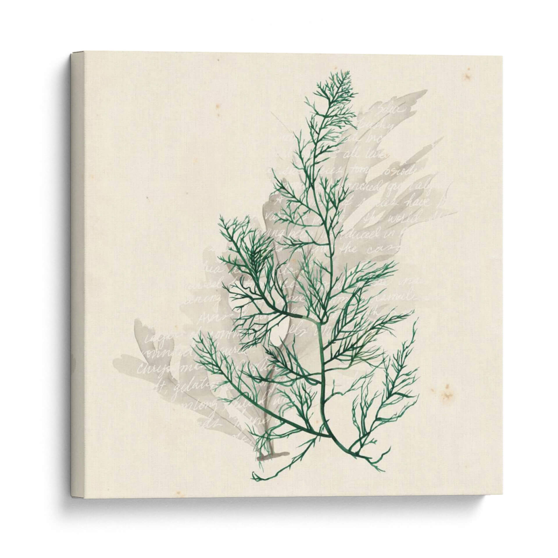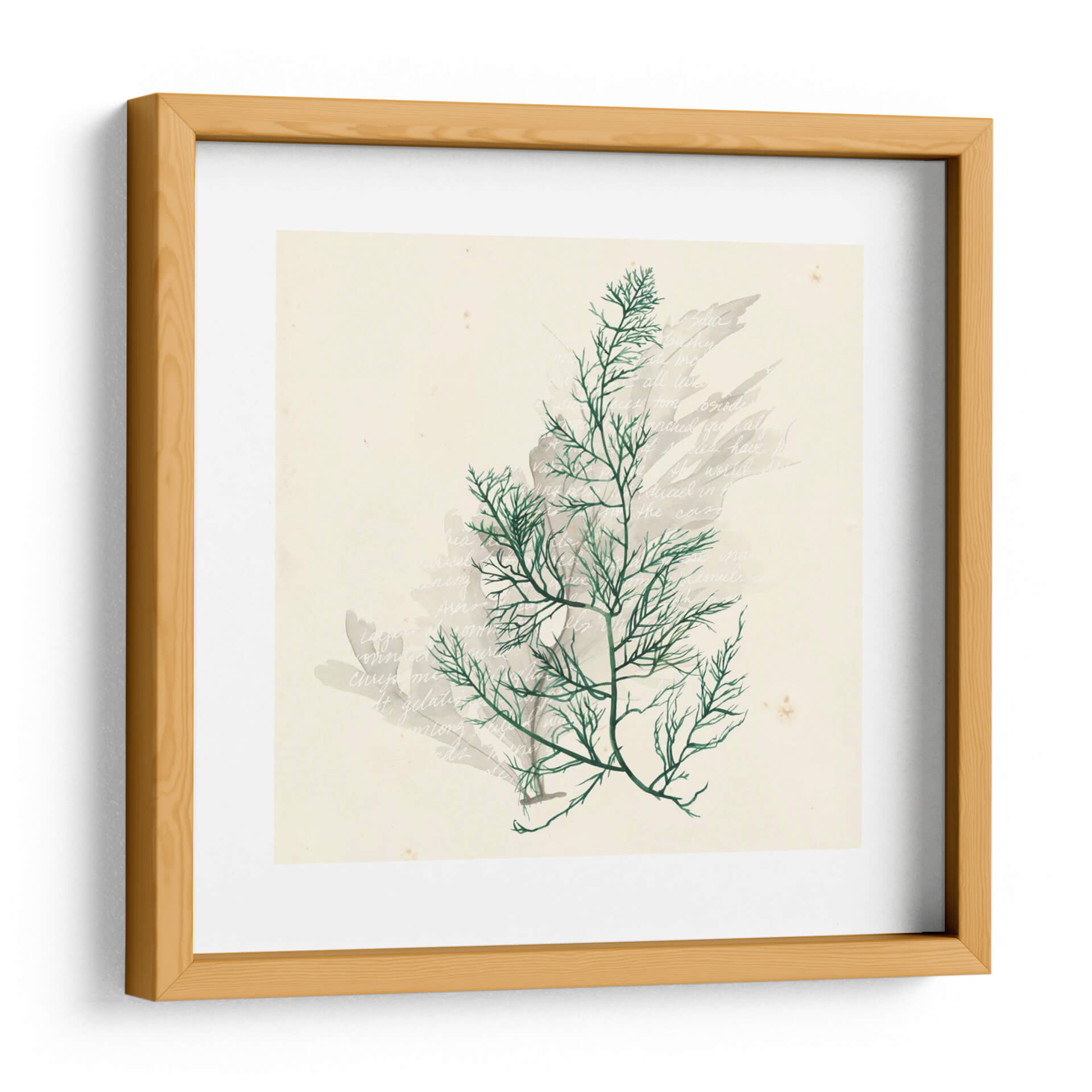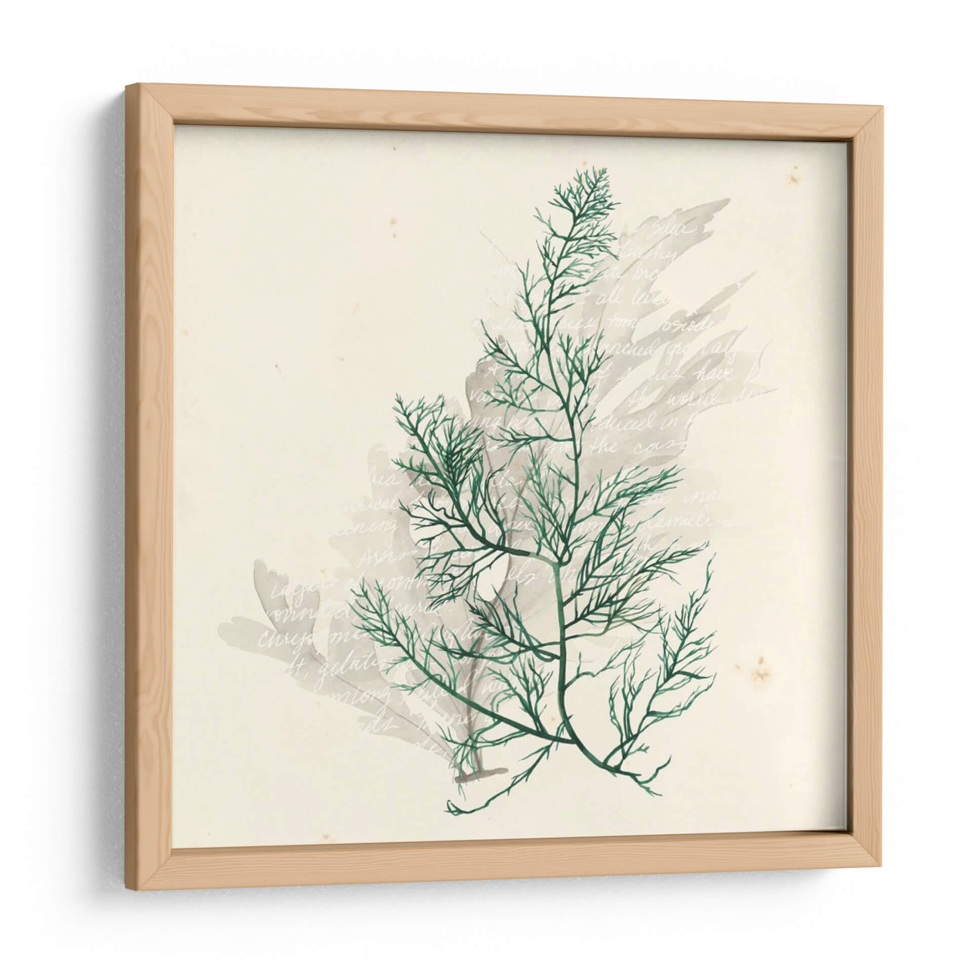 Sumérgete en la serena belleza de "Algas Vívidas IV", una obra de arte contemporáneo que captura la delicadeza de la vida marina con un toque etéreo. Esta pieza, creada por Grace Popp, presenta un detallado estudio de algas marinas en un vibrante tono verde esmeralda, que contrasta sutilmente con un fondo de textura cremosa y desgastada, evocando el encanto de los antiguos herbario. Los trazos finos y la composición delicada invitan a la contemplación, mientras que las sombras tenues y el texto manuscrito superpuesto en el fondo añaden una capa de misterio y profundidad histórica. "Algas Vívidas IV" es ideal para espacios que buscan un toque de naturaleza sofisticada y calma. Su paleta de colores neutros y verdes la convierte en una adición versátil para salones, dormitorios o estudios, aportando una sensación de tranquilidad y conexión con el mundo natural. Este cuadro decorativo no solo embellece, sino que también inspira paz y serenidad, transformando cualquier ambiente en un refugio de calma y elegancia natural.
