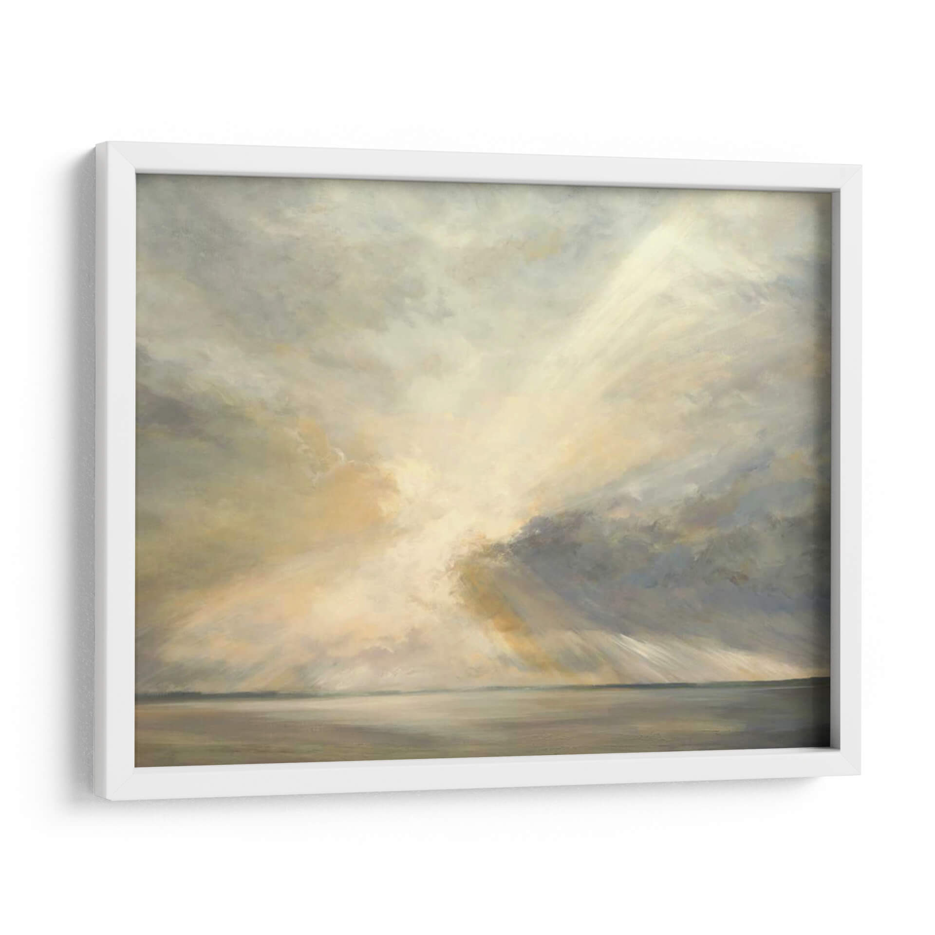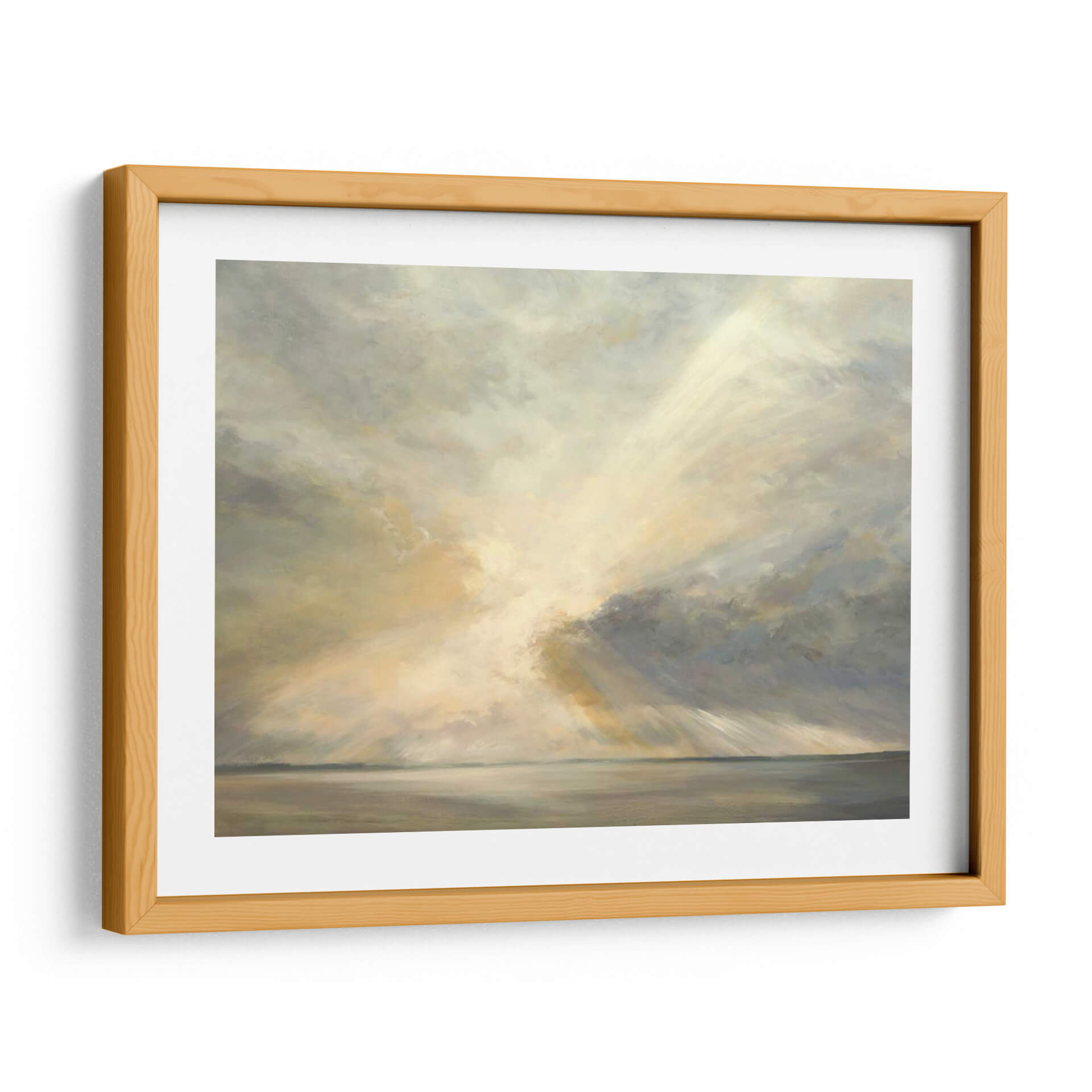Captura la serena majestuosidad de un nuevo comienzo con 'Amanecer en la Bahía', una obra de arte atmosférica de Sheila Finch. Esta pieza evoca la calma y la esperanza que acompañan a las primeras luces del día, donde el cielo se funde suavemente con el horizonte en una danza de tonos pastel y grises profundos. Los rayos de luz que se filtran a través de las nubes crean un juego de luces y sombras, aportando profundidad y una sensación etérea. La composición minimalista, centrada en la inmensidad del cielo y la quietud del mar, invita a la contemplación y a la introspección. El uso magistral del color, con sus sutiles gradaciones de amarillo pálido, dorado, azul grisáceo y tonos tierra, infunde una atmósfera de paz y renovación. Este cuadro decorativo es ideal para espacios que buscan transmitir tranquilidad y sofisticación, como dormitorios, salas de estar o estudios, añadiendo un toque de naturaleza serena y elegancia atemporal a cualquier ambiente. La obra de Sheila Finch es una invitación a pausar y apreciar la belleza efímera de los momentos cotidianos, transformando tu hogar en un santuario de calma.