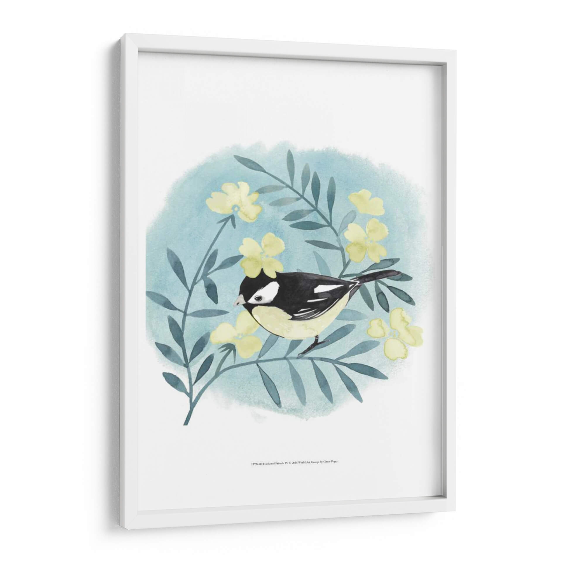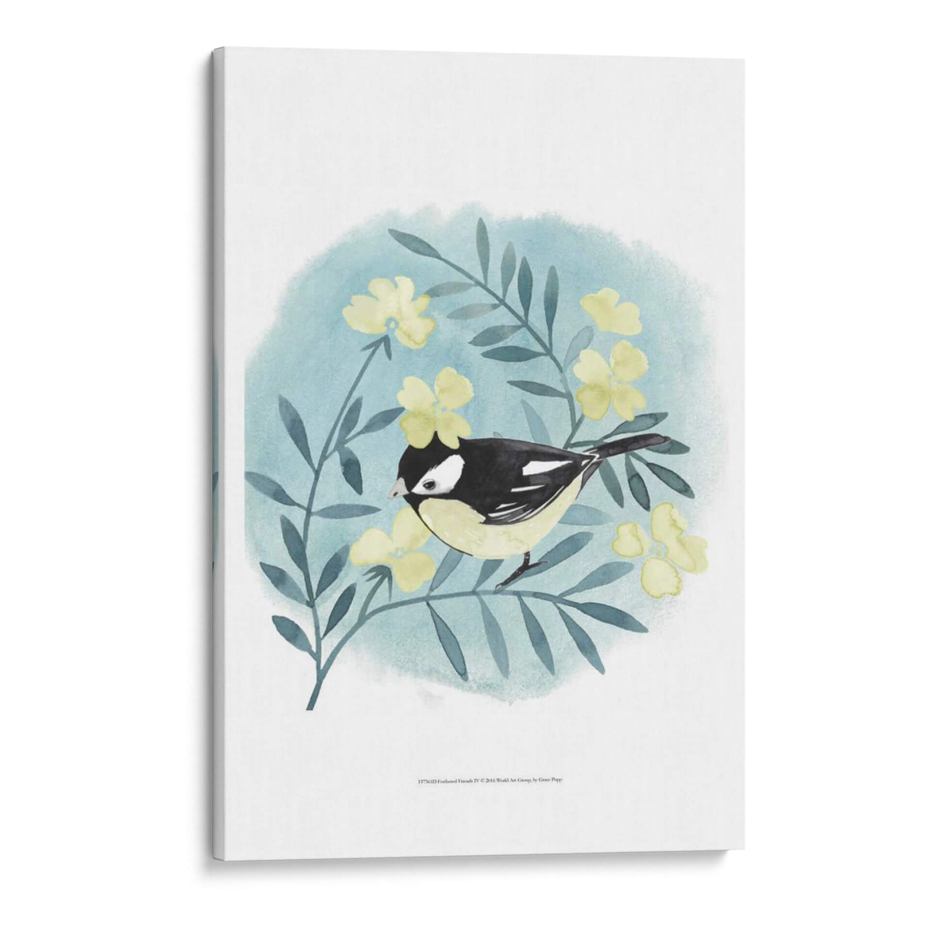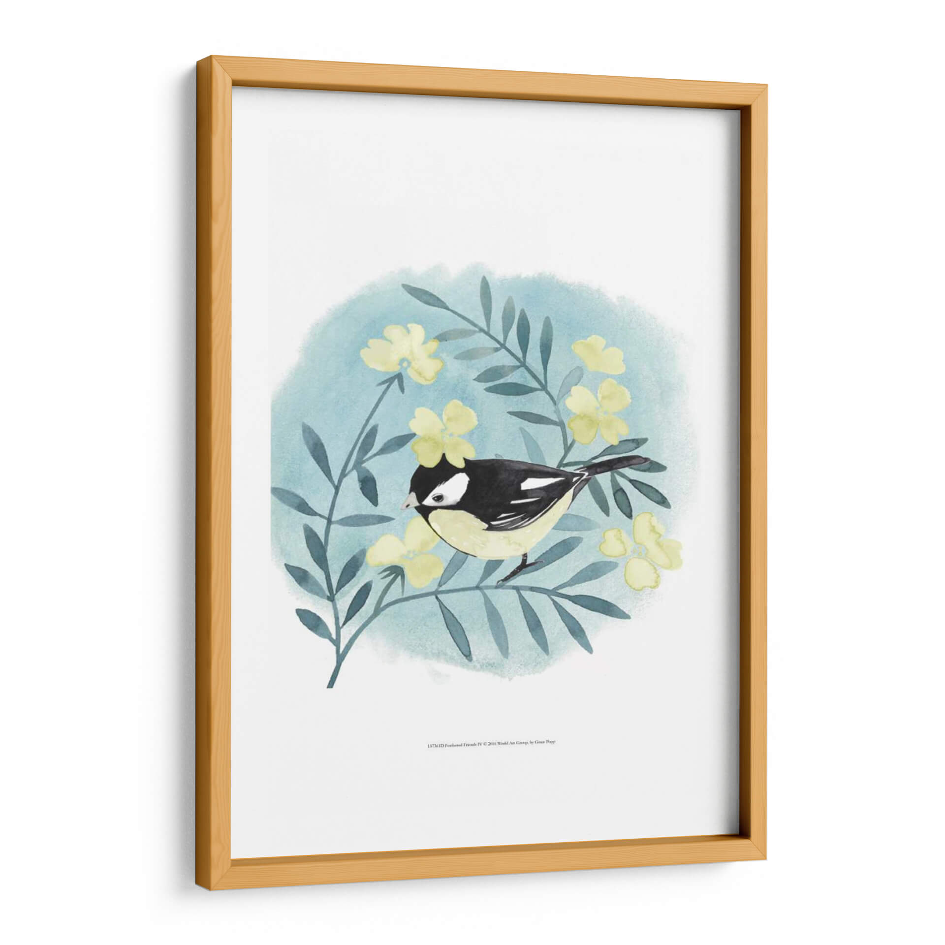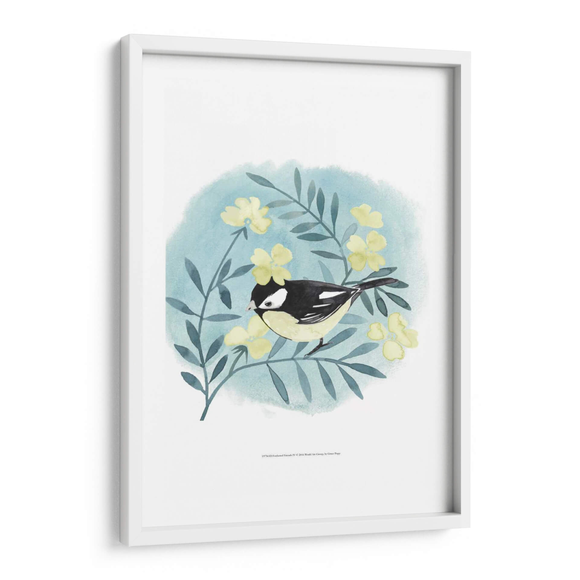 Infundido con la dulzura de la naturaleza, "Amigos Con Plumas IV" de Grace Popp es un cuadro decorativo que captura la delicadeza de un ave posada entre flores amarillas y follaje verde azulado. La obra de arte presenta una acuarela suave con un estilo que evoca la ilustración botánica, pero con un toque contemporáneo. El fondo, con sus sutiles pinceladas de acuarela en tonos turquesa, crea una atmósfera serena y etérea, permitiendo que el protagonista, un pájaro de plumaje blanco y negro, resalte con su encantadora presencia. Las pequeñas flores amarillas y las hojas en tonos fríos añaden un contraste vibrante pero armonioso, sugiriendo un momento de tranquilidad en un jardín primaveral. Este cuadro es ideal para añadir un toque de vida y serenidad a cualquier espacio, desde un dormitorio acogedor hasta una sala de estar luminosa o una oficina que busque inspiración. Su estilo accesible y su temática natural lo convierten en una pieza versátil que complementará decoraciones de estilo escandinavo, bohemio o minimalista. Descubre la belleza de la naturaleza capturada en acuarela y transforma tu hogar con esta encantadora obra de arte. Es una pieza perfecta para amantes de las aves y de la naturaleza.
