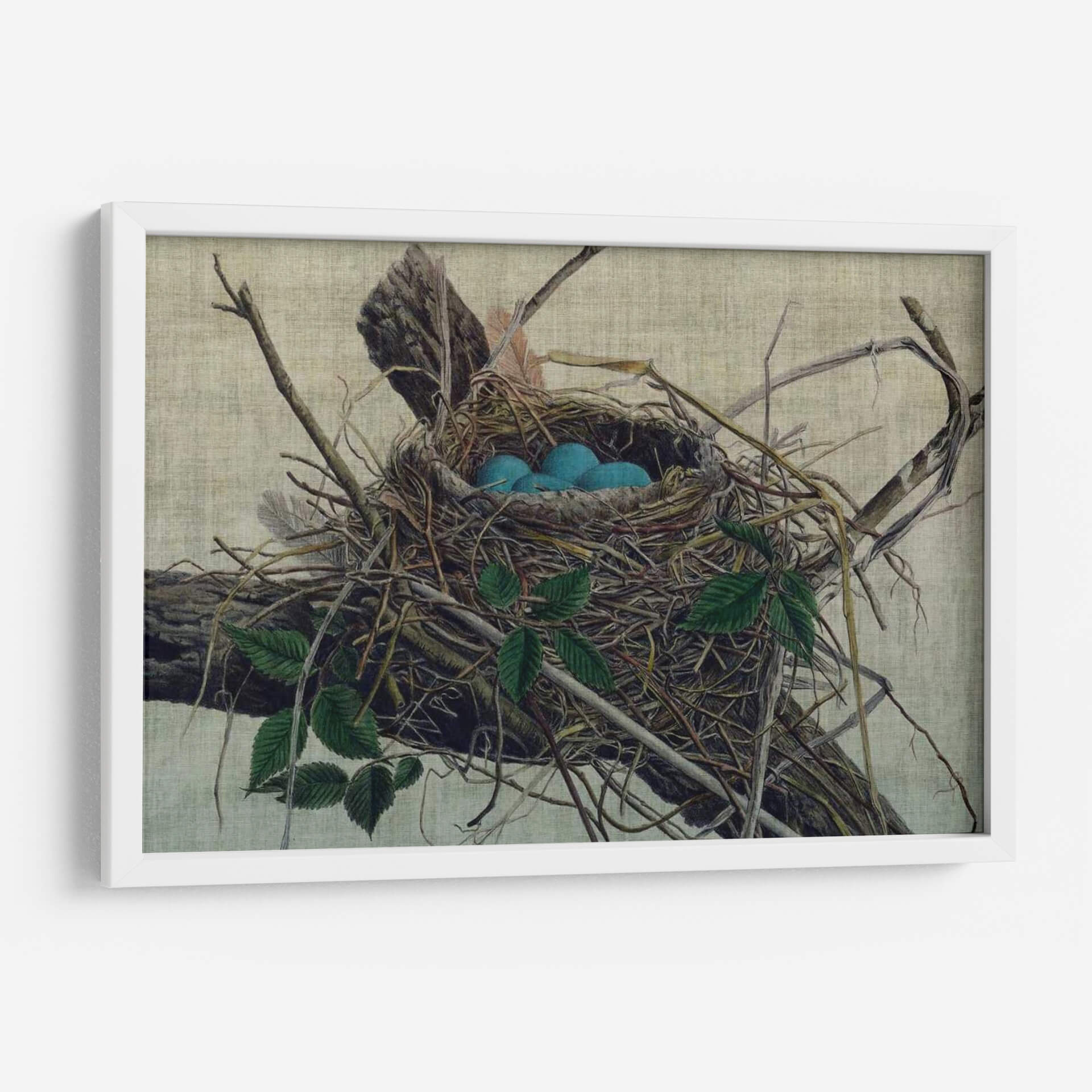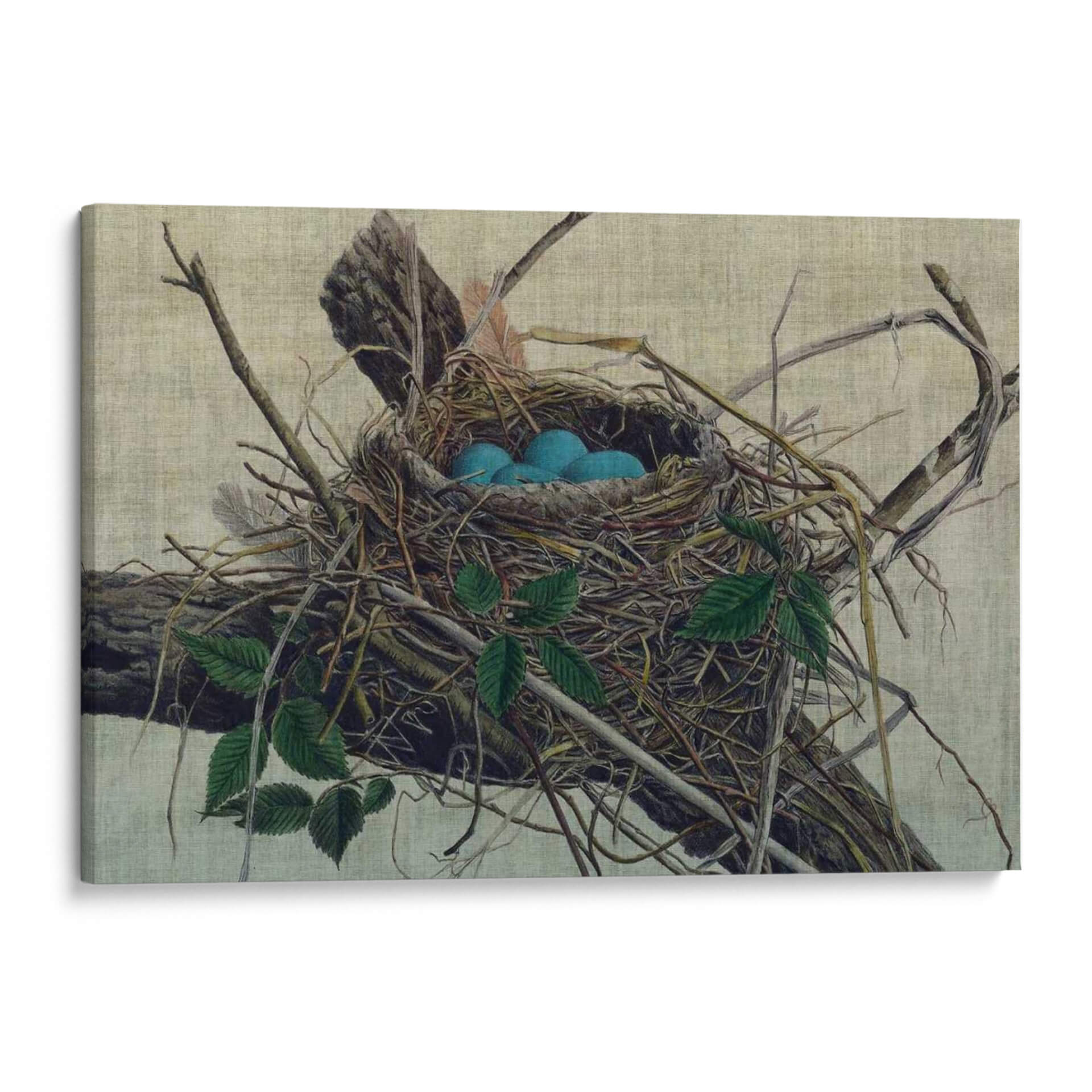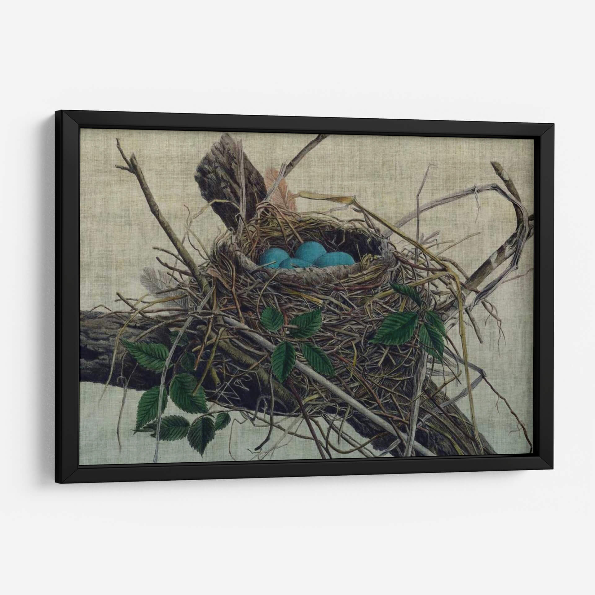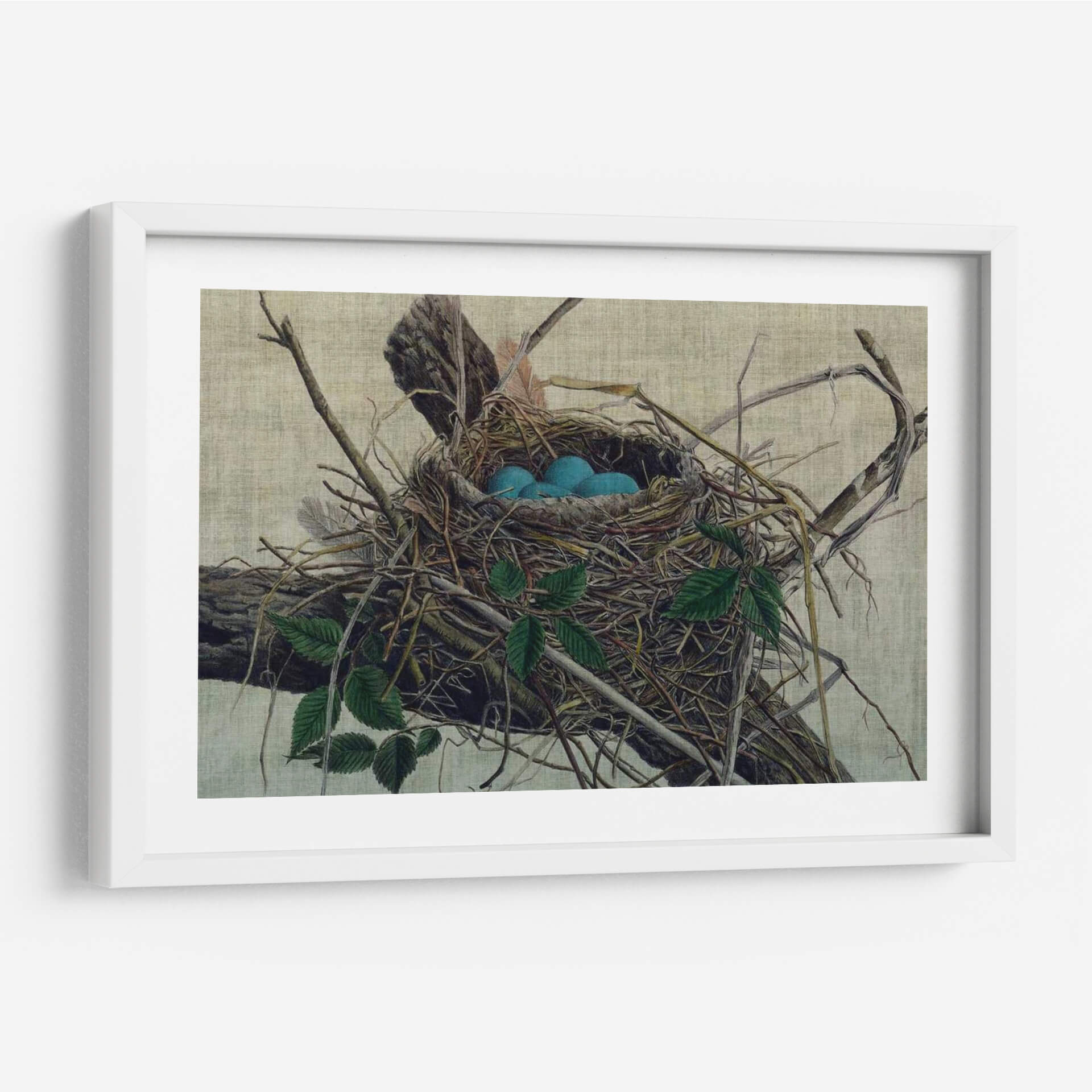 Sumérgete en la delicadeza y la promesa de la vida con "Anidando II", una obra maestra del artista John Butler. Este cuadro decorativo captura la esencia de un nido de pájaro intrincadamente tejido, anidado entre ramas robustas y hojas verdes vibrantes. En su centro, cinco huevos de un azul intenso descansan, evocando una sensación de calma, protección y el milagro de la naturaleza. La paleta de colores terrosos, con sutiles toques de verde y el contraste del azul cerúleo de los huevos, crea una atmósfera serena y acogedora. El detalle minucioso en la textura de las ramas y el plumaje añade una profundidad realista a la pieza, invitando al espectador a contemplar la belleza en los pequeños detalles del mundo natural. Este cuadro es ideal para espacios que buscan infundir tranquilidad y una conexión con la naturaleza, como un dormitorio, una sala de estar o un rincón de lectura. "Anidando II" no es solo una decoración de pared, es una ventana a la serenidad y al ciclo eterno de la vida, perfecta para quienes aprecian el arte figurativo con un toque de realismo mágico y un profundo sentido de renovación.