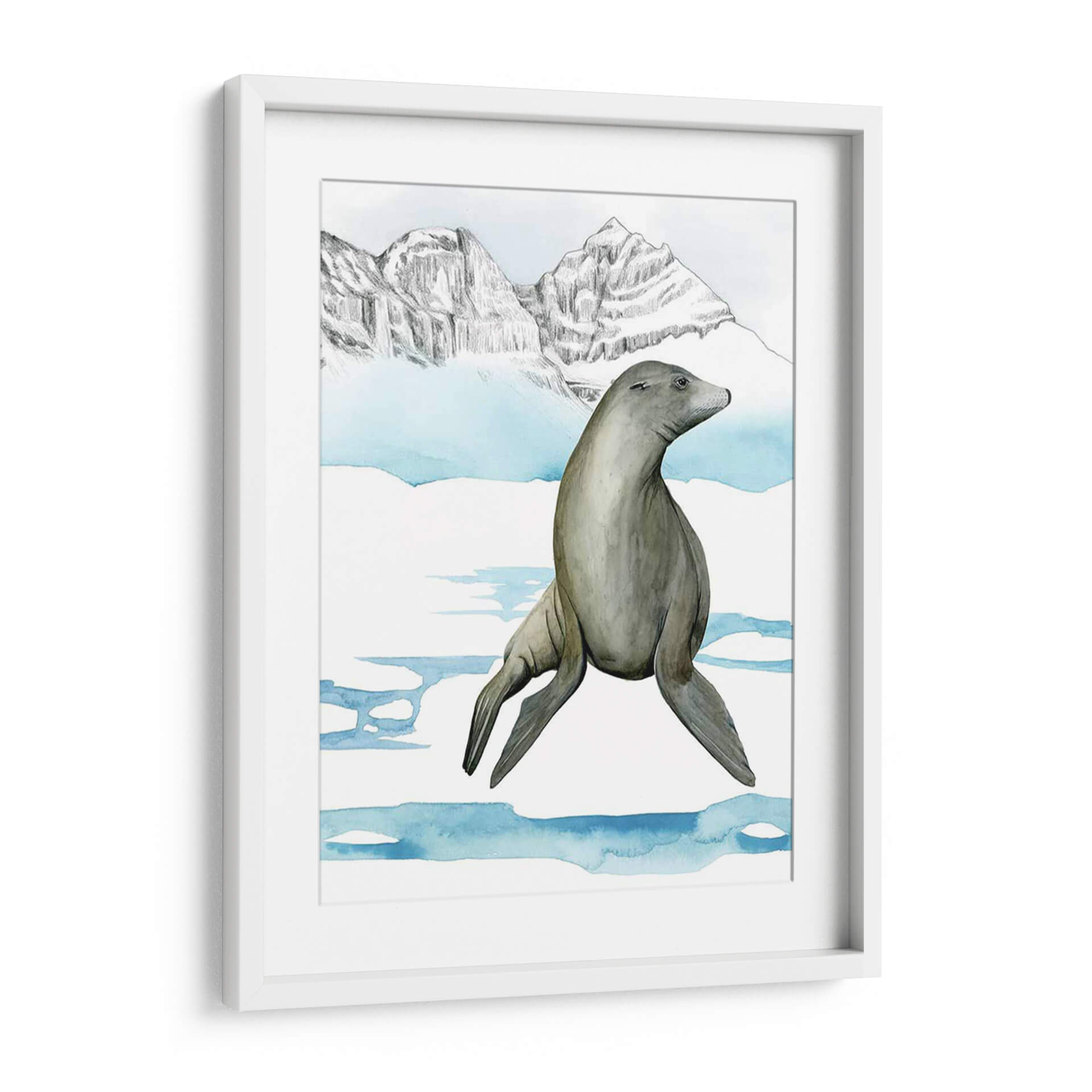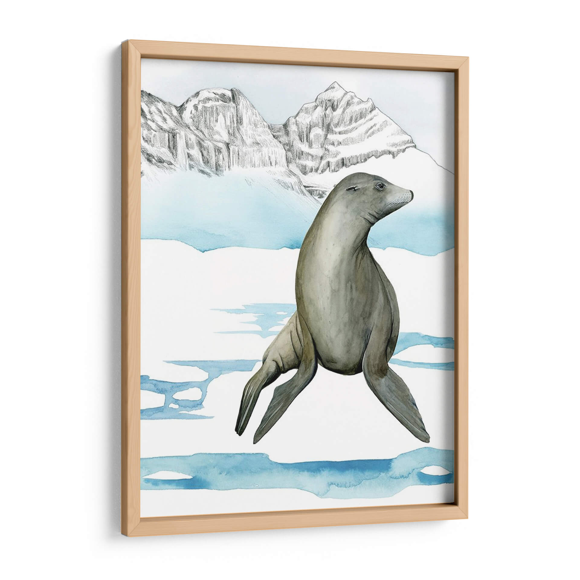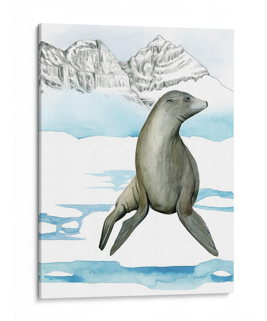 Sumérgete en la serena belleza del Ártico con "Ártico Animal IV" de Grace Popp, una obra de arte que captura la majestuosidad de la vida silvestre polar. Esta pieza, realizada con una delicada técnica de acuarela, presenta un tierno lobo marino posado sobre bloques de hielo flotante, con un imponente paisaje de montañas nevadas y un cielo azul pálido de fondo. La paleta de colores, dominada por suaves azules, grises y blancos, evoca una atmósfera de tranquilidad y pureza, transportando al espectador a un entorno gélido pero sereno. El estilo distintivo de Popp, que combina el realismo del animal con toques etéreos en el fondo, dota a la obra de una profundidad y un encanto únicos. Este cuadro decorativo es perfecto para añadir un toque de naturaleza salvaje y paz a cualquier estancia, ya sea un salón moderno, un dormitorio acogedor o una oficina que busque inspiración. Su composición equilibrada y la emotividad que transmite lo convierten en un punto focal cautivador, ideal para amantes de la fauna y de la decoración que valora la elegancia sutil y el impacto visual.