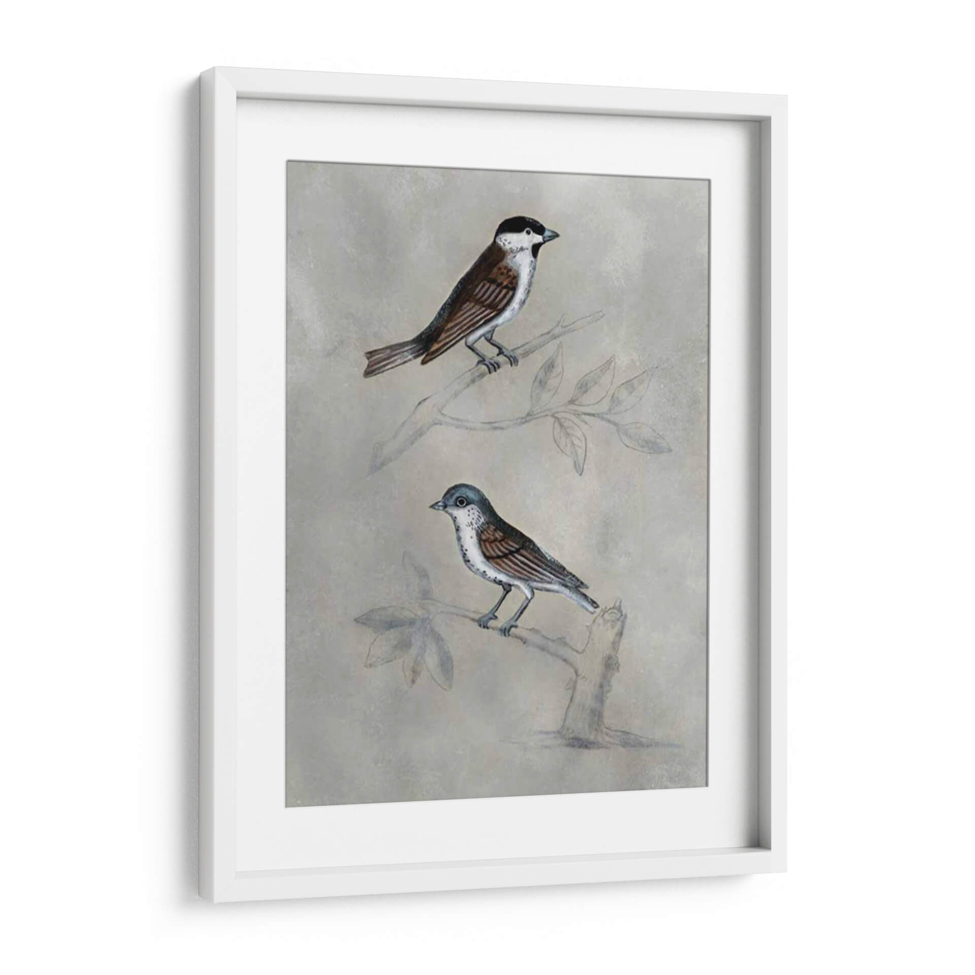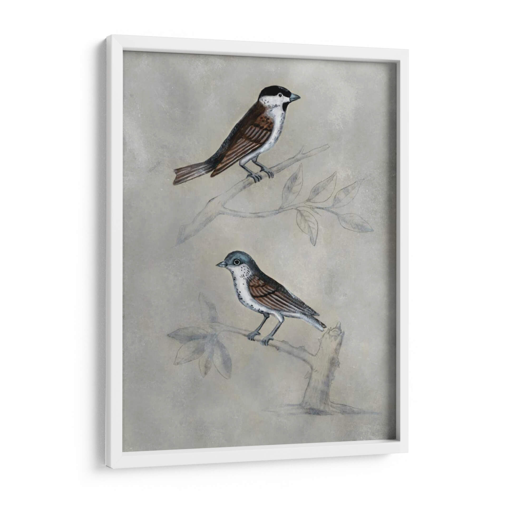 Sumérgete en la serenidad de la naturaleza con "Aviario Plateado III", una exquisita obra de arte de Naomi McCavitt. Este cuadro decorativo captura la delicadeza de dos pájaros posados en ramas, con un estilo que evoca las ilustraciones clásicas de ornitología pero con un toque contemporáneo. La paleta de colores, dominada por tonos grises, plateados y toques sutiles de marrón y azul, crea una atmósfera de calma y sofisticación. La composición vertical resalta la elegancia de las aves y las ramas, mientras que el fondo texturizado añade profundidad y un aire etéreo. Perfecta para quienes buscan infundir tranquilidad y un toque de elegancia natural en sus espacios, esta pieza es ideal para dormitorios, salas de estar o estudios donde se desee un ambiente de paz y contemplación. Las sutiles líneas a lápiz que sugieren la presencia de más follaje invitan a la imaginación del espectador, haciendo de "Aviario Plateado III" una adición atemporal y significativa a cualquier colección de arte de pared. Descubre la belleza de la fauna representada con maestría y añade una pincelada de naturaleza refinada a tu decoración.