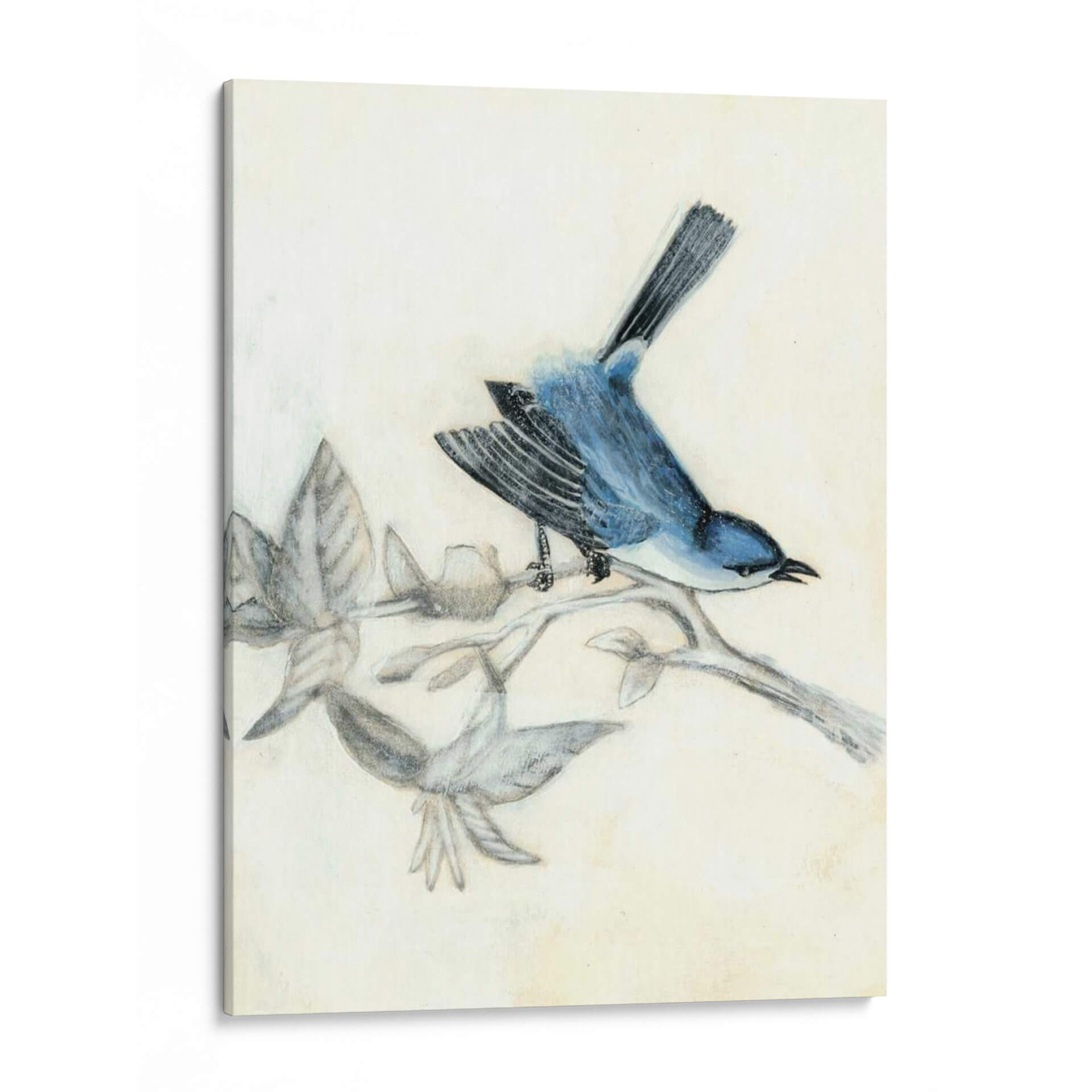 Captura la delicadeza de la naturaleza con este encantador cuadro decorativo 'Aviario Rústico III', una obra de Naomi McCavitt que evoca serenidad y belleza. La pieza presenta un vibrante pájaro azul posado sobre una rama, con sus alas sutilmente desplegadas, enmarcado por hojas dibujadas con trazos grises y delicados. La paleta de colores se centra en tonos suaves y neutros, con el azul del ave como protagonista, creando una atmósfera de calma y armonía. El estilo, que combina la soltura de la acuarela con la precisión del dibujo a lápiz, dota a la obra de una textura visual atractiva y un aire bohemio. Ideal para infundir un toque de tranquilidad y encanto natural en cualquier espacio, este cuadro decorativo es perfecto para salones, dormitorios o estudios que busquen una conexión sutil con el mundo natural. Su composición equilibrada y la elegancia del sujeto lo convierten en una adición versátil y atemporal a tu decoración. Añade un toque de vida y serenidad a tus paredes con esta pieza única.