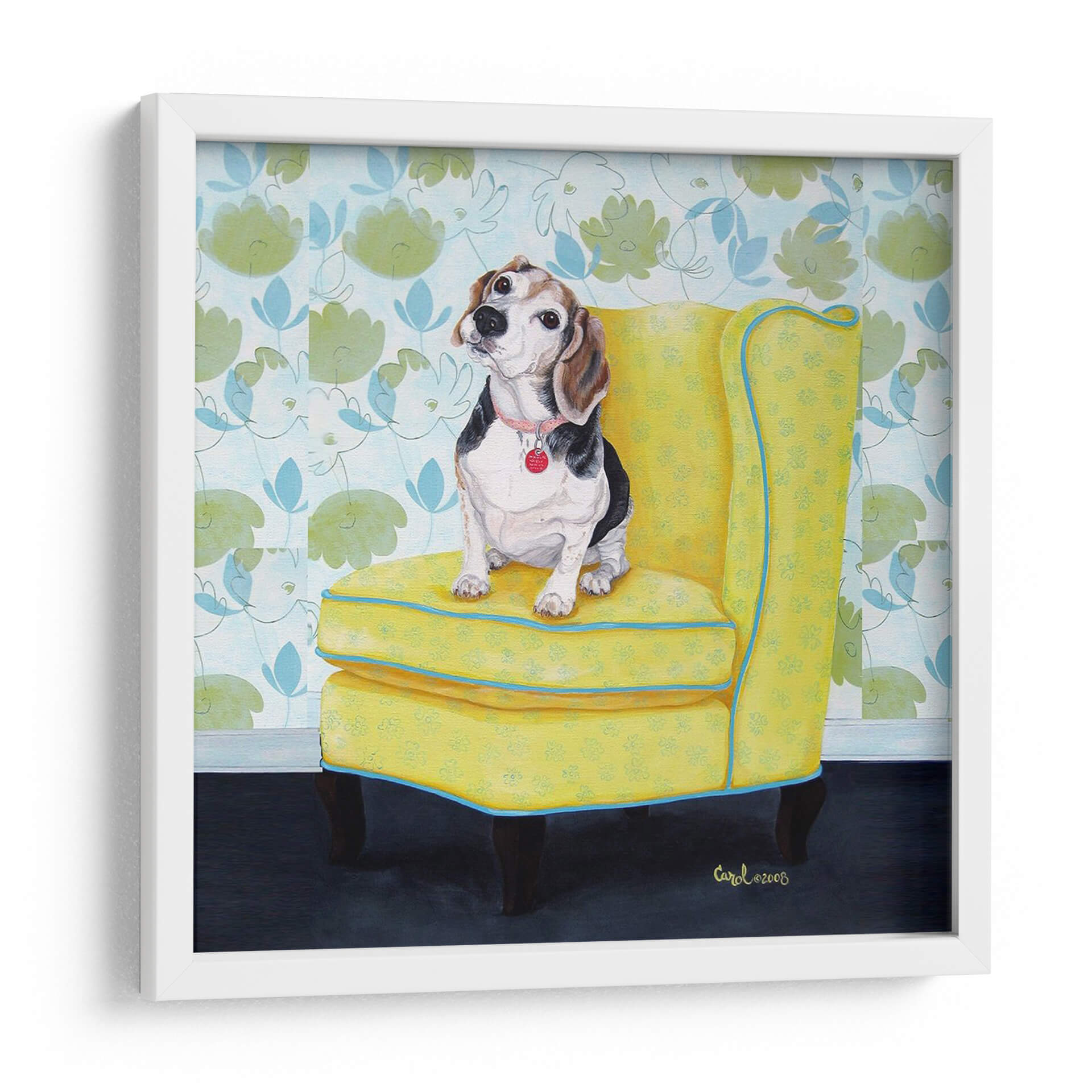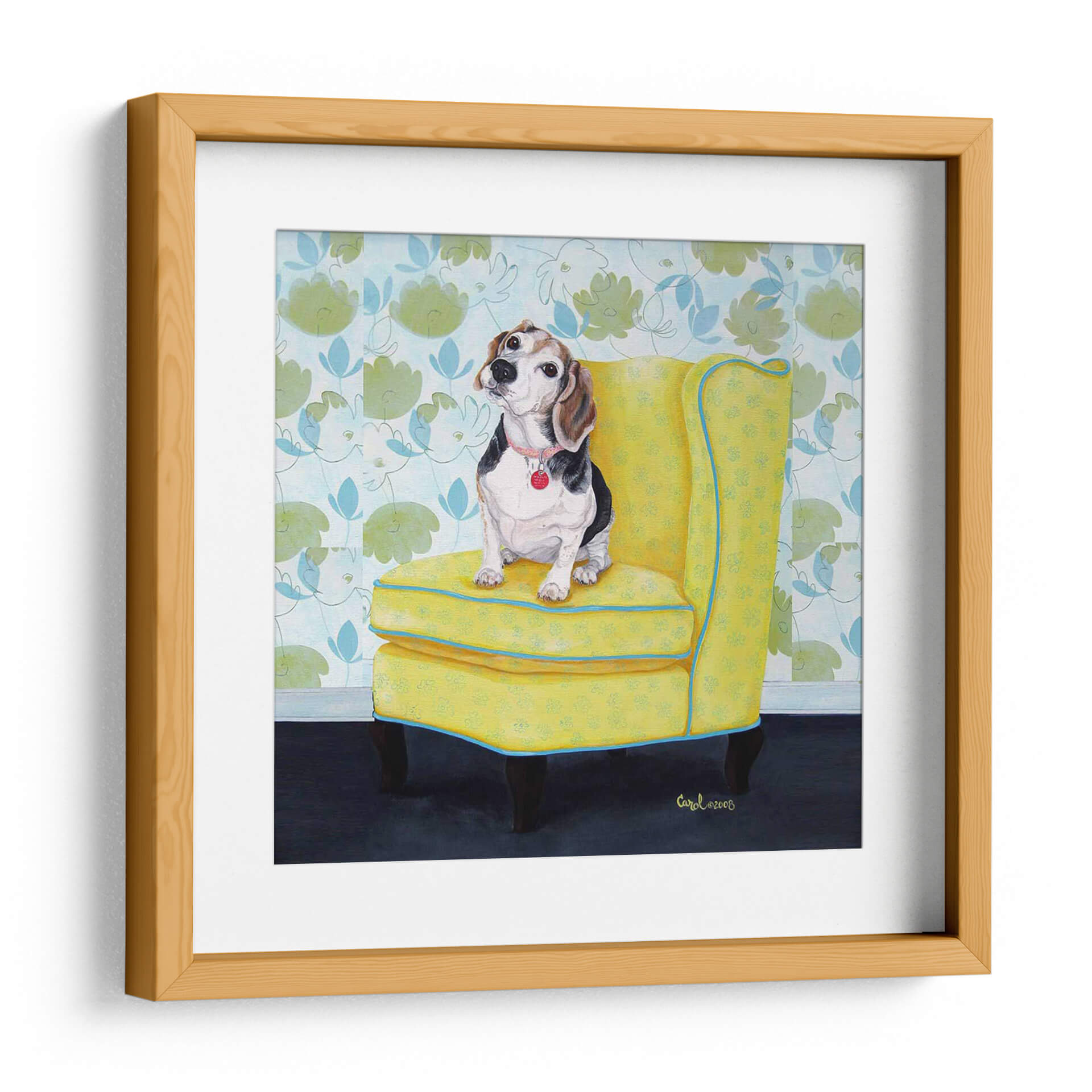 Embellece tu hogar con el encantador cuadro decorativo 'Beagle En Amarillo' de Nina Ramos. Esta obra de arte captura la dulzura de un beagle sentado elegantemente en un sillón amarillo vibrante, con un fondo que evoca un papel tapiz floral de estilo retro. La paleta de colores, dominada por el amarillo alegre del sillón y los tonos suaves del fondo, crea una atmósfera acogedora y llena de personalidad. El estilo pictórico, con pinceladas expresivas y una atención detallada al pelaje del perro y a los patrones del tapizado, le confiere un aire artístico y contemporáneo. Este cuadro es perfecto para amantes de los perros y para quienes buscan añadir un toque de color y vida a sus espacios. Ideal para salas de estar, estudios o cualquier rincón que necesite una dosis de encanto y calidez. La expresión del beagle invita a la sonrisa y genera una conexión emocional inmediata, convirtiendo este cuadro decorativo en una pieza central que habla de alegría y buen gusto. Añade un toque único y lleno de carácter a tu decoración con esta pieza excepcional de Nina Ramos.