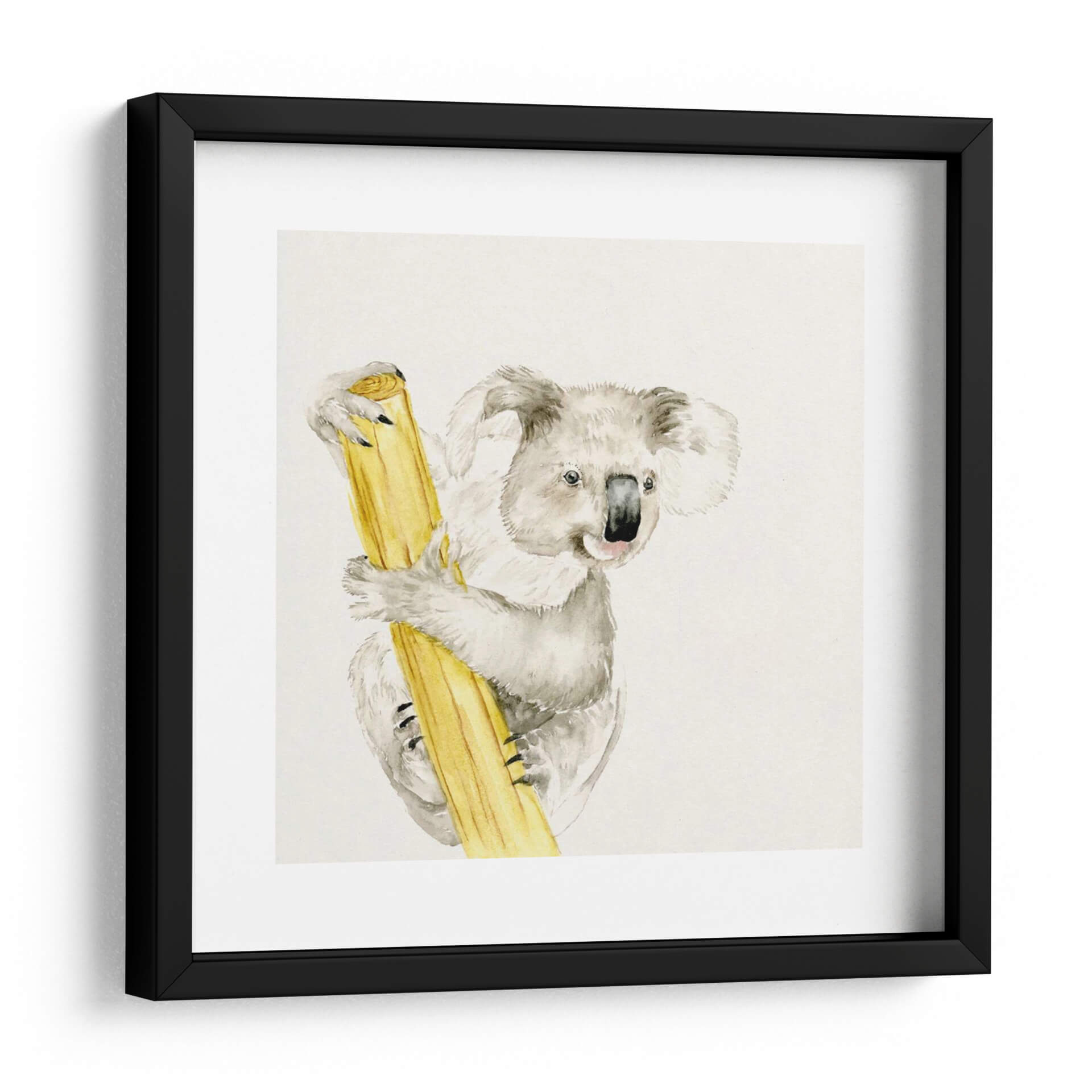 Embellece tu espacio con el encantador cuadro decorativo "Bebé Koala II" de Melissa Wang. Esta obra de arte captura la dulzura y la inocencia de un tierno koala aferrado a una rama de vibrante color amarillo. La técnica de acuarela utilizada por la artista, Melissa Wang, aporta una suavidad y delicadeza únicas a la pieza, resaltando las texturas suaves del pelaje del koala y el brillo de la rama. La paleta de colores se centra en tonos neutros y suaves, con el amarillo brillante de la rama actuando como un punto focal cálido y optimista que contrasta elegantemente con los grises y blancos del animal. El estilo es figurativo con un toque de ternura, ideal para crear un ambiente acogedor y amigable en cualquier habitación. Este cuadro decorativo es perfecto para añadir un toque de naturaleza y dulzura a dormitorios infantiles, salas de estar o estudios. Su composición centrada y la mirada dulce del koala invitan a la contemplación y a una conexión emocional. Añade esta pieza única a tu colección de arte de pared y deja que la ternura de este koala ilumine tu hogar.
