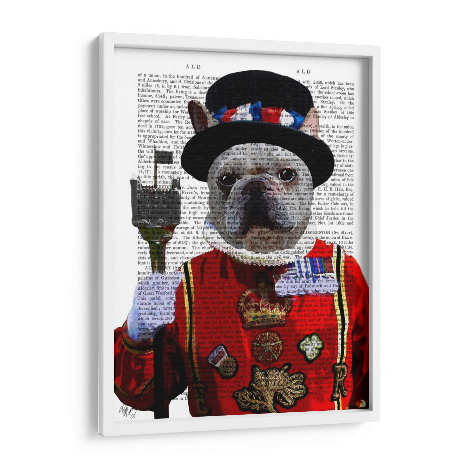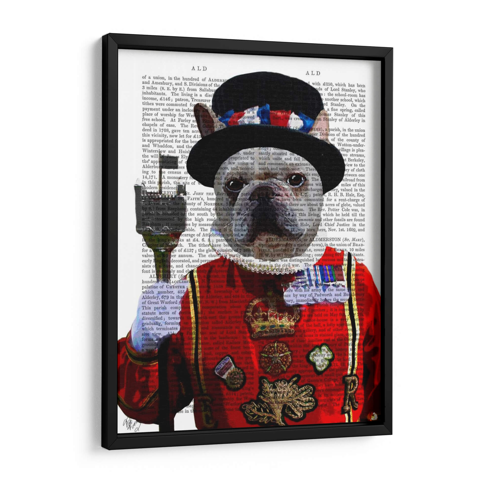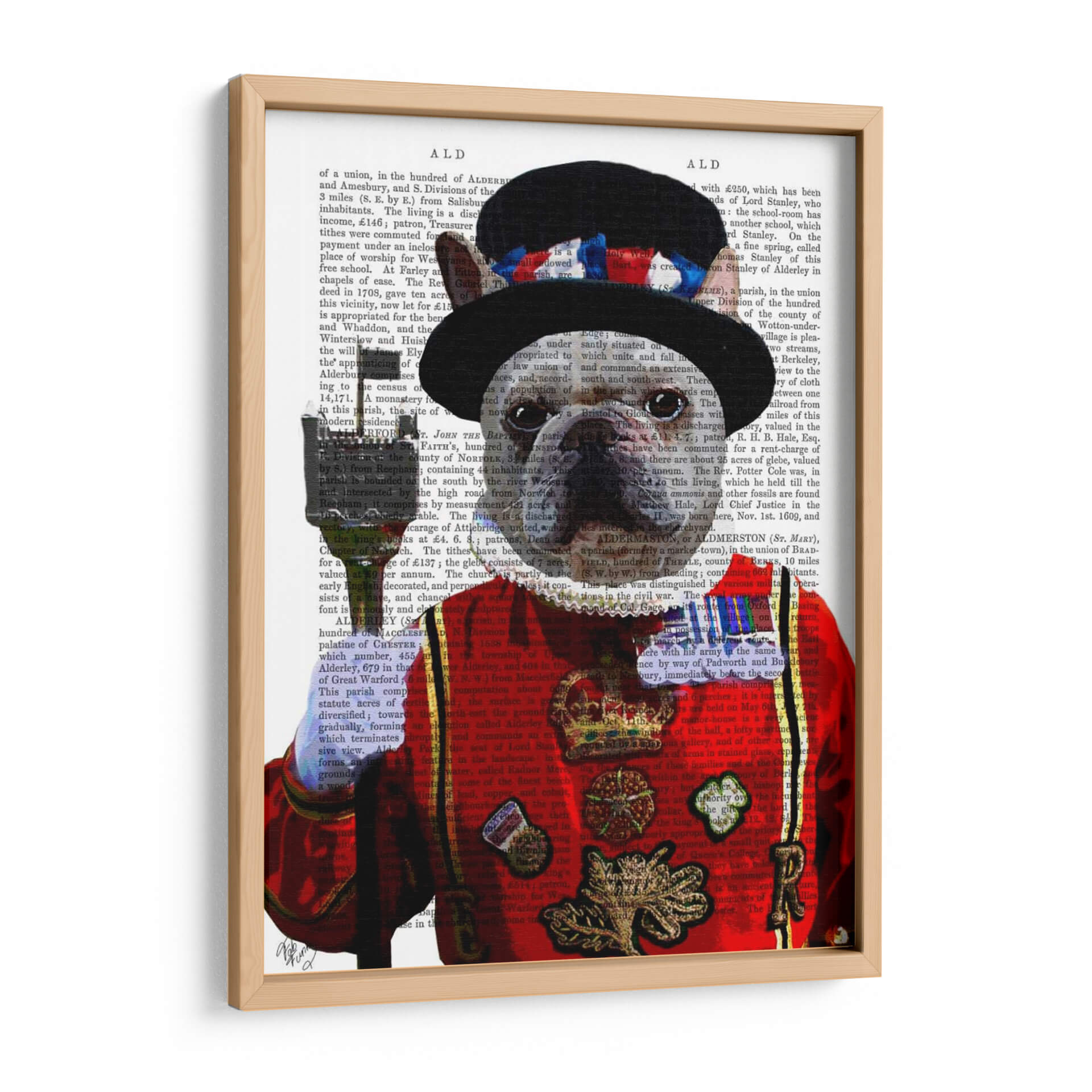 Transforma tu espacio con el enigmático "Beefeater Bulldog" de Fab Funky, una obra de arte contemporáneo que fusiona la audacia de un bulldog con la estética de un texto clásico. Este cuadro decorativo presenta a un perro vestido con el icónico uniforme de los Beefeaters, creando un contraste visual fascinante sobre un fondo de páginas de libro antiguas. Los colores vibrantes del uniforme rojo y el sombrero negro del perro se destacan sobre el tono sepia del texto, generando un punto focal cautivador. La composición es audaz y humorística, aportando personalidad y carácter a cualquier habitación. Ideal para salones modernos, estudios u oficinas que buscan una pieza de conversación única y llena de estilo. El "Beefeater Bulldog" no es solo una imagen, es una declaración de intenciones, perfecta para amantes de los animales, la historia británica o simplemente aquellos que aprecian el arte con un toque de originalidad y sofisticación.