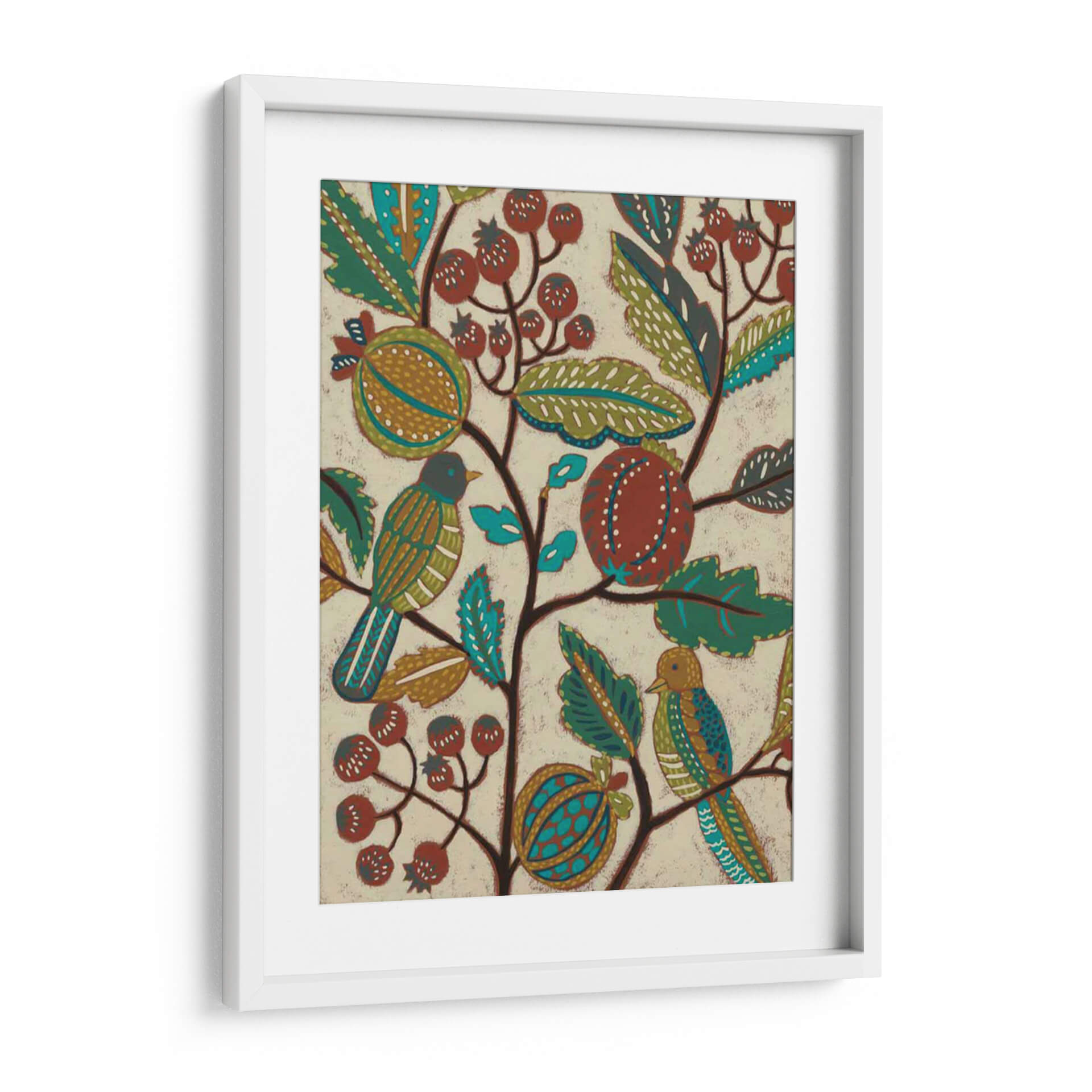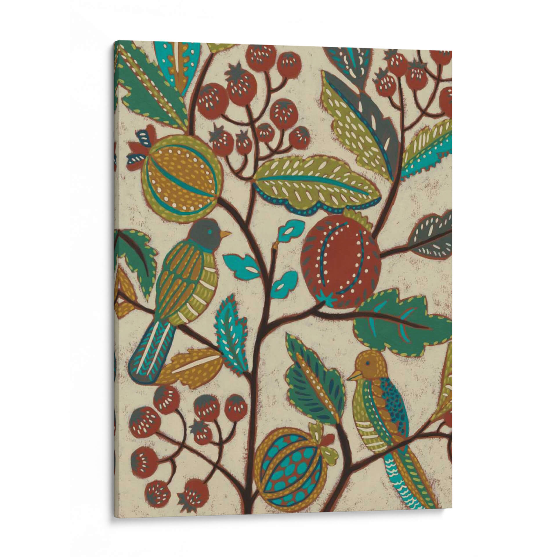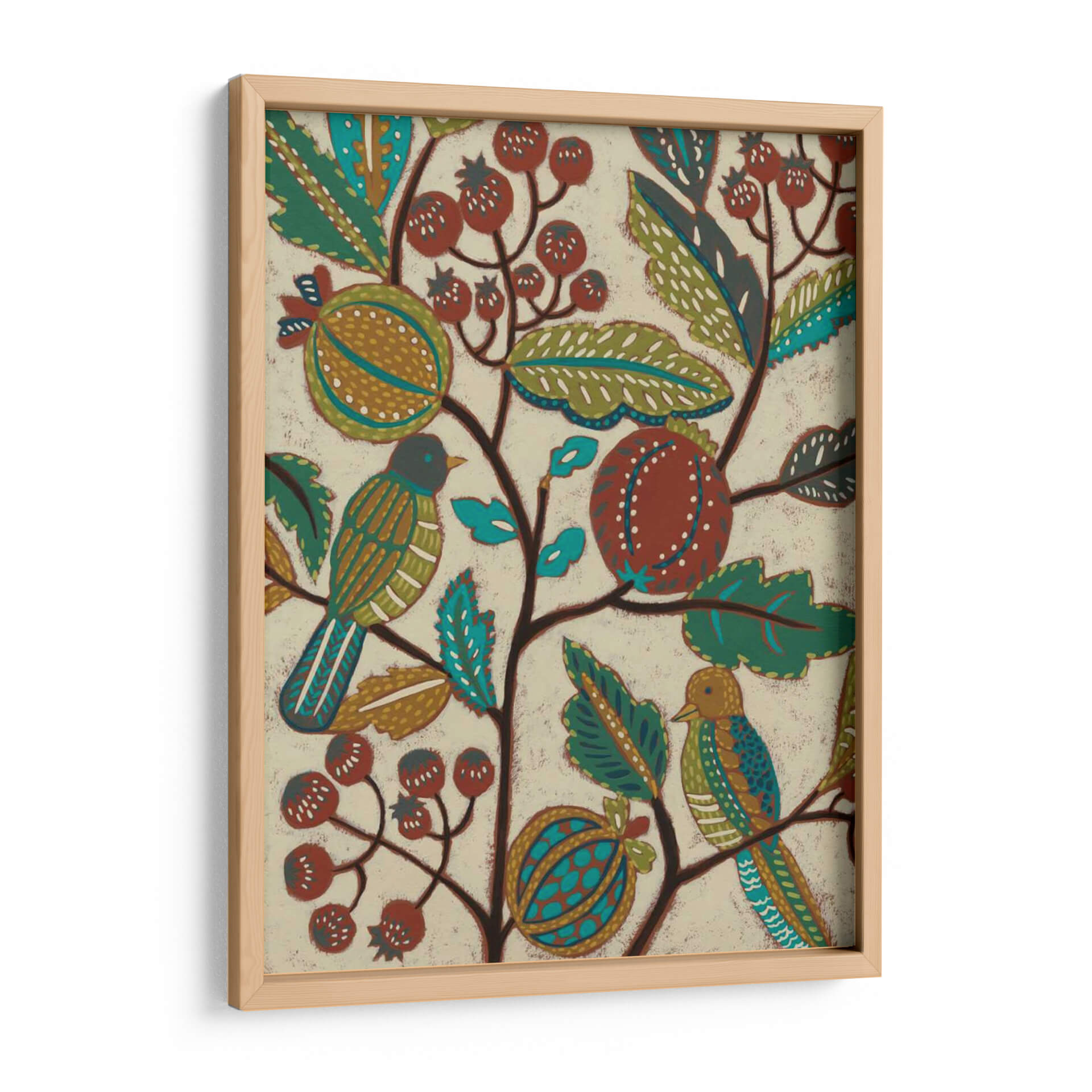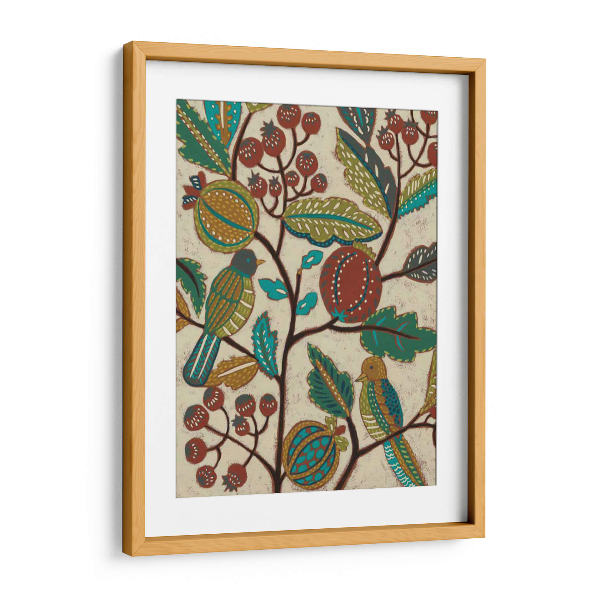 Adéntrate en un mundo de naturaleza estilizada con "Berry Branch I", una obra de arte vibrante del artista Chariklia Zarris. Este cuadro decorativo presenta un encantador patrón botánico con pájaros posados en ramas cargadas de bayas y frutos exóticos. La paleta de colores, rica en tonos tierra, verdes profundos, rojos terracota y acentos turquesas, crea una atmósfera acogedora y a la vez enérgica. El estilo distintivo de Zarris combina elementos folclóricos con un toque moderno, resultando en una composición visualmente cautivadora que evoca la serenidad del campo y la vitalidad de la vida silvestre. Cada detalle, desde las hojas con texturas intrincadas hasta las figuras estilizadas de los pájaros, invita a la contemplación. "Berry Branch I" es una pieza ideal para añadir un toque de color y carácter a cualquier sala de estar, comedor o incluso un estudio, transformando espacios cotidianos en rincones llenos de inspiración y belleza natural. Descubre la magia de la naturaleza reinterpretada y deja que esta obra sea el centro de atención de tu decoración.