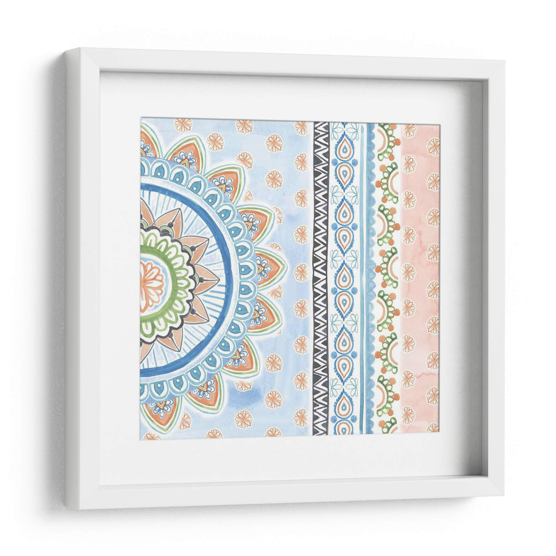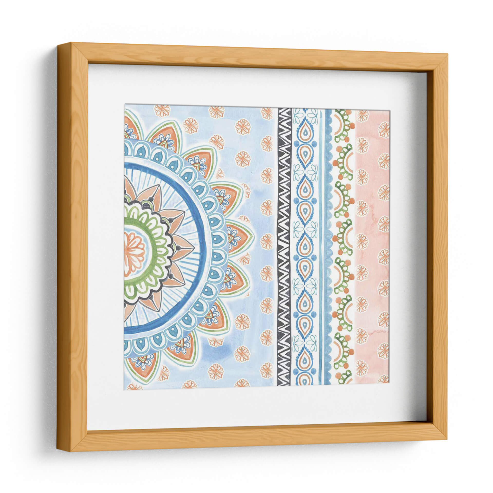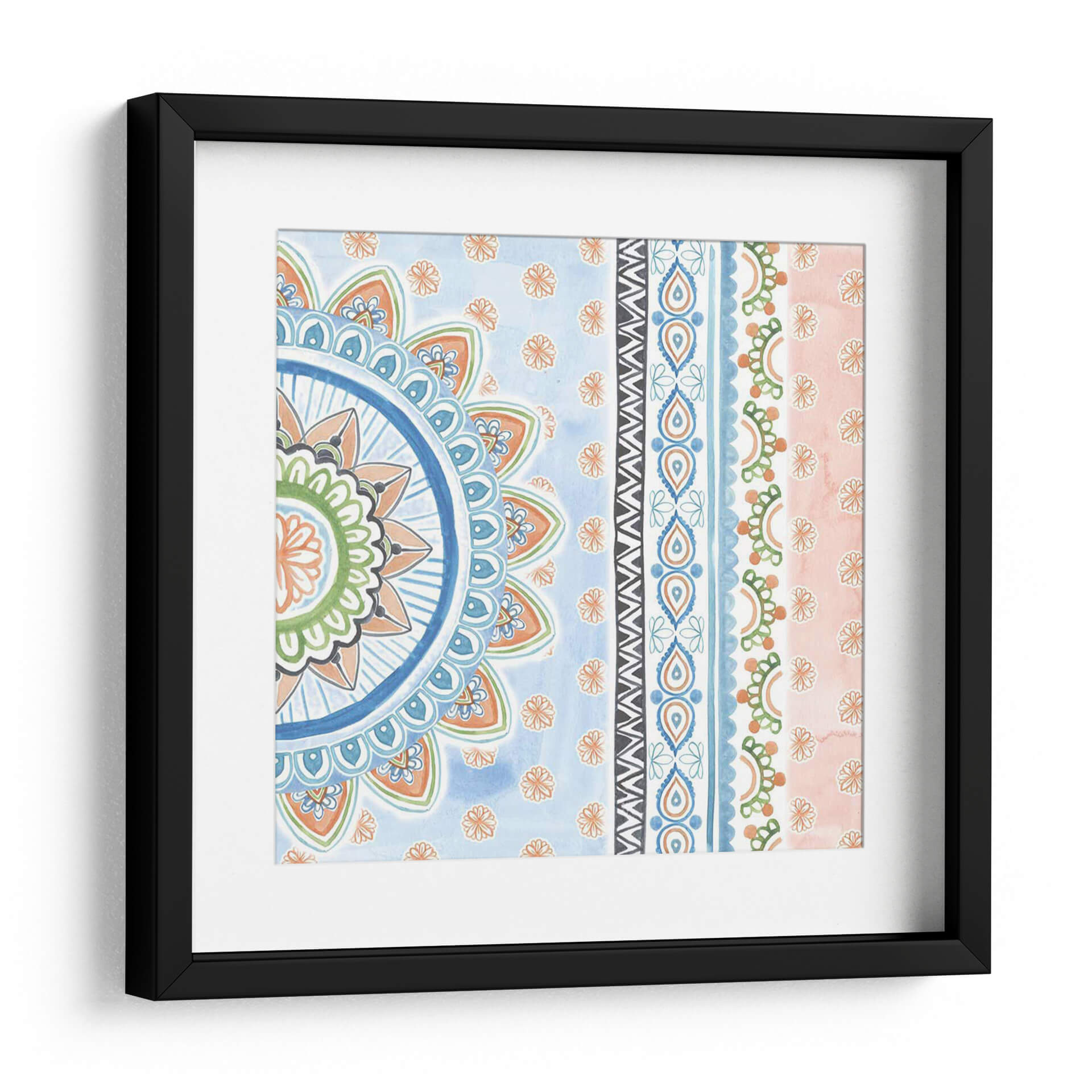 Inunda tu espacio con la vibrante energía de "Bisect II", una obra de arte contemporáneo que fusiona la delicadeza de la acuarela con un diseño cautivador. Esta pieza presenta un mandala estilizado en tonos azules y verdes, rodeado de un patrón etéreo de pequeñas flores naranjas sobre un fondo celeste suave. A su lado, una banda vertical de intrincados diseños ornamentales, con toques de naranja, verde y azul, añade profundidad y un aire étnico. La paleta de colores, dominada por azules serenos, naranjas cálidos y verdes refrescantes, crea una atmósfera equilibrada y optimista. Su composición, que combina elementos circulares y lineales, evoca una sensación de orden y fluidez, perfecta para aquellos que buscan un toque de estilo bohemio o mandálico en su decoración. Este cuadro decorativo es ideal para infundir vitalidad y un aire de sofisticación bohemia a salones modernos, dormitorios tranquilos u oficinas creativas, convirtiéndose en un punto focal que inspira calma y alegría. Añade esta pieza única de Melissa Wang a tu colección y transforma cualquier ambiente.