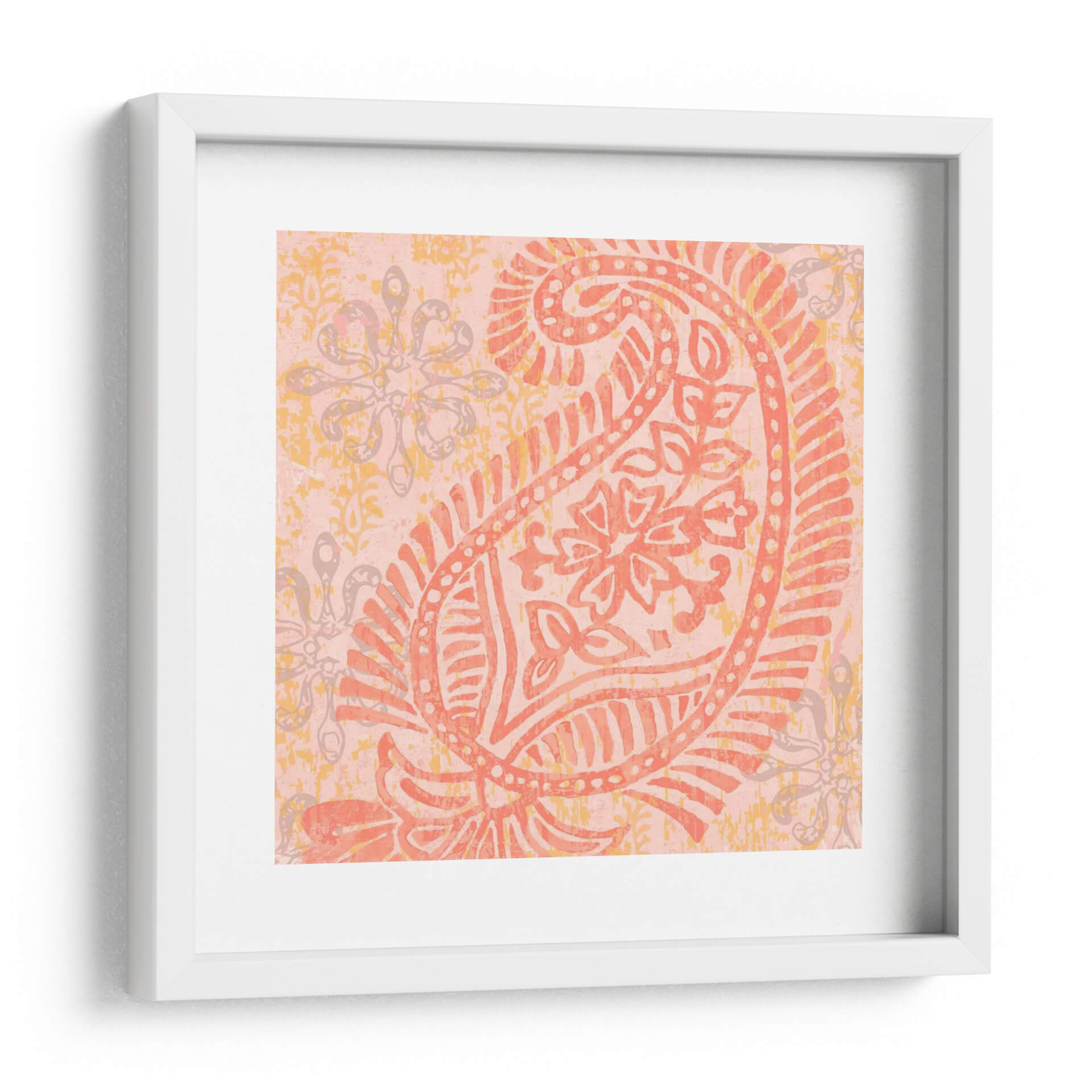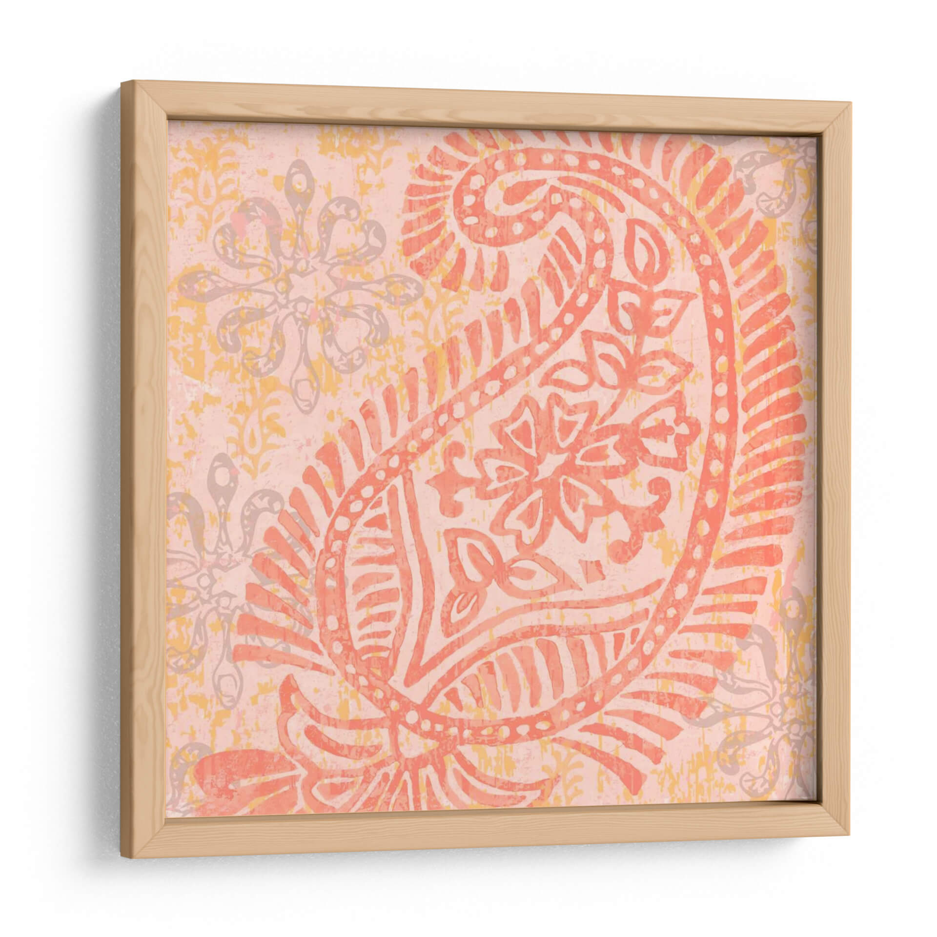 Aporta un toque de calidez y estilo bohemio a tu hogar con el cuadro decorativo 'Bloque De Impresión Paisley I' de Leslie Mark. Esta cautivadora obra de arte presenta un diseño paisley intrincado, evocado a través de una paleta de colores suaves y terrosos, dominada por tonos coral, melocotón y toques de amarillo pálido. La textura sutil y el efecto de impresión artesanal confieren profundidad y carácter a la pieza, haciéndola un punto focal encantador para cualquier habitación. Ideal para salones, dormitorios o incluso oficinas que busquen una atmósfera acogedora y sofisticada, este diseño abstracto con influencias étnicas se integra perfectamente en decoraciones contemporáneas, eclécticas o bohemias. Imagina cómo este cuadro decorativo puede transformar tu espacio, añadiendo una dimensión de arte y personalidad que invita a la contemplación y al disfrute. Su composición equilibrada y sus vibrantes pero armoniosos colores lo convierten en una elección versátil para quienes aprecian el arte que combina tradición y modernidad.