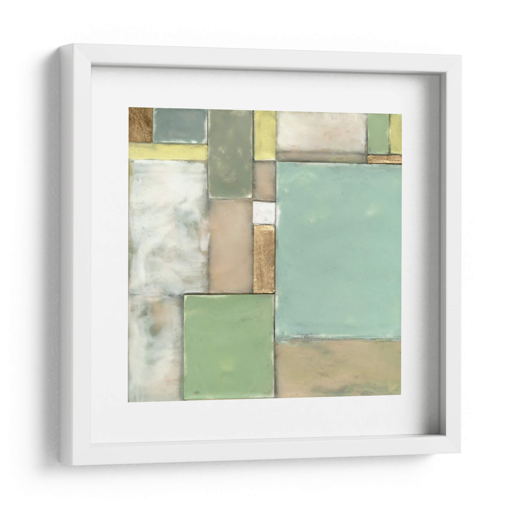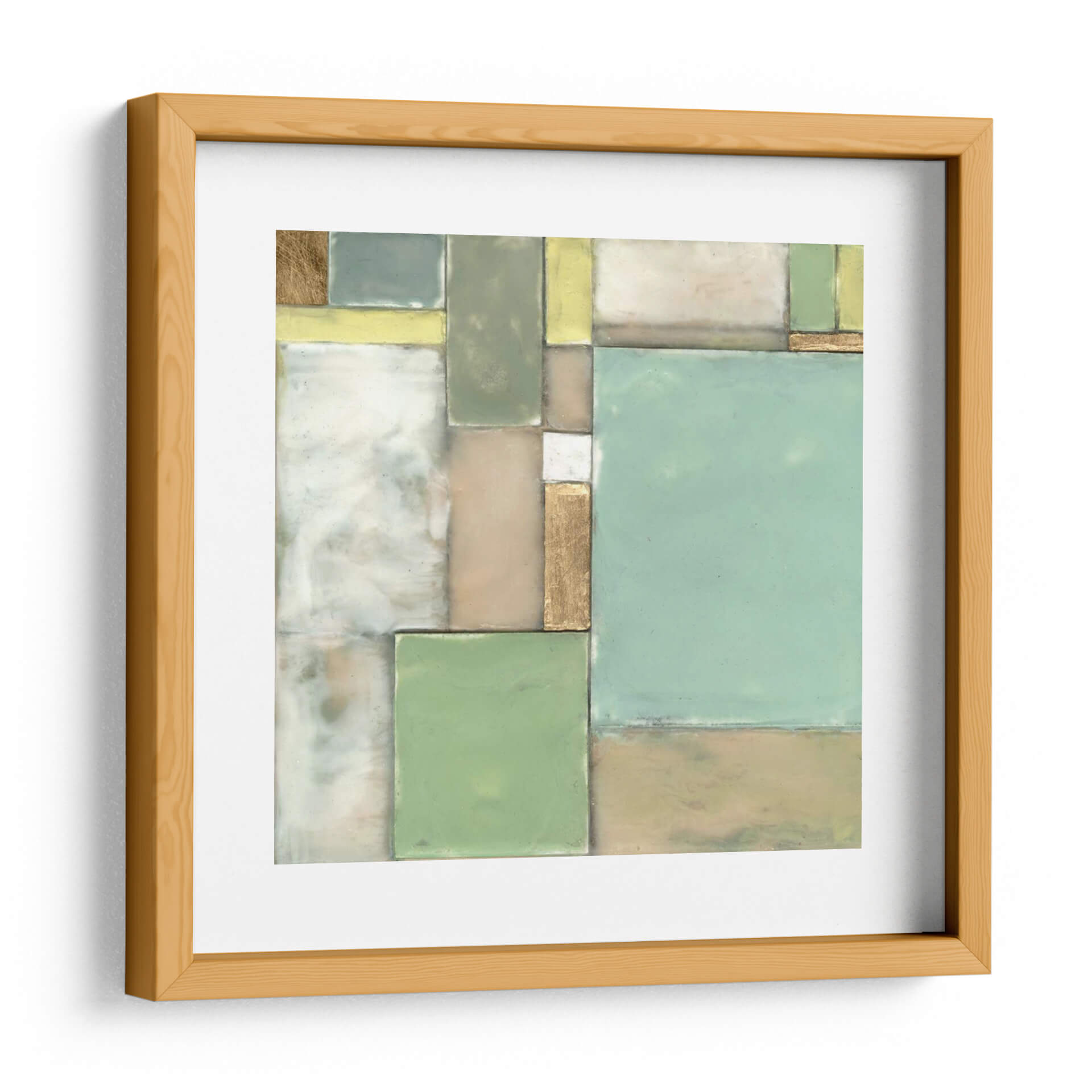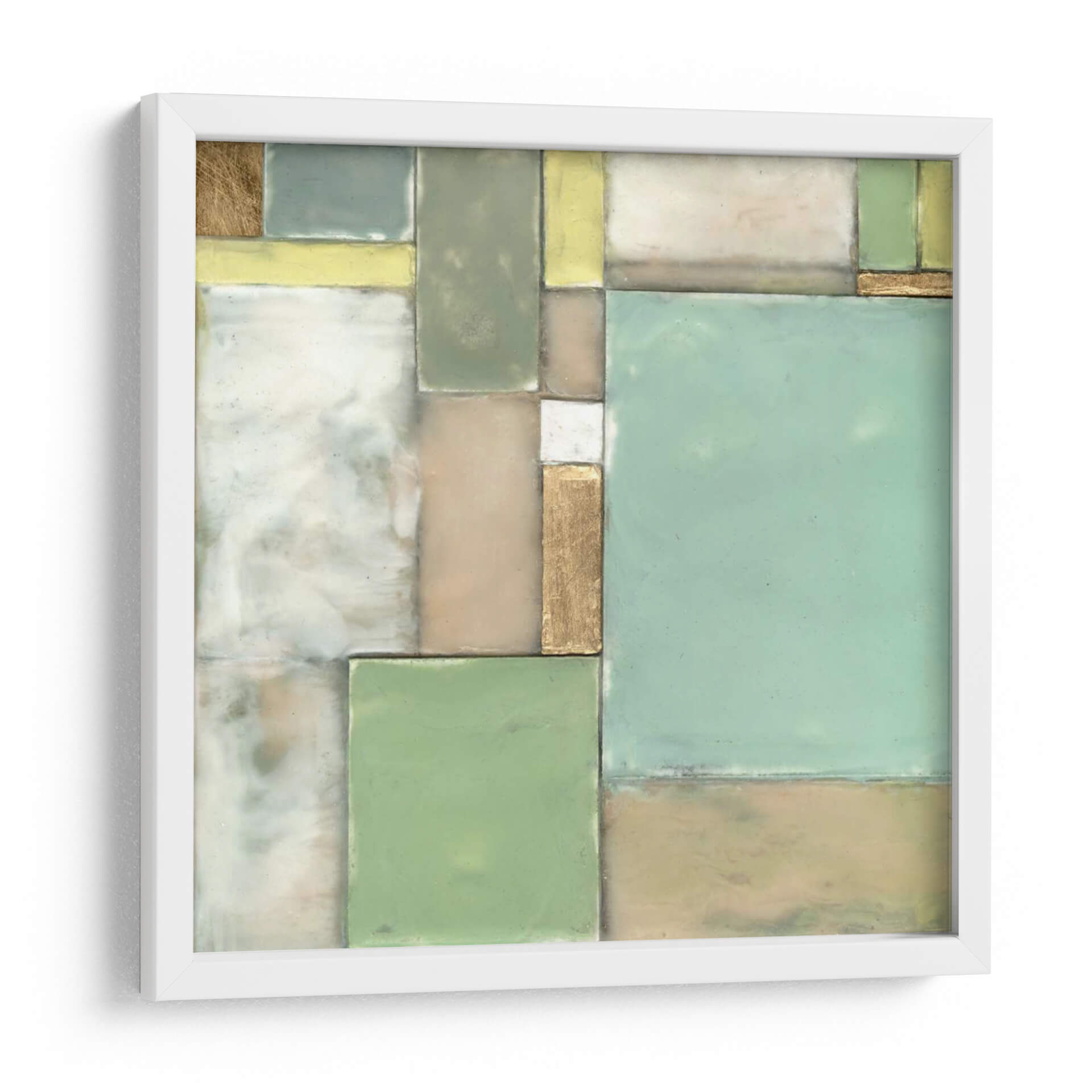 Sumérgete en la serenidad y el orden geométrico de "Bloques Modulares I", una cautivadora obra de arte de Jennifer Goldberger. Este cuadro decorativo abstracto se caracteriza por su composición cuidadosamente equilibrada de formas rectangulares y cuadradas, que evocan una sensación de estructura y tranquilidad. La paleta de colores, dominada por suaves tonos pastel de verde menta, beige, amarillo pálido y toques de oro metálico, crea una atmósfera de calma y sofisticación. Las sutiles texturas y las líneas definidas invitan a la contemplación, haciendo de esta pieza el acento perfecto para cualquier espacio que busque paz y armonía visual. "Bloques Modulares I" es ideal para revitalizar un estudio, aportar serenidad a un dormitorio o añadir un toque de elegancia contemporánea a una sala de estar. Su diseño versátil se integra a la perfección con una variedad de estilos decorativos, desde el minimalista hasta el escandinavo, convirtiéndose en un punto focal que inspira reflexión y admiración. Descubre la belleza del orden y la armonía con esta exquisita pieza de arte contemporáneo.