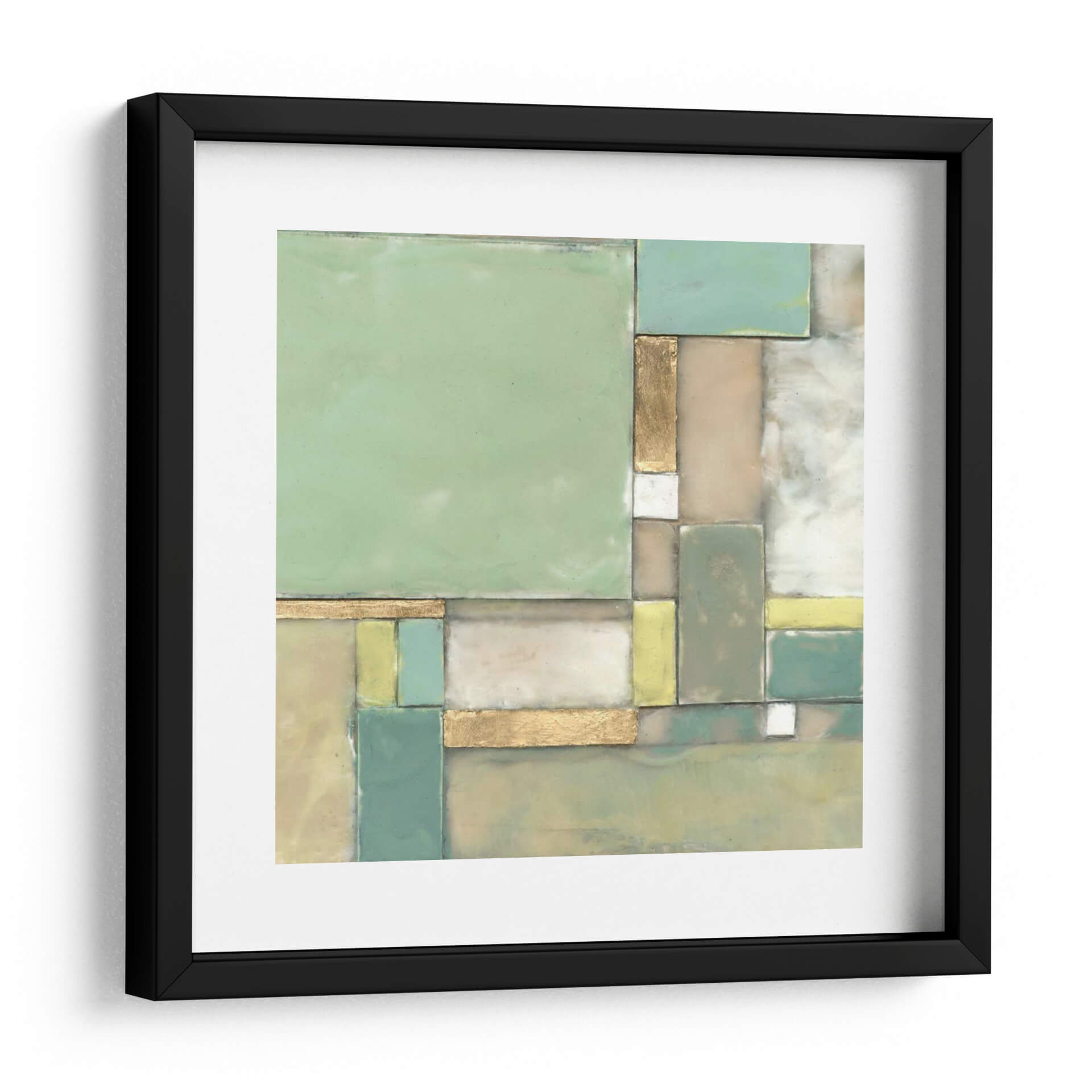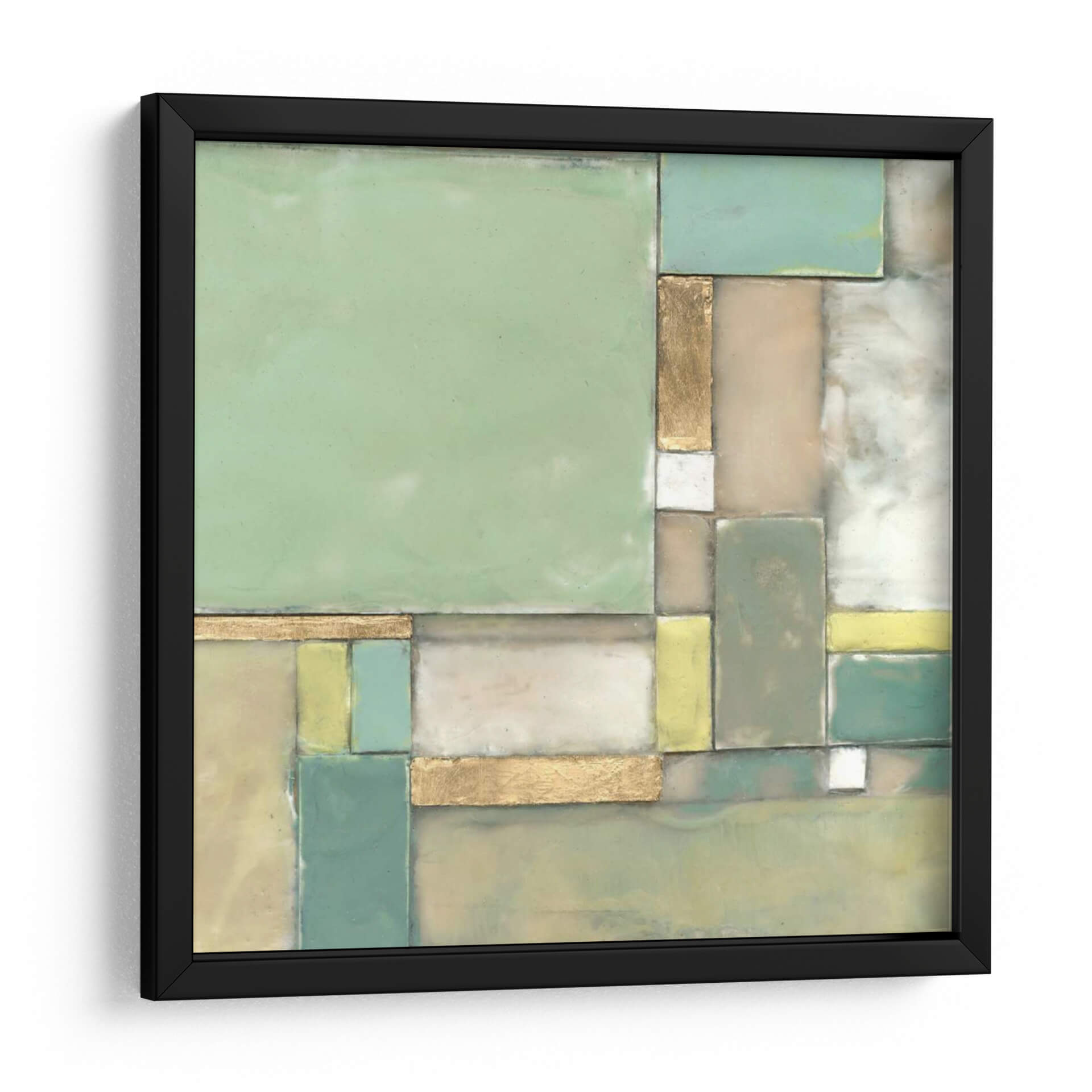 Transforma tu espacio con el cuadro decorativo 'Bloques Modulares II', una obra abstracta que evoca serenidad y sofisticación. Jennifer Goldberger presenta una composición armoniosa de formas geométricas en tonos pastel, combinando verdes menta suaves, arenas cálidas y toques sutiles de dorado que añaden un brillo lujoso. La textura sutil y las capas de color crean profundidad visual, invitando a la contemplación y al descanso. Esta pieza es ideal para aquellos que buscan un arte contemporáneo que aporte equilibrio y elegancia a su hogar u oficina. Su paleta de colores relajante la convierte en el complemento perfecto para salones modernos, dormitorios tranquilos o espacios de trabajo que requieren un toque de inspiración serena. Imagina cómo este cuadro abstracto puede convertirse en el punto focal de tu decoración, aportando una atmósfera de calma y refinamiento a cualquier ambiente, creando un refugio visual que te invita a desconectar del ajetreo diario. Añade 'Bloques Modulares II' a tu colección y experimenta la armonía del arte abstracto.