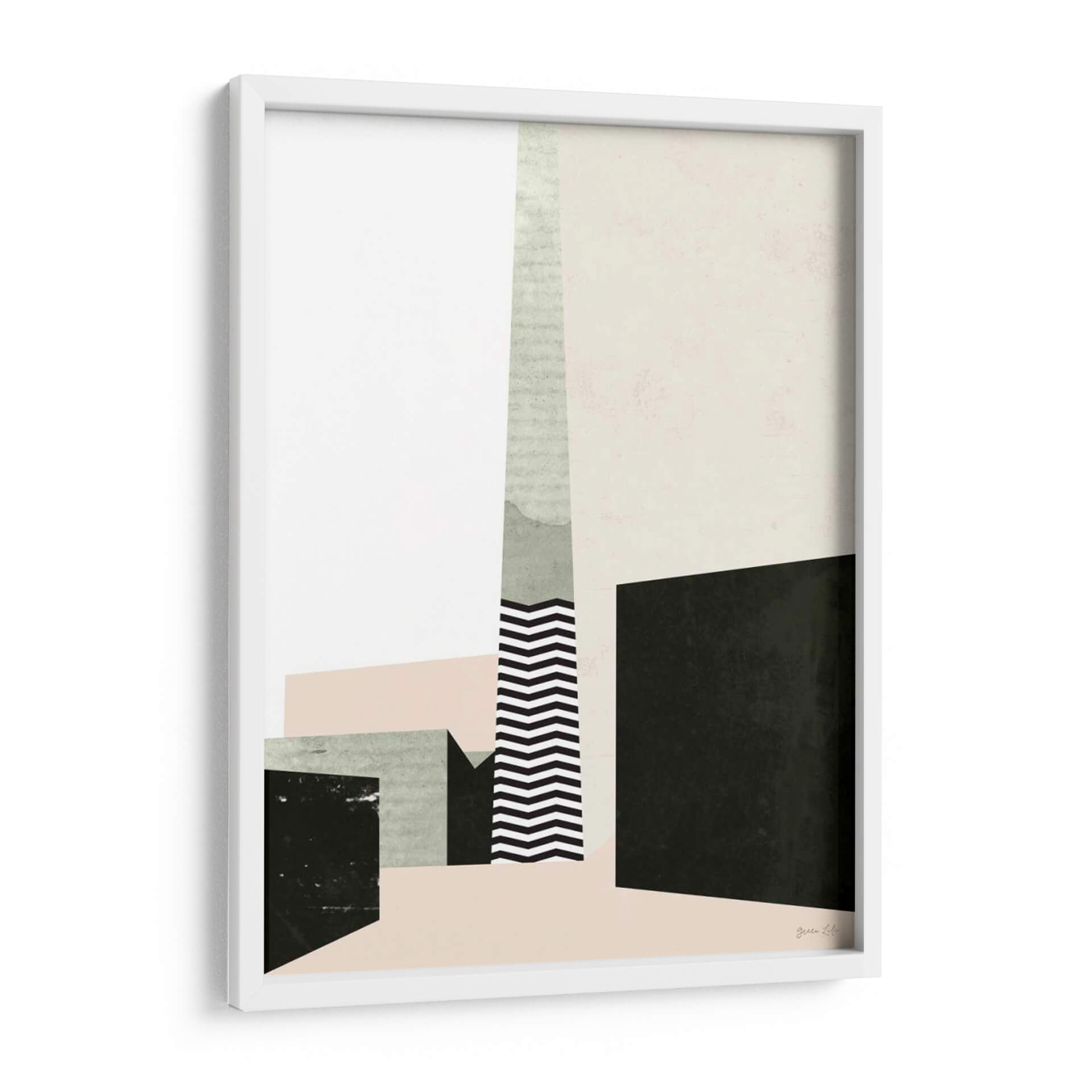 Sumérgete en la estética urbana y geométrica de "Borde De La Ciudad I", una obra de arte contemporáneo que captura la esencia de la arquitectura moderna y la vitalidad de la vida urbana. Este cuadro decorativo presenta una composición audaz de formas abstractas y líneas definidas, evocando la silueta de un paisaje urbano estilizado. La paleta de colores, dominada por tonos neutros como el blanco roto, el beige suave y el negro profundo, se ve sutilmente realzada por toques de rosa pálido y verde grisáceo, creando una atmósfera sofisticada y serena. El contraste entre las áreas sólidas y los patrones geométricos, como el llamativo diseño en zigzag, añade profundidad y dinamismo a la pieza. "Borde De La Ciudad I" es ideal para espacios que buscan un toque de elegancia contemporánea, aportando un aire de orden y modernidad a salones, oficinas o estudios. Su diseño abstracto y minimalista permite una fácil integración en diversas decoraciones, convirtiéndose en un punto focal que invita a la contemplación y añade carácter a cualquier ambiente. Añade esta pieza única a tu colección y transforma tu hogar en una galería de arte personal.