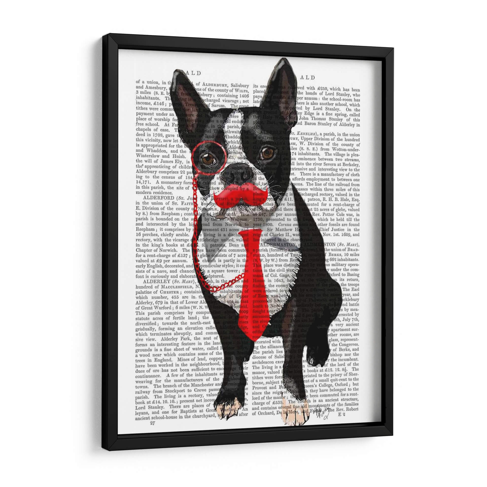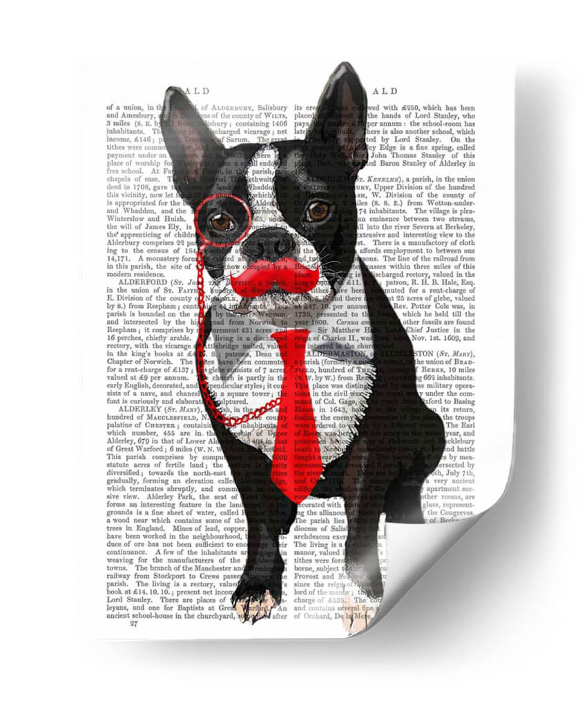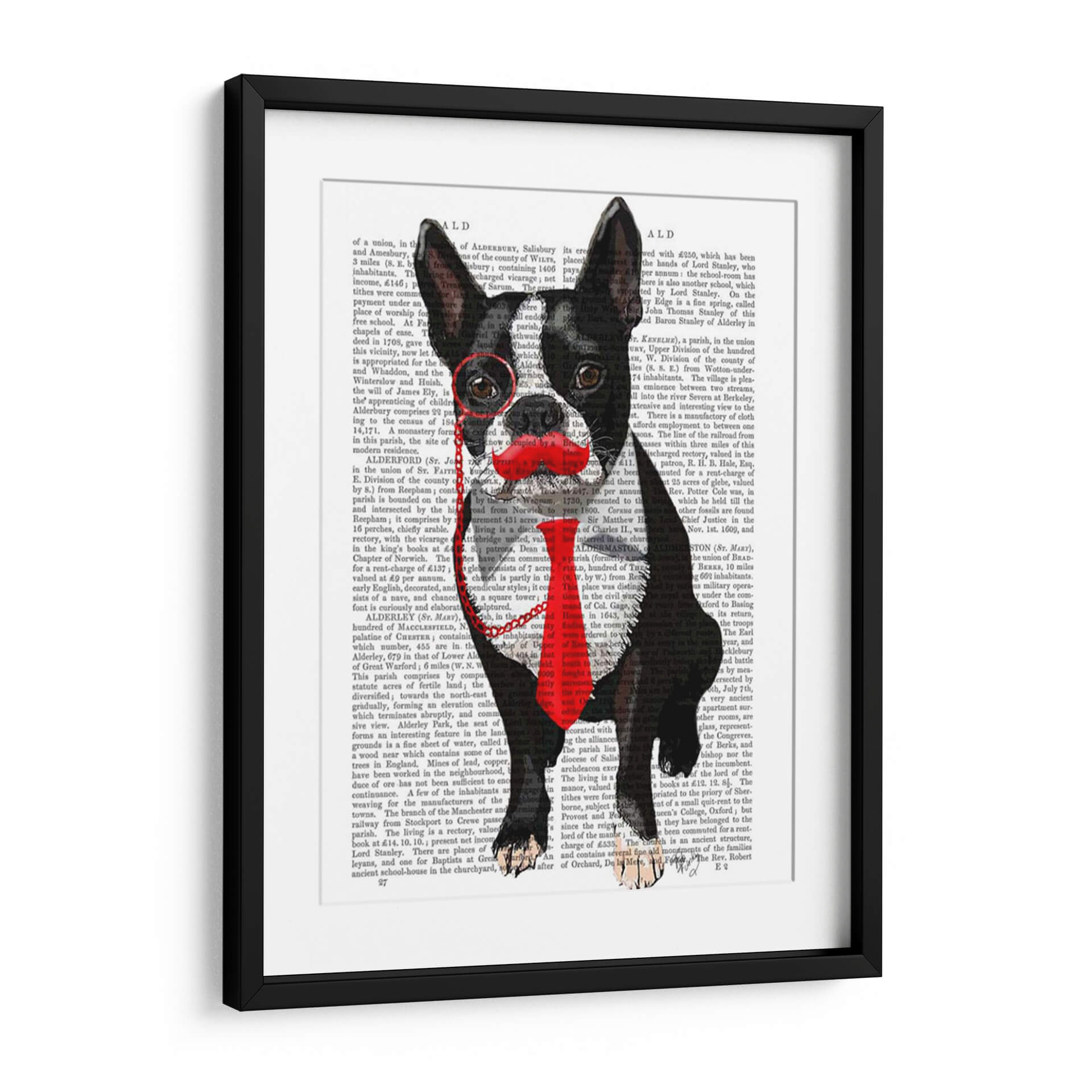 Transforma tu espacio con este cautivador cuadro decorativo de Boston Terrier, una obra de arte que irradia personalidad y estilo. La imagen presenta a un adorable Boston Terrier ataviado con una corbata roja vibrante y un distinguido monóculo, posando sobre un fondo de texto antiguo, evocando una sensación de elegancia vintage y diversión contemporánea. Los colores dominantes, el negro y blanco del perro contrastan con el rojo llamativo de la corbata, creando un punto focal audaz y lleno de carácter. El estilo combina elementos realistas del animal con un toque de surrealismo o humor, ideal para romper la monotonía de cualquier pared. Este lienzo es perfecto para amantes de los perros, coleccionistas de arte pop o para quienes buscan añadir un toque de ingenio y sofisticación a su hogar u oficina. Su composición única y la expresión del perro invitan a la conversación y añaden una chispa de alegría a cualquier ambiente, desde una sala de estar moderna hasta un estudio o una barbería con estilo.