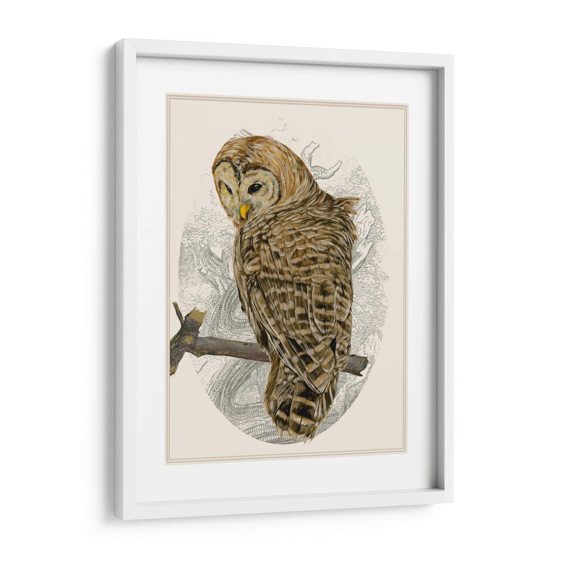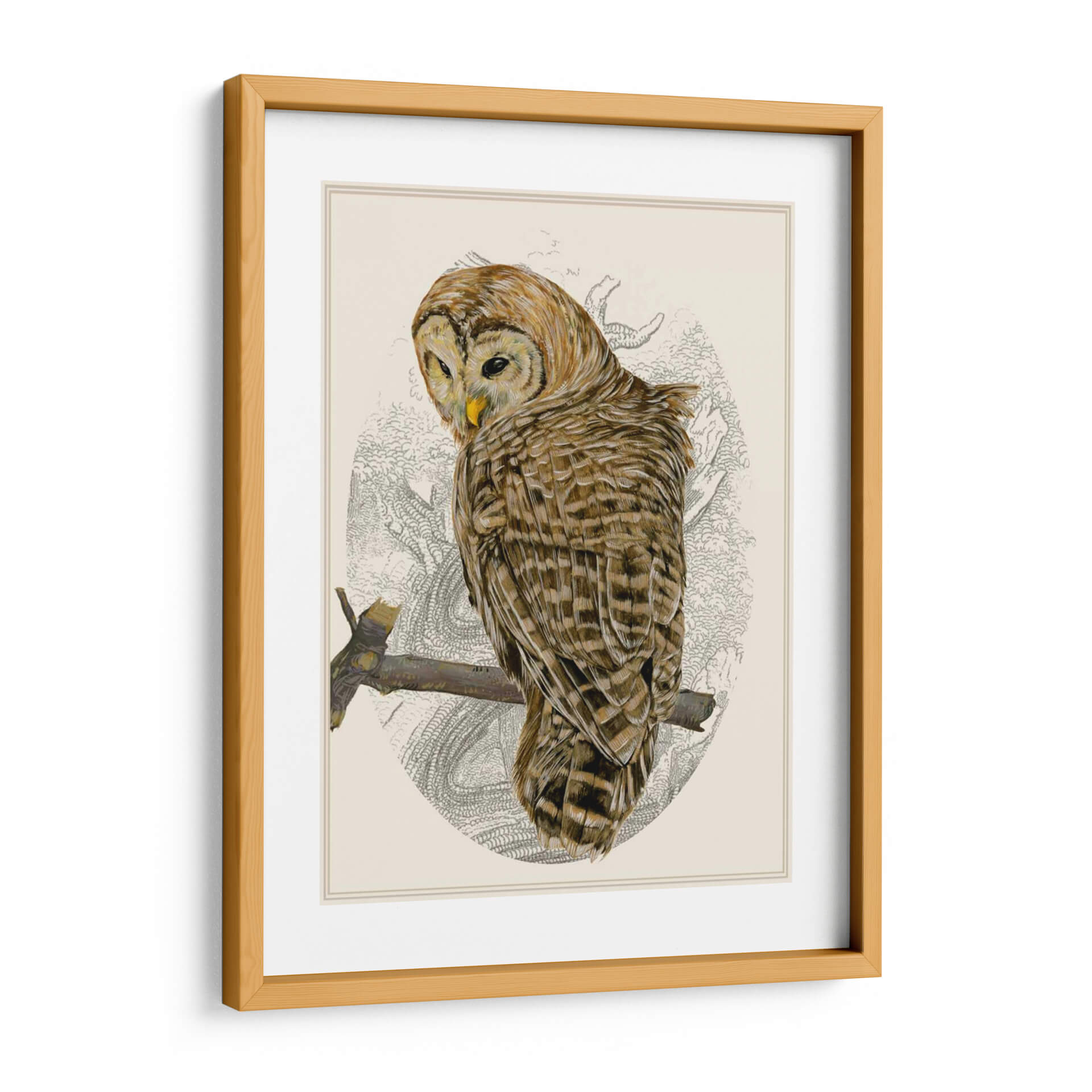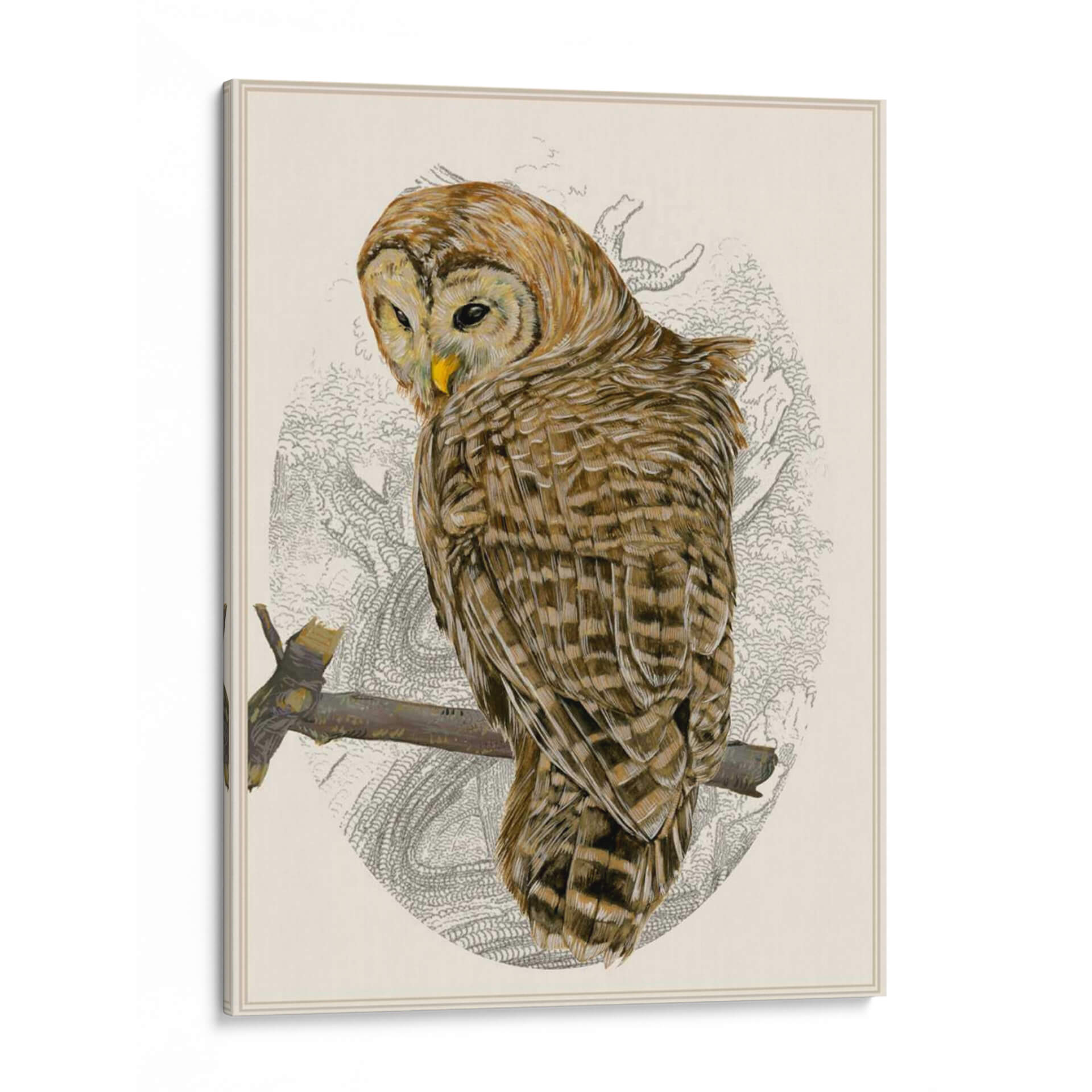 Cautiva la mirada con "Búho Barrado II", una obra de arte excepcional de Melissa Wang que trae la majestuosidad de la naturaleza a tu hogar. Este detallado cuadro decorativo presenta un búho posado en una rama, con una mirada penetrante que parece observar el mundo con sabiduría ancestral. La paleta de colores, dominada por tonos tierra, ocres y sutiles toques de amarillo, crea una atmósfera serena y acogedora, perfecta para cualquier estancia. La técnica empleada resalta la textura de las plumas del ave y el entorno boscoso sutilmente esbozado al fondo, aportando una sensación de profundidad y realismo.
