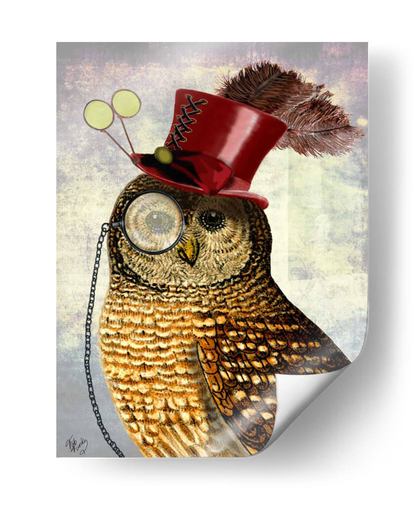 Sumérgete en la elegancia peculiar de nuestro cuadro decorativo 'Búho con Sombrero de Copa', una obra maestra digital del artista Fab Funky. Esta pieza cautivadora presenta un búho ricamente texturizado, ataviado con un llamativo sombrero de copa rojo y un monóculo, que le confieren un aire de sabiduría y sofisticación. La paleta de colores, dominada por tonos tierra cálidos y acentos vibrantes del sombrero, crea una atmósfera acogedora y distinguida. El fondo texturizado, con sutiles matices grises y morados, añade profundidad y un toque vintage a la composición, realzando la figura central del búho. Este cuadro es una elección perfecta para quienes buscan añadir un toque de originalidad y carácter a sus espacios, ya sea una sala de estar moderna, un estudio acogedor o una oficina con estilo. La expresión penetrante del búho y su atuendo inusual invitan a la contemplación y añaden un punto focal intrigante a cualquier decoración. Ideal para amantes de la fauna, el arte surrealista o simplemente para aquellos que aprecian una pieza que combina humor y elegancia.