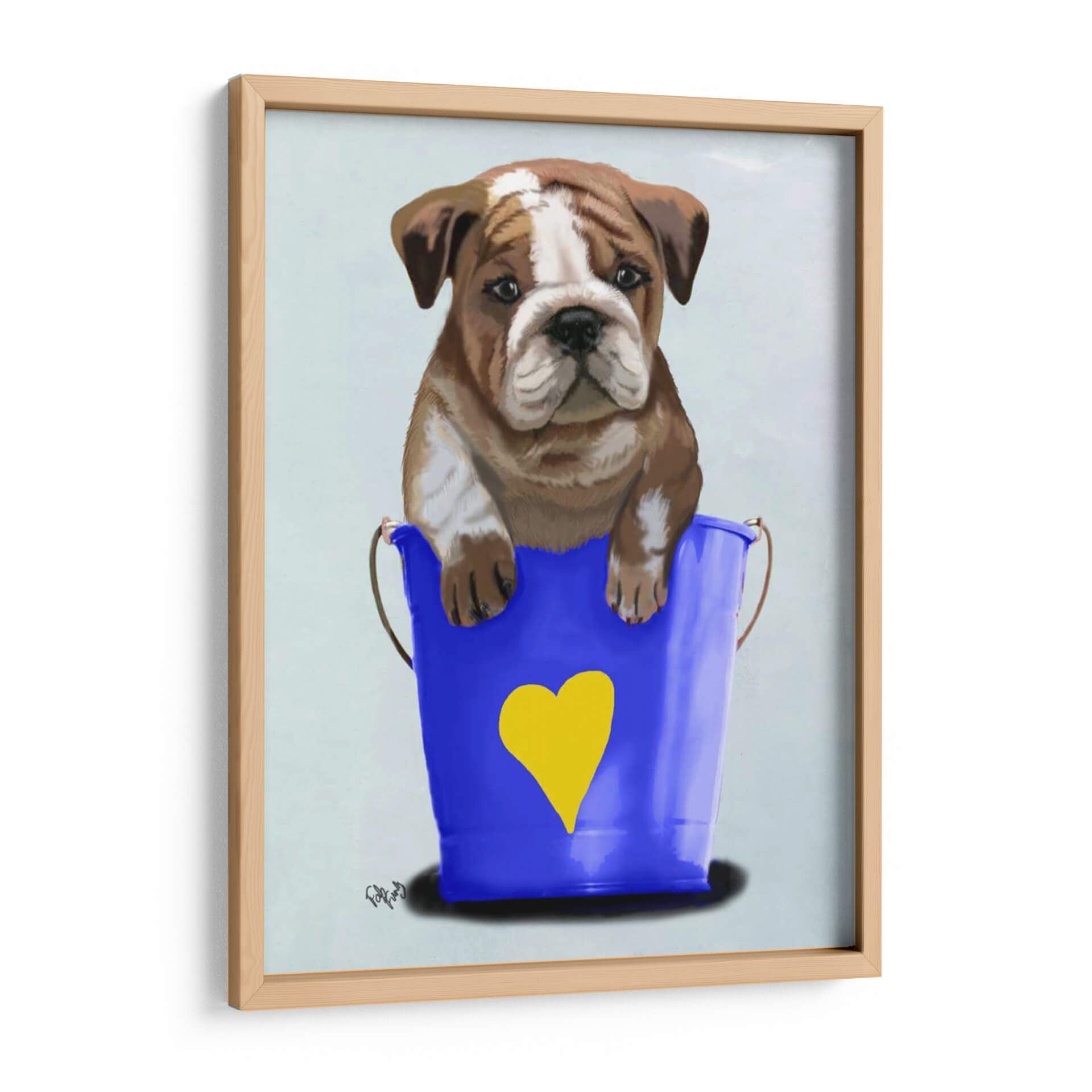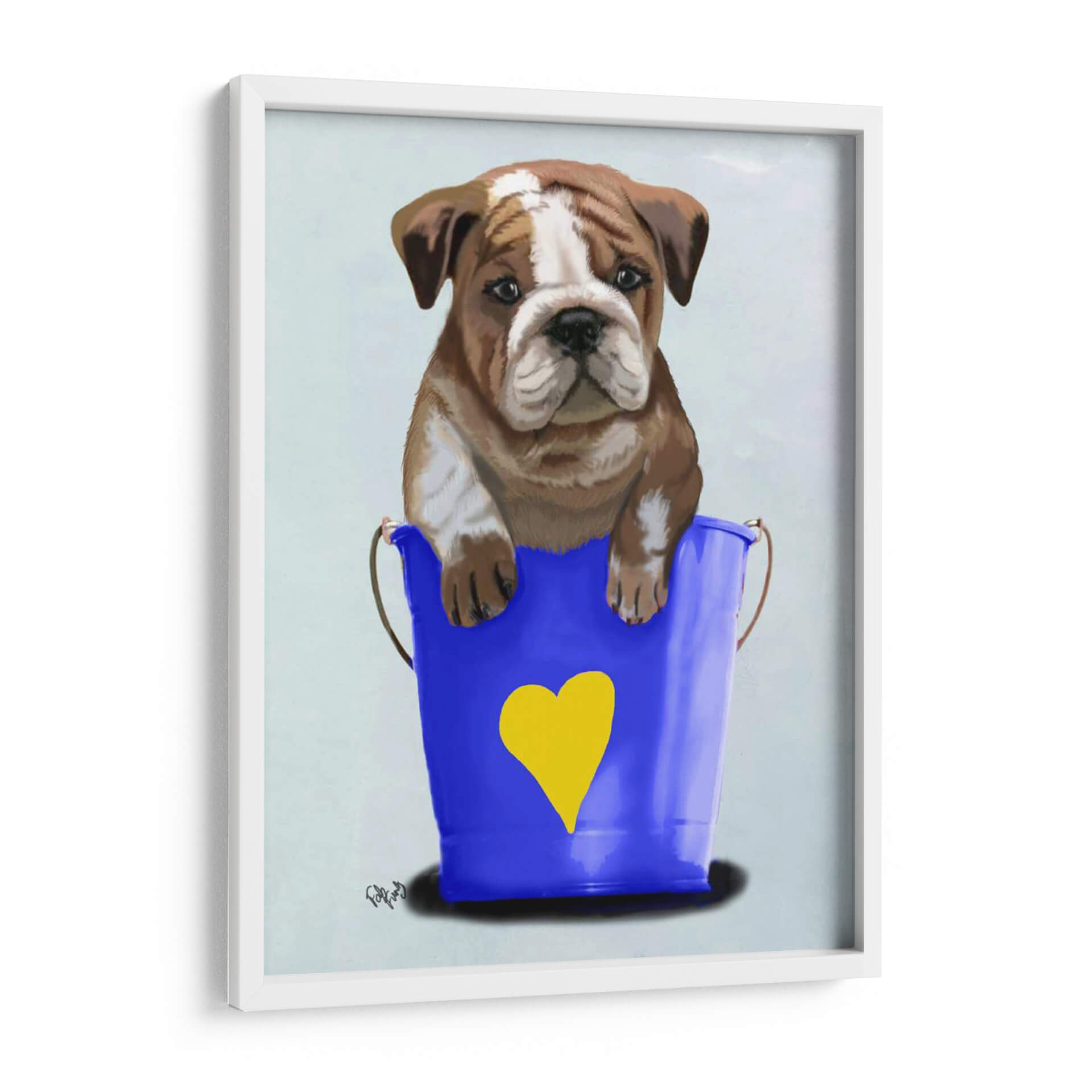 Cautiva a todos con este encantador cuadro decorativo de un adorable cachorro de Bulldog Inglés asomándose desde un cubo azul vibrante adornado con un corazón amarillo. La obra, titulada "Bulldog Bucket Of Love Blue" por el artista Fab Funky, captura la ternura y la inocencia de un cachorro, transmitiendo una sensación de alegría pura y amor incondicional. Los colores suaves del fondo, un celeste pálido, contrastan maravillosamente con el intenso azul del cubo y el brillante amarillo del corazón, creando una composición visualmente atractiva y llena de energía positiva. El estilo de la pintura es realista pero con un toque de fantasía, logrando que el espectador sienta una conexión inmediata con la simpática figura del perro. Las texturas sutiles y las sombras bien definidas añaden profundidad y realismo a la pieza, haciendo que el cachorro parezca cobrar vida. Este cuadro es una adición perfecta para cualquier espacio que necesite un toque de calidez y personalidad, ya sea una sala de estar, un dormitorio infantil o incluso una oficina. Ideal para los amantes de los perros y para quienes buscan una decoración que irradie felicidad y buen humor, este cuadro decorativo "Bulldog Bucket Of Love Blue" es una elección que sin duda alegrará cualquier ambiente y será un tema de conversación entre tus invitados.