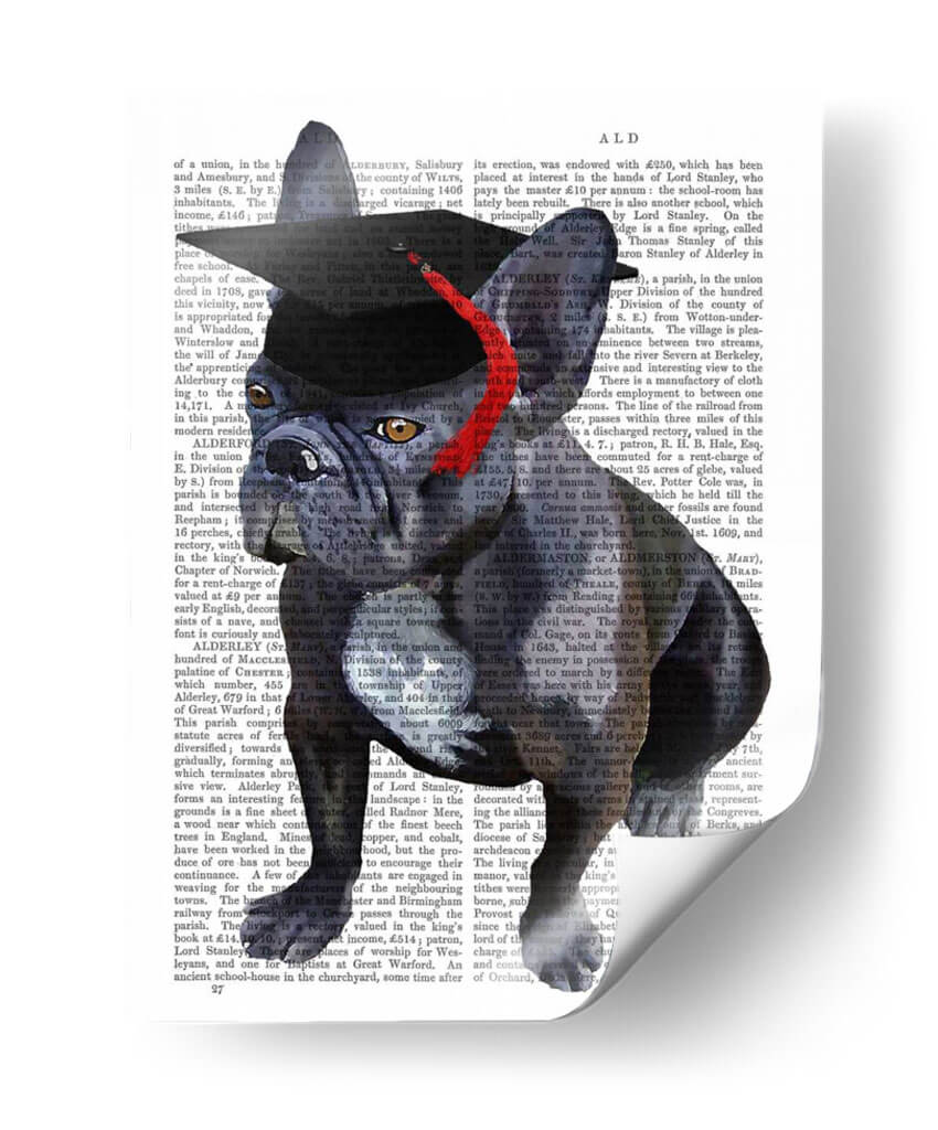 Descubre el encanto único de "Bulldog Francés de Graduación", una obra de arte contemporáneo que combina humor y estilo. Este cuadro decorativo presenta a un adorable bulldog francés ataviado con un birrete de graduación, posando con elegancia sobre un fondo de texto antiguo, evocando una sensación de sabiduría y diversión. Los tonos predominantes, con sutiles acentos de rojo vibrante en la banda del birrete, crean un contraste llamativo que captura la atención y añade un toque de personalidad a cualquier espacio. El estilo artístico, una fusión de realismo y elementos gráficos, hace que el personaje cobre vida, invitando a la contemplación y a una sonrisa. Ideal para salones modernos, estudios creativos u oficinas, esta pieza es perfecta para quienes buscan añadir un toque de ingenio y sofisticación a su decoración. Transforma tus paredes con este cuadro decorativo que no solo embellece, sino que también cuenta una historia, convirtiéndose en un punto focal de conversación y admiración. Su versatilidad permite integrarlo en diversas estéticas, desde la contemporánea hasta la ecléctica, aportando siempre un aire de originalidad y buen gusto.