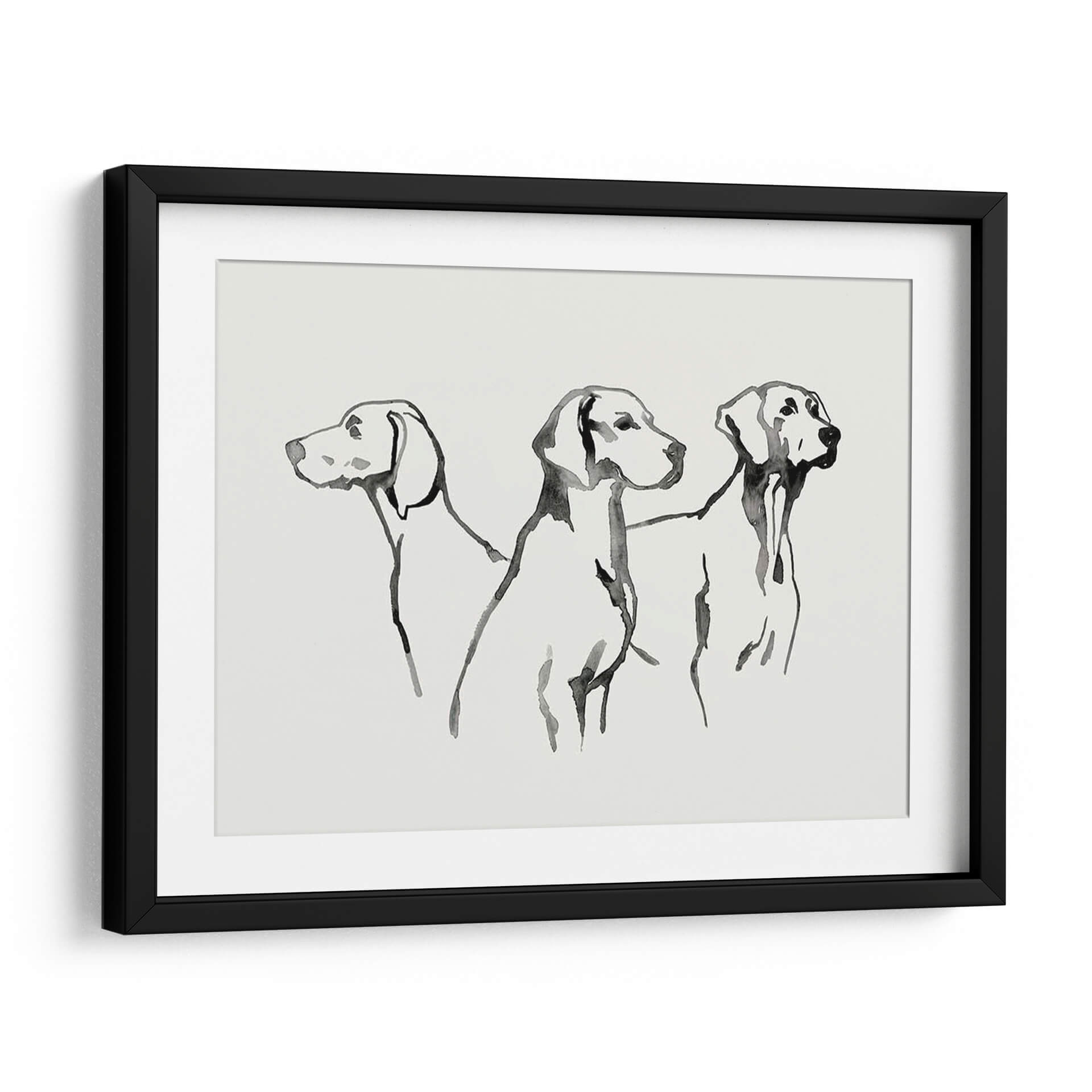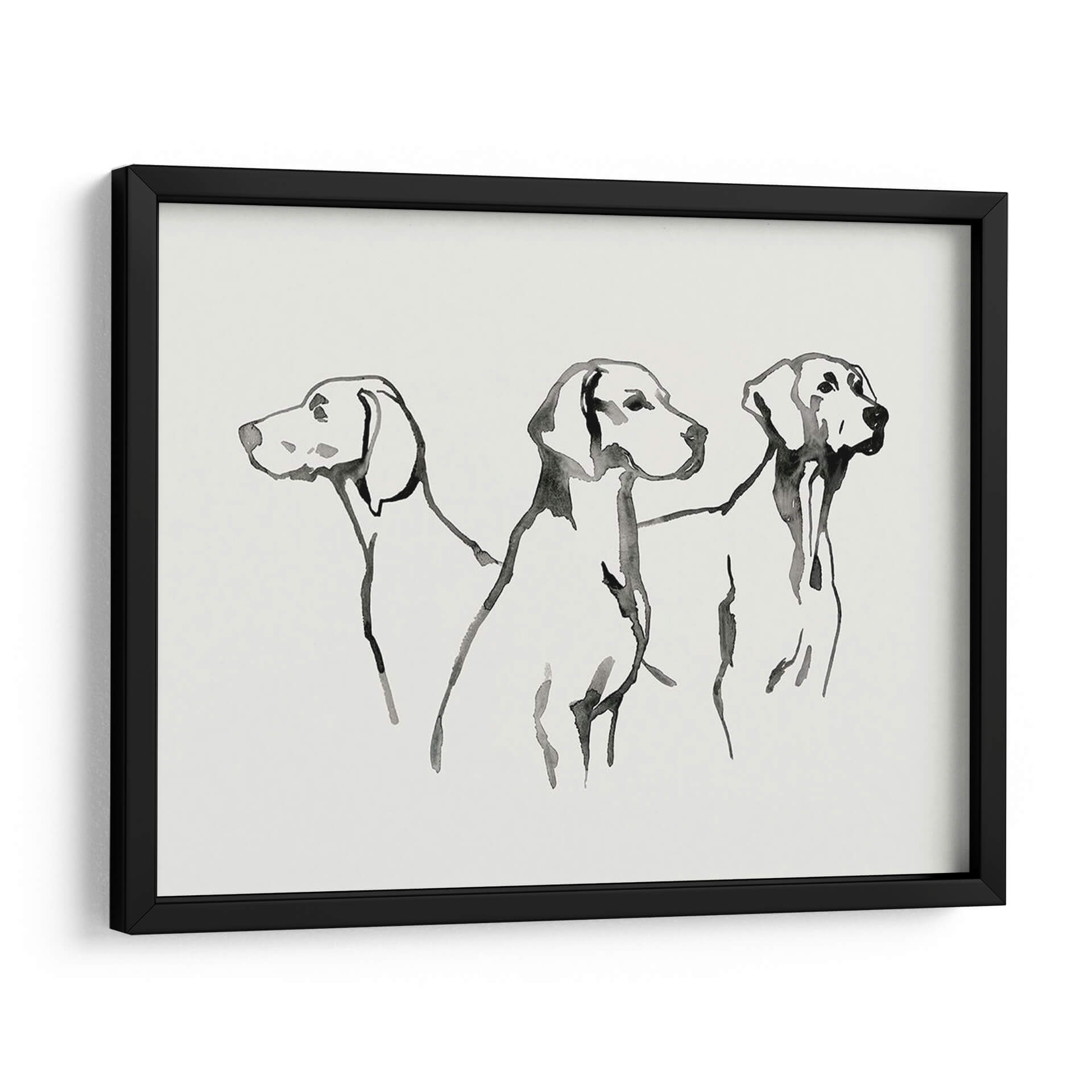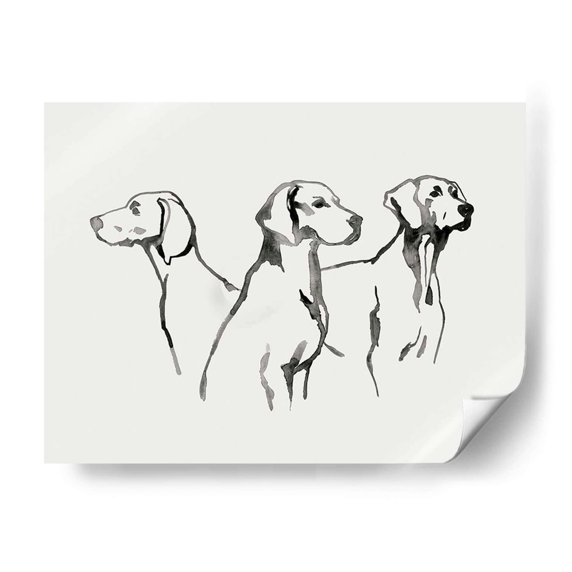 Sumérgete en la elegancia sutil de "Cachorro De Acuarela I", una obra de arte que captura la esencia de tres perros en un estilo de acuarela minimalista y expresivo. La artista Grace Popp utiliza trazos fluidos y una paleta de colores monocromática, dominada por el negro sobre un fondo de suave tono crema, para dar vida a estas nobles figuras caninas. Cada trazo evoca movimiento y personalidad, creando una pieza que es a la vez delicada y cautivadora. Este cuadro decorativo es perfecto para añadir un toque de sofisticación y calidez a cualquier espacio, ya sea una sala de estar moderna, un estudio tranquilo o una entrada acogedora. Su diseño minimalista lo hace increíblemente versátil, complementando una amplia gama de estilos de decoración, desde el contemporáneo hasta el escandinavo. Imagina cómo esta obra puede convertirse en el punto focal de tu hogar, generando conversaciones y transmitiendo una sensación de calma y aprecio por la belleza animal. "Cachorro De Acuarela I" no es solo una pieza de arte, es una invitación a contemplar la gracia y la lealtad a través de una técnica artística depurada y emotiva, ideal para los amantes de los perros y del buen gusto.