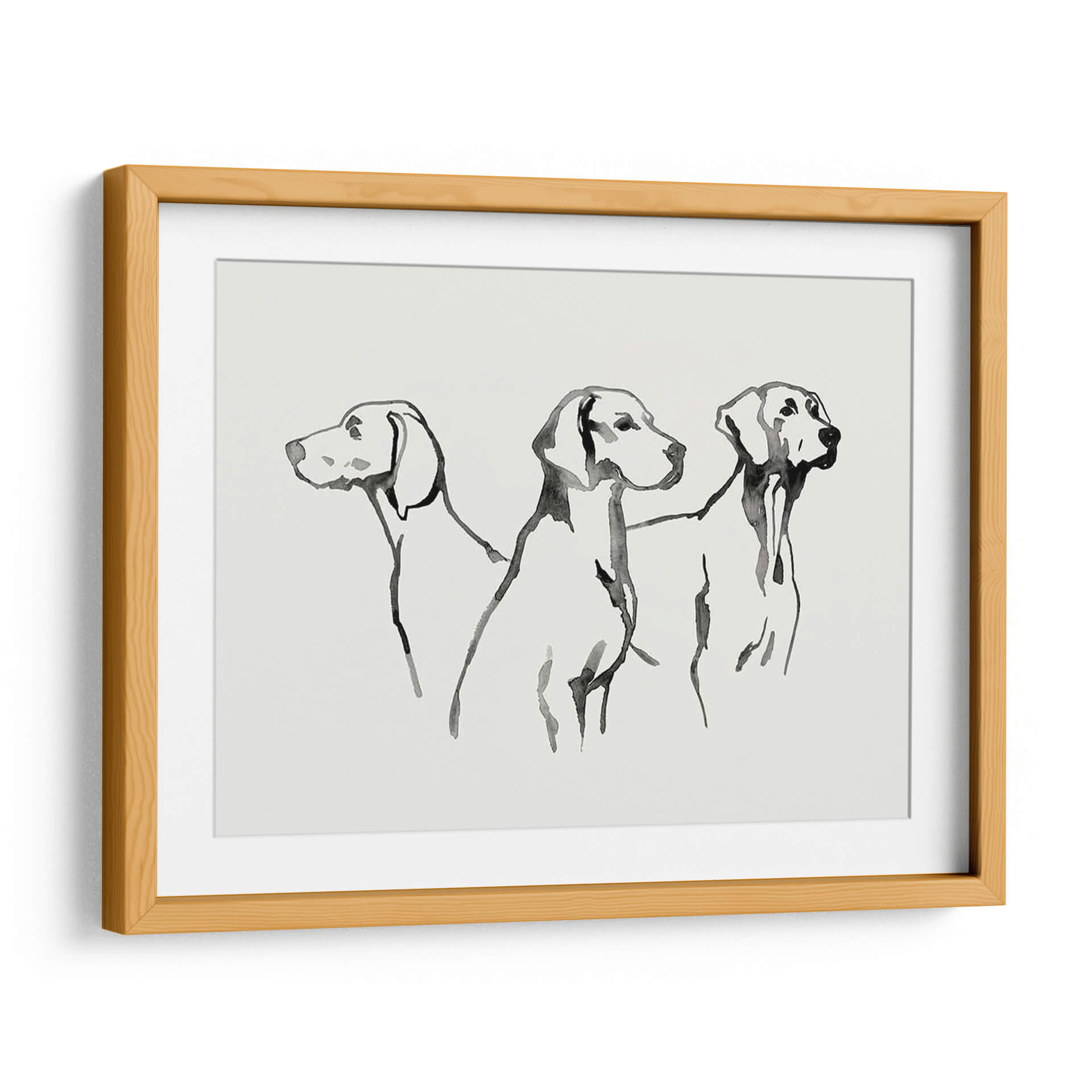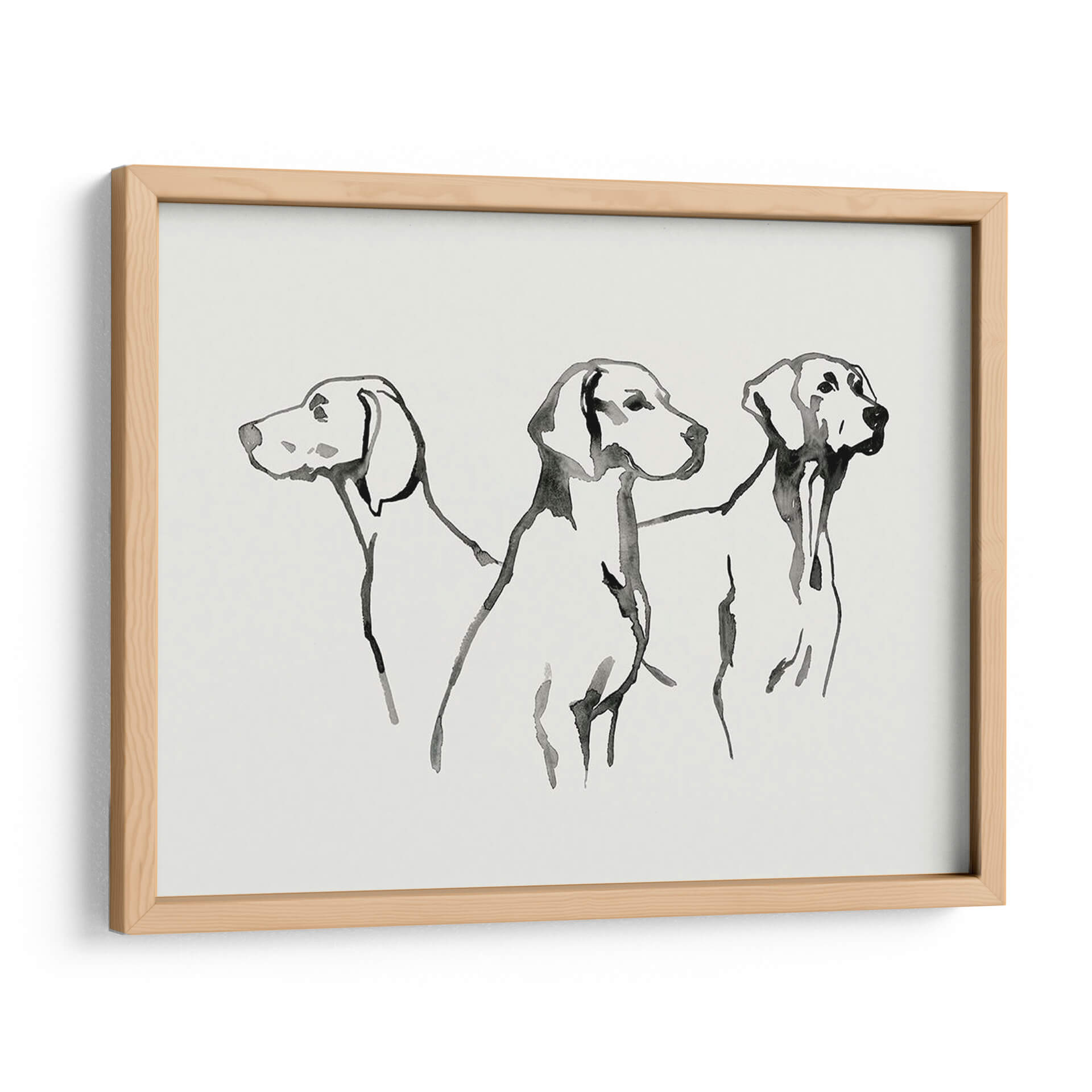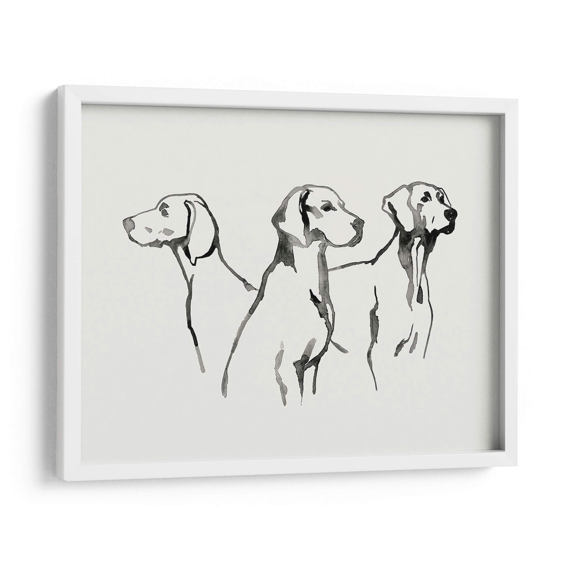 Sumérgete en la elegancia sutil de "Cachorro De Acuarela I", una obra de arte que captura la esencia de tres perros en un estilo de acuarela minimalista y expresivo. La artista Grace Popp utiliza trazos fluidos y una paleta de colores monocromática, dominada por el negro sobre un fondo de suave tono crema, para dar vida a estas nobles figuras caninas. Cada trazo evoca movimiento y personalidad, creando una pieza que es a la vez delicada y cautivadora. Este cuadro decorativo es perfecto para añadir un toque de sofisticación y calidez a cualquier espacio, ya sea una sala de estar moderna, un estudio tranquilo o una entrada acogedora. Su diseño minimalista lo hace increíblemente versátil, complementando una amplia gama de estilos de decoración, desde el contemporáneo hasta el escandinavo. Imagina cómo esta obra puede convertirse en el punto focal de tu hogar, generando conversaciones y transmitiendo una sensación de calma y aprecio por la belleza animal. "Cachorro De Acuarela I" no es solo una pieza de arte, es una invitación a contemplar la gracia y la lealtad a través de una técnica artística depurada y emotiva, ideal para los amantes de los perros y del buen gusto.