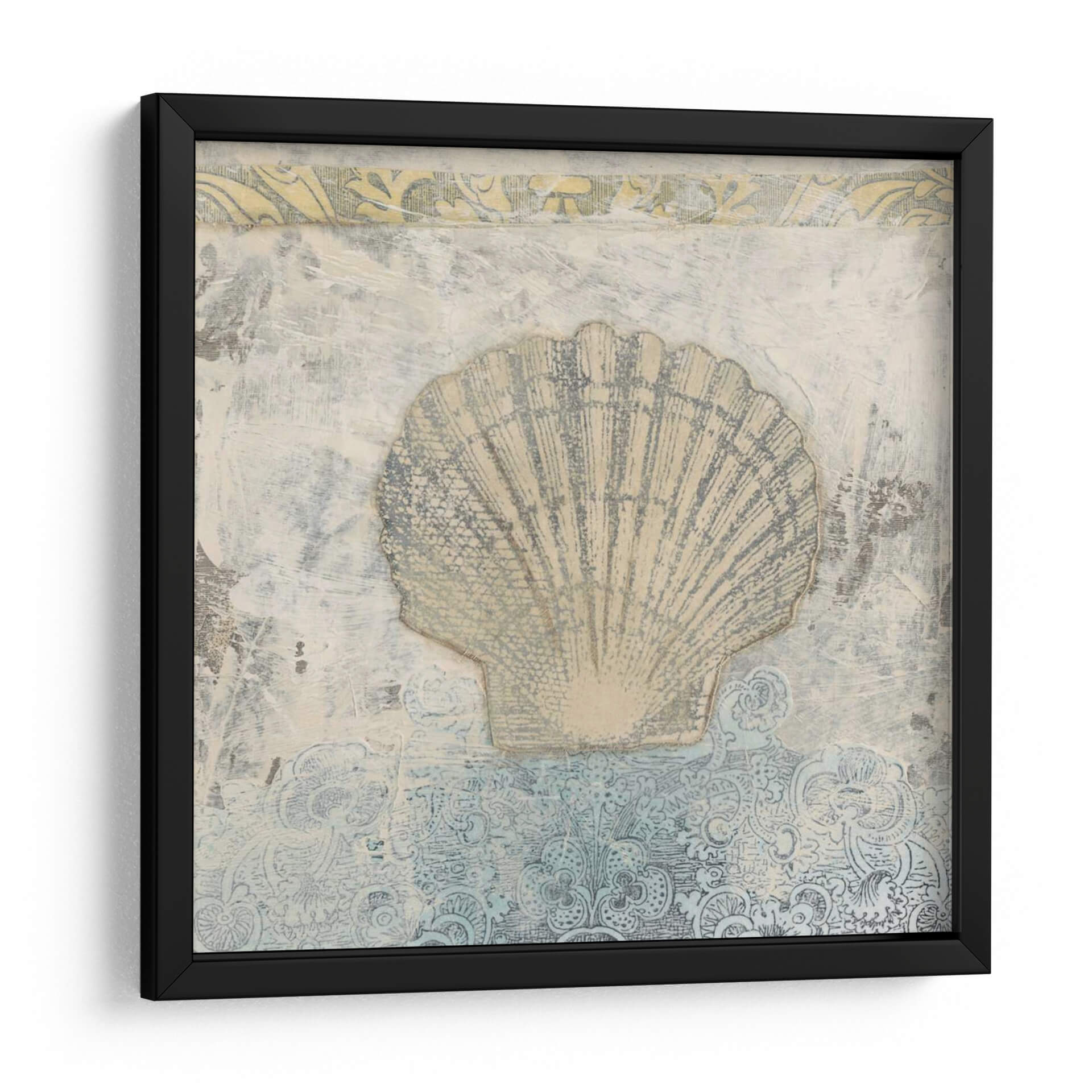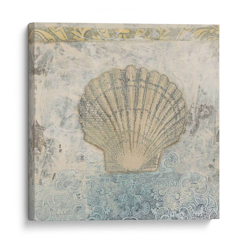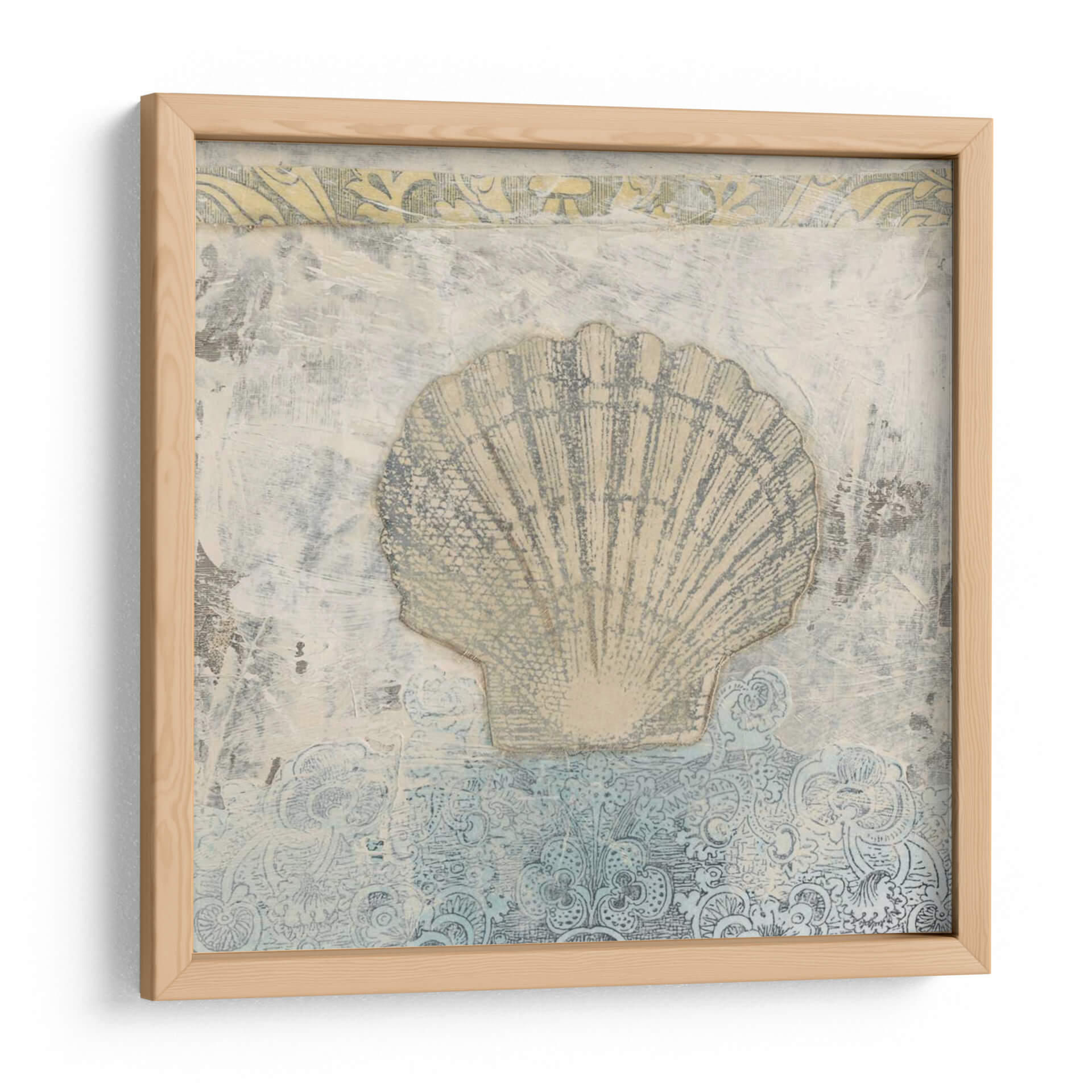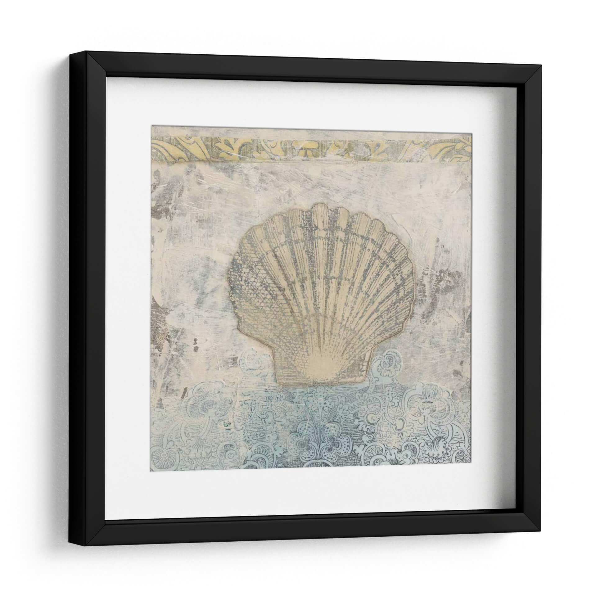 Sumérgete en la serenidad costera con "Caminueve Costero V", una obra de arte cautivadora de June Erica Vess. Este cuadro decorativo captura la delicada belleza de una concha marina sobre un fondo texturizado que evoca la calma del océano. La paleta de colores, dominada por tonos suaves de azul pálido, blanco roto y toques de gris, crea una atmósfera relajante y etérea, perfecta para cualquier espacio que busque un refugio de tranquilidad. La composición presenta una concha de gran tamaño en el centro, con detalles intrincados que sugieren las marcas del tiempo y la naturaleza. La parte inferior de la obra se adorna con un patrón ornamental en tono azul claro, que imita las olas o encajes marinos, añadiendo profundidad y un toque de sofisticación. La técnica mixta y las texturas visibles aportan una cualidad táctil a la pieza, invitando a la contemplación. Este cuadro es ideal para dormitorios, baños o cualquier estancia donde se desee infundir una sensación de paz y conexión con el mar. Añade un toque de elegancia costera a tu hogar con esta pieza única.