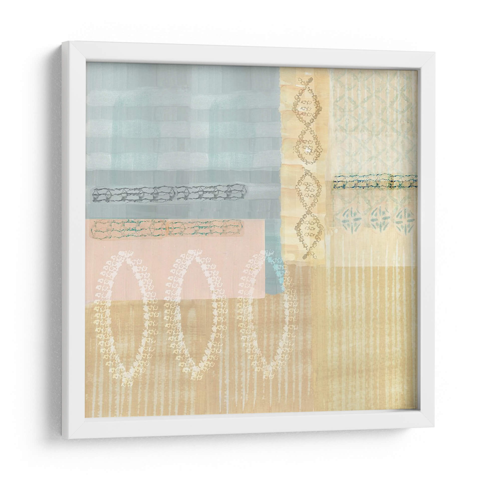 Transforma tu espacio con la serena belleza del cuadro decorativo 'Campo De Maíz Ii'. Esta obra abstracta, inspirada en la sutileza de la naturaleza, te transporta a un ambiente de calma y reflexión. La paleta de colores se compone de suaves tonos pastel, incluyendo azules celestes, rosas empolvados y ocres dorados, que crean una atmósfera etérea y relajante. La composición juega con bloques de color y texturas sutiles, incorporando patrones geométricos y orgánicos que invitan a la contemplación. Las líneas verticales y los elementos curvos en relieve generan un dinamismo contenido, añadiendo profundidad y carácter a la pieza. Ideal para infusionar tranquilidad en tu dormitorio, aportar un toque de sofisticación a tu sala de estar, o añadir una nota de inspiración artística a tu oficina. Este cuadro abstracto moderno es una elección perfecta para quienes buscan una decoración que combine elegancia, serenidad y un toque de arte contemporáneo. Deja que 'Campo De Maíz Ii' sea el punto focal que eleve la estética de tu hogar, creando un ambiente acogedor y lleno de estilo.