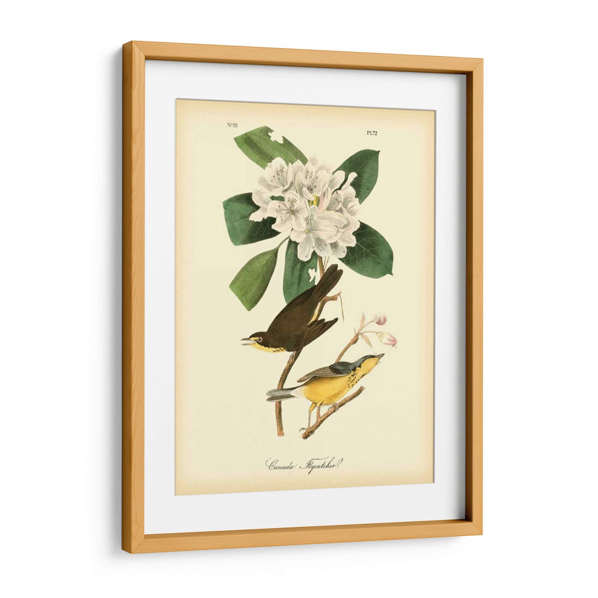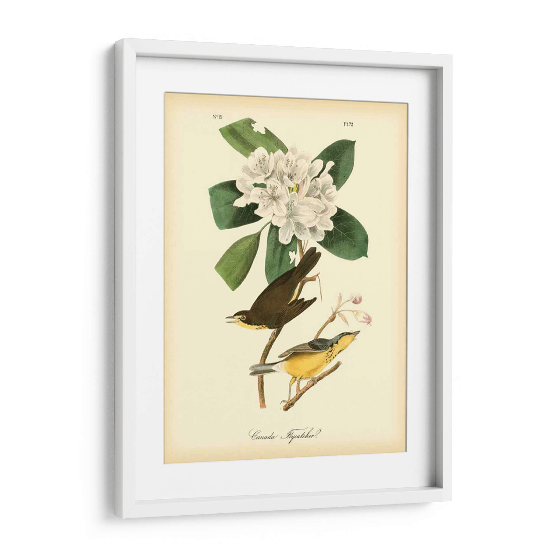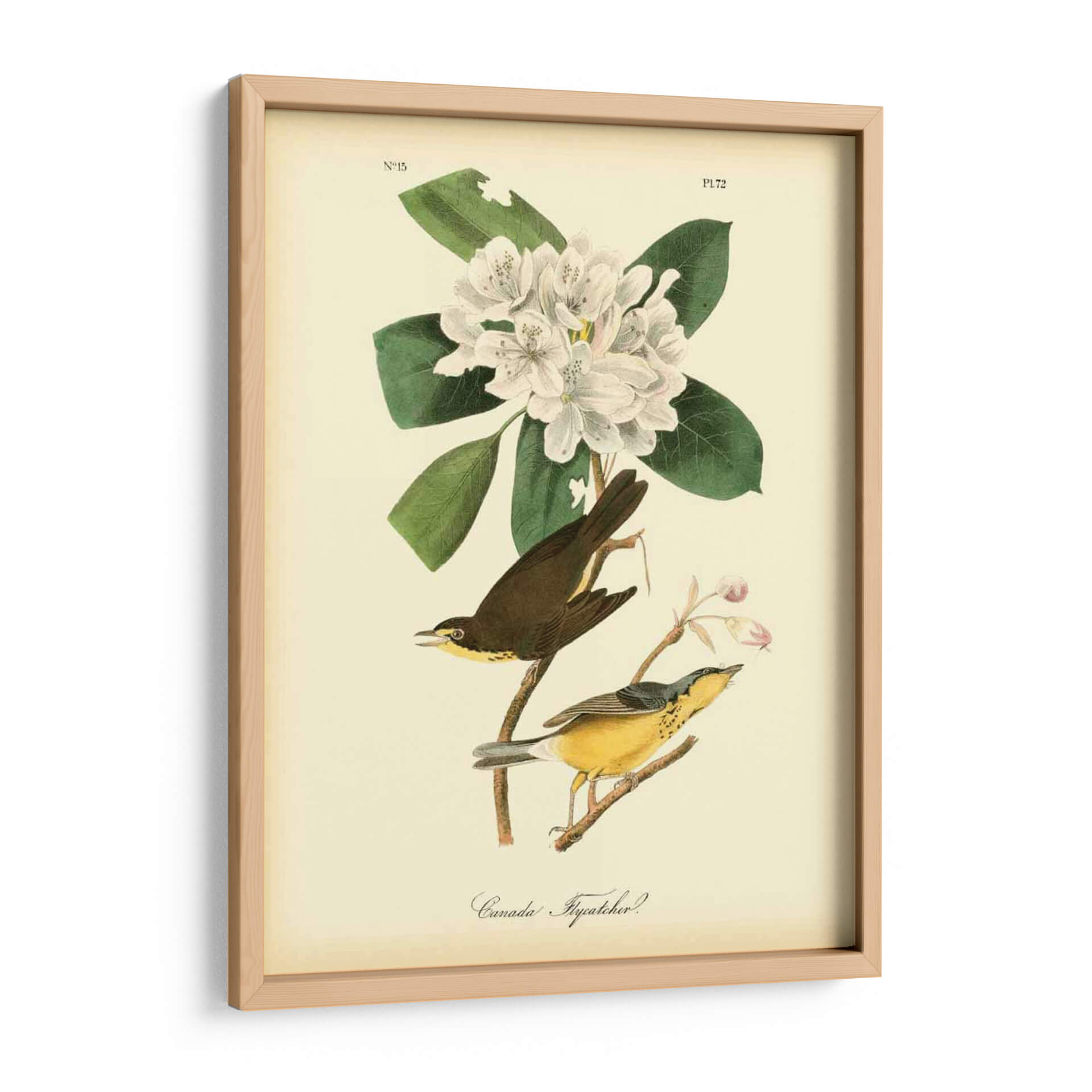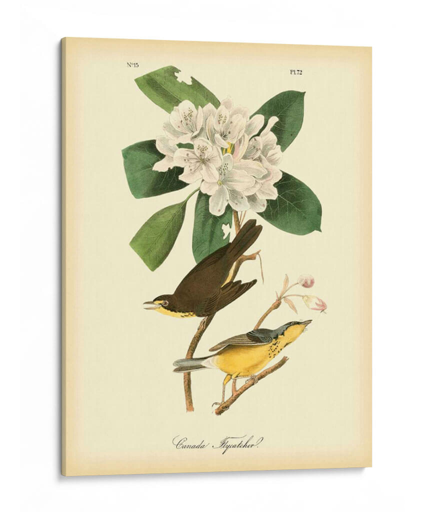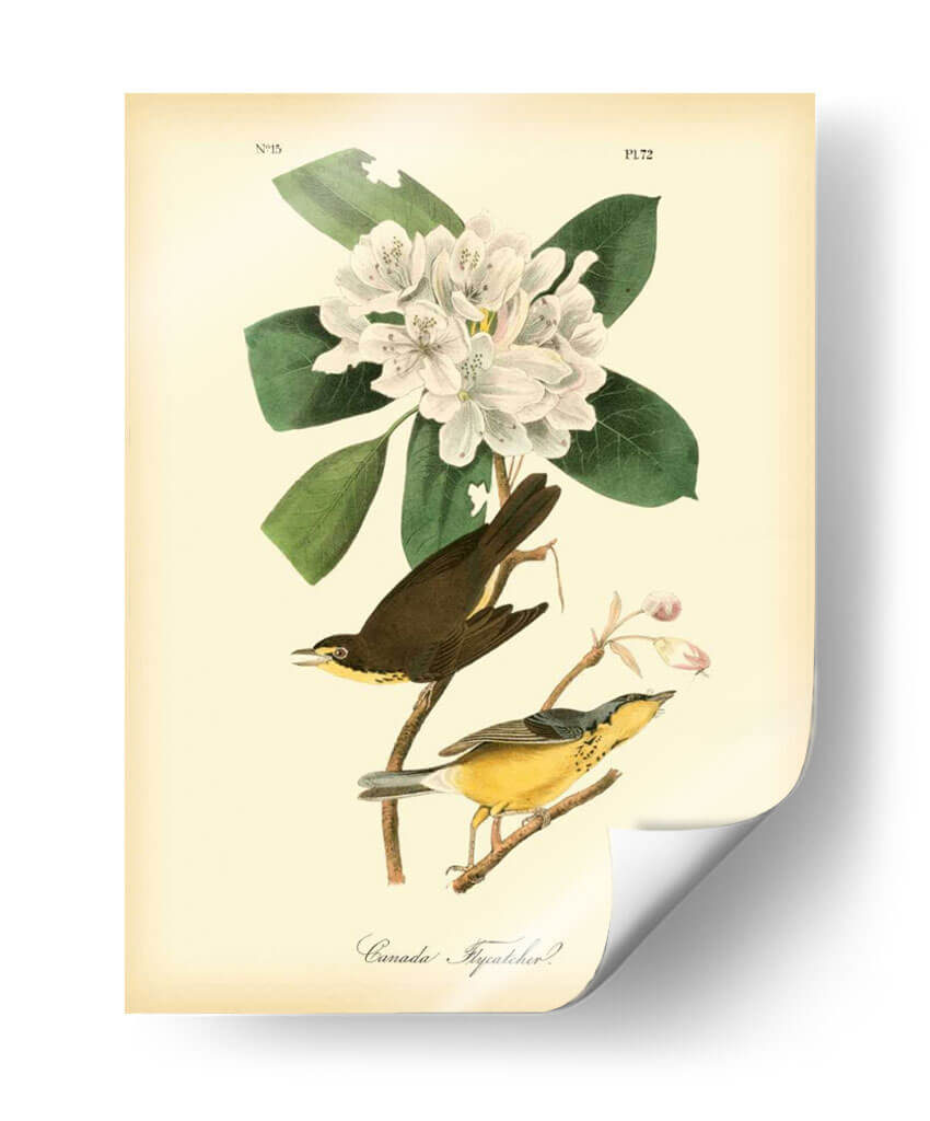 Emb r ércate en la belleza atemporal de "Canada Flycatcher", una obra maestra del renombrado naturalista John James Audubon. Esta exquisita ilustración de aves captura la delicadeza y el vibrante plumaje de dos ejemplares posados sobre ramas florales, rodeados por hojas verdes exuberantes. La paleta de colores, dominada por tonos tierra, amarillos brillantes y blancos puros de las flores, crea una atmósfera de serenidad y conexión con la naturaleza. La composición detallada y precisa, característica del estilo científico de Audubon, realza la vitalidad de las aves y la textura de la flora, invitando a la contemplación. Este cuadro decorativo es ideal para añadir un toque de elegancia clásica y un guiño al mundo natural a cualquier espacio, ya sea una sala de estar, un estudio o un dormitorio. Su diseño atemporal y su detallada representación lo convierten en una pieza versátil que puede complementar tanto decoraciones tradicionales como contemporáneas, aportando un aire de sofisticación y tranquilidad. "Canada Flycatcher" no es solo una obra de arte, sino una ventana a la maravilla de la ornitología y la botánica, perfecta para amantes de la naturaleza y el arte por igual. Añade esta joya a tu colección y transforma tu hogar en un santuario de belleza y paz, apreciando el legado artístico de Audubon en alta definición. Es una pieza que evoca calma y admiración por los detalles del mundo natural, ideal para espacios que buscan inspiración y serenidad.
