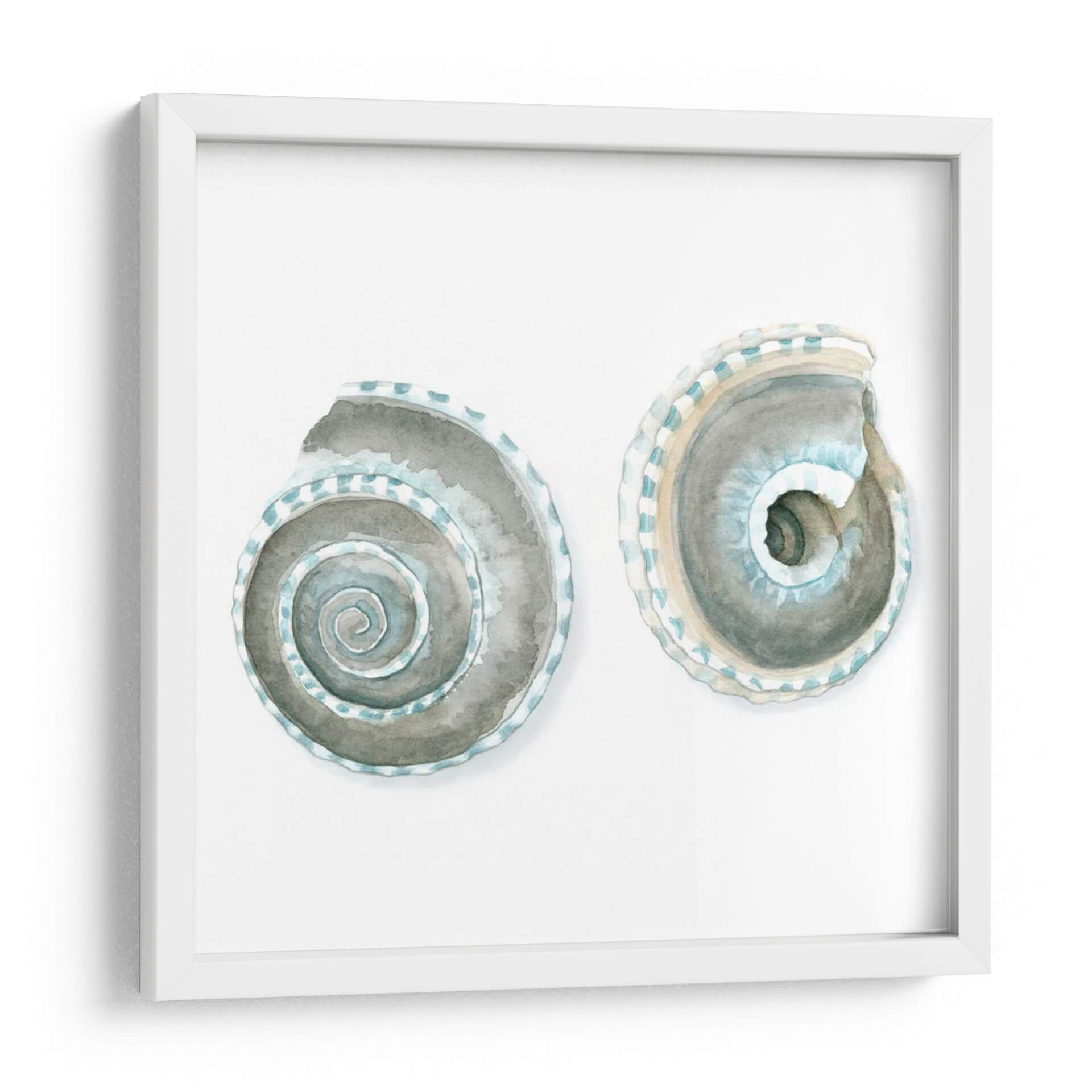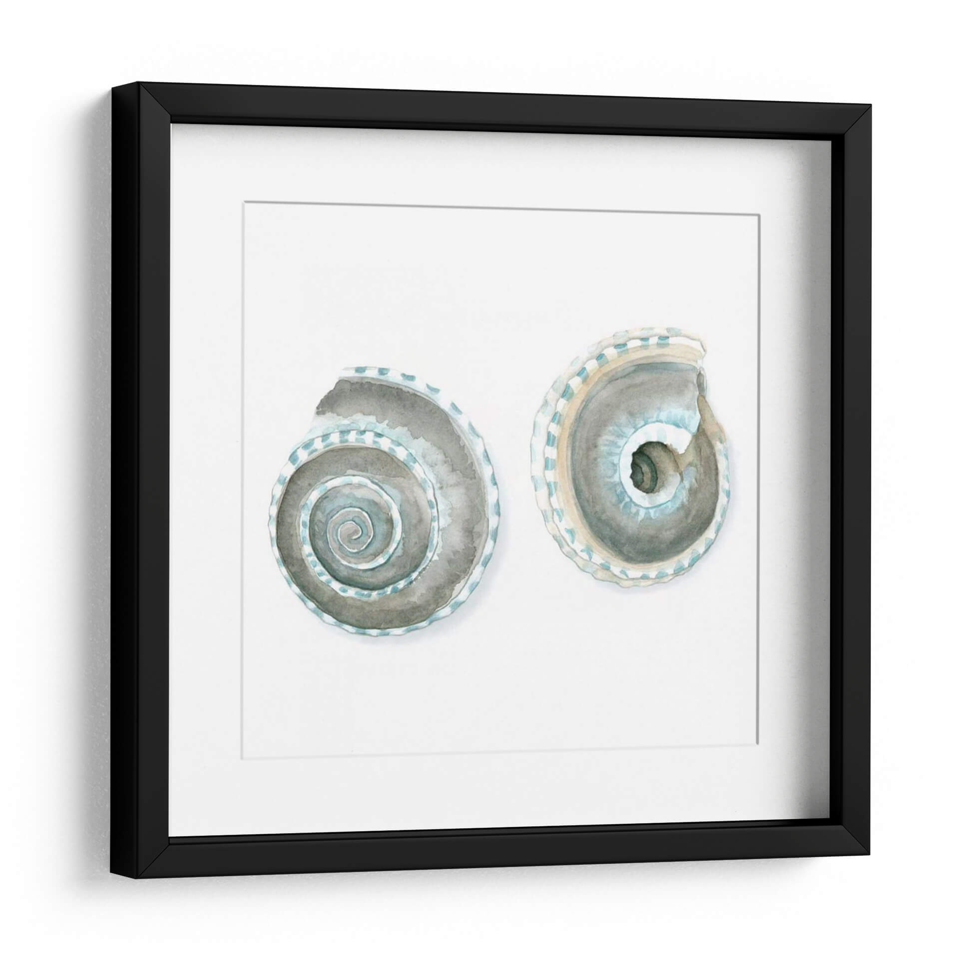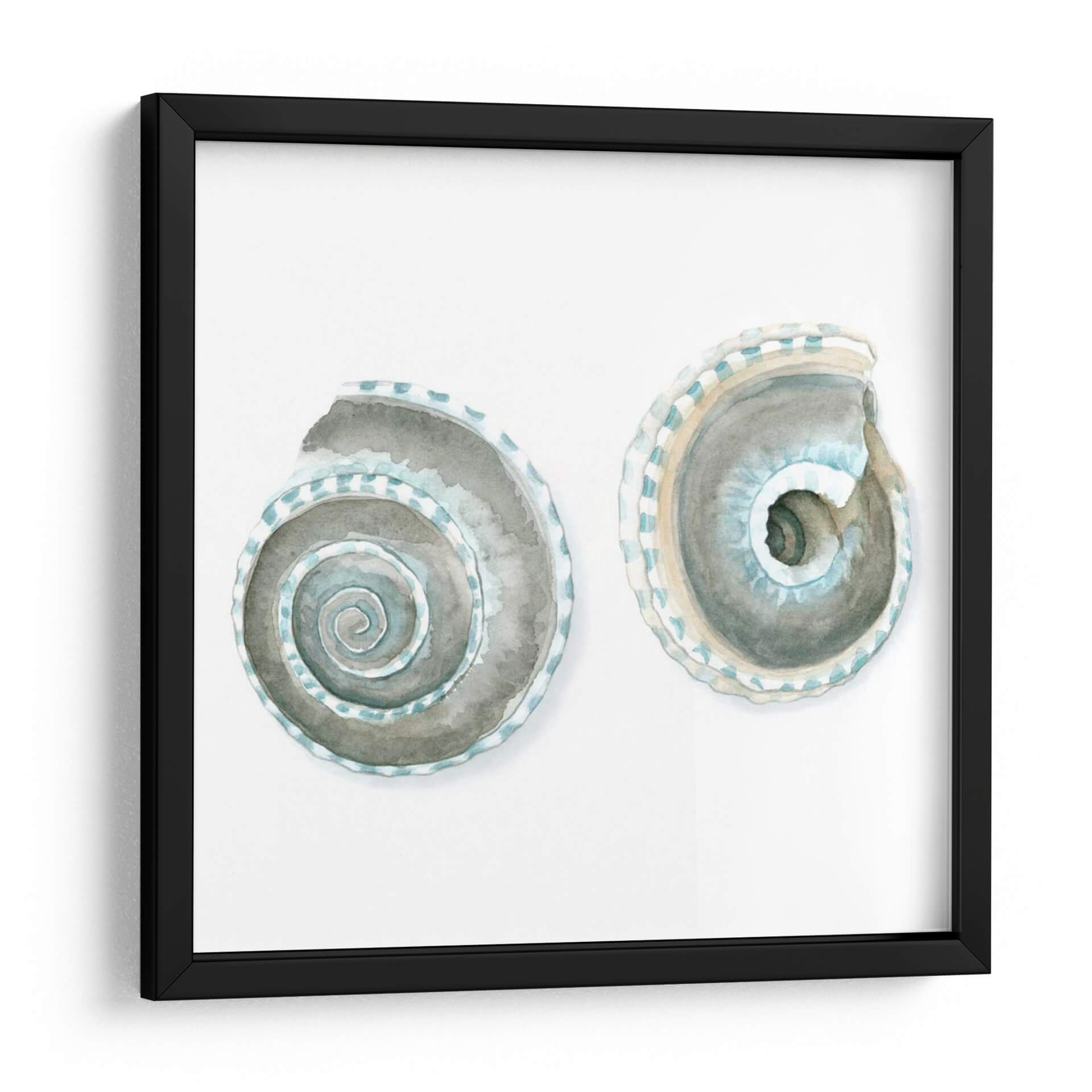 Sumérgete en la serenidad costera con "Cáscaras de Acuarela IV", una exquisita obra de arte de Megan Meagher. Esta pieza captura la delicada belleza de dos conchas marinas en un estilo acuarela suave y etéreo. Los tonos grises, azules pálidos y toques terrosos se entrelazan, creando una paleta de colores que evoca la calma del océano y la tranquilidad de la naturaleza. La composición presenta las conchas con un detalle intrincado, resaltando sus formas espirales y texturas sutiles sobre un fondo blanco limpio, lo que permite que cada detalle respire. Ideal para aquellos que buscan infundir a sus espacios un ambiente relajante y orgánico, este cuadro decorativo es perfecto para dormitorios, baños o cualquier rincón que necesite un toque de serenidad natural. La técnica de acuarela aporta una ligereza y fluidez únicas, haciendo que esta obra sea un complemento encantador y atemporal para tu decoración, evocando la paz y la belleza del mar en tu hogar.