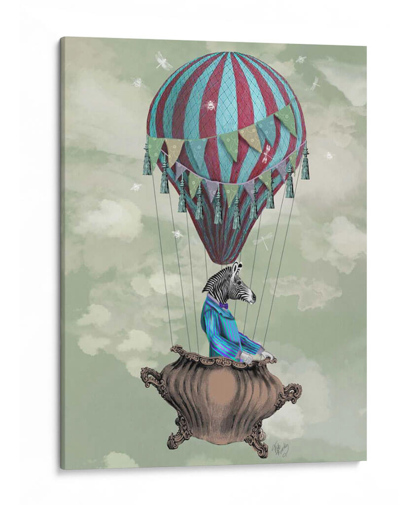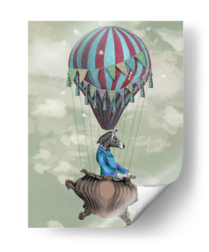 Embárquese en un viaje surrealista con "Cebra Voladora", una obra de arte cautivadora que desafía la imaginación. Esta pieza digital presenta una cebra elegantemente vestida, sentada en una cesta ornamentada mientras asciende en un globo aerostático de rayas vibrantes. El cielo de fondo, con sus nubes etéreas y sutiles presencias de libélulas y abejas, crea una atmósfera de ensueño y fantasía. Los tonos verde salvia del cielo contrastan armoniosamente con los rojos y turquesas del globo, y el azul rayado del atuendo de la cebra, generando una paleta de colores sofisticada y llamativa. El estilo, que fusiona lo real con lo fantástico, invita a la reflexión sobre la libertad y la aventura. Ideal para quienes buscan un cuadro decorativo que inyecte personalidad y un toque de humor peculiar a cualquier espacio, desde una sala de estar moderna hasta una oficina creativa. "Cebra Voladora" es más que una imagen; es una invitación a soñar despierto y añadir un elemento único a su decoración de pared.