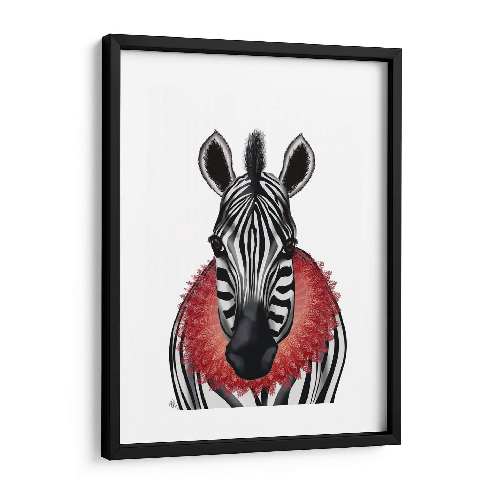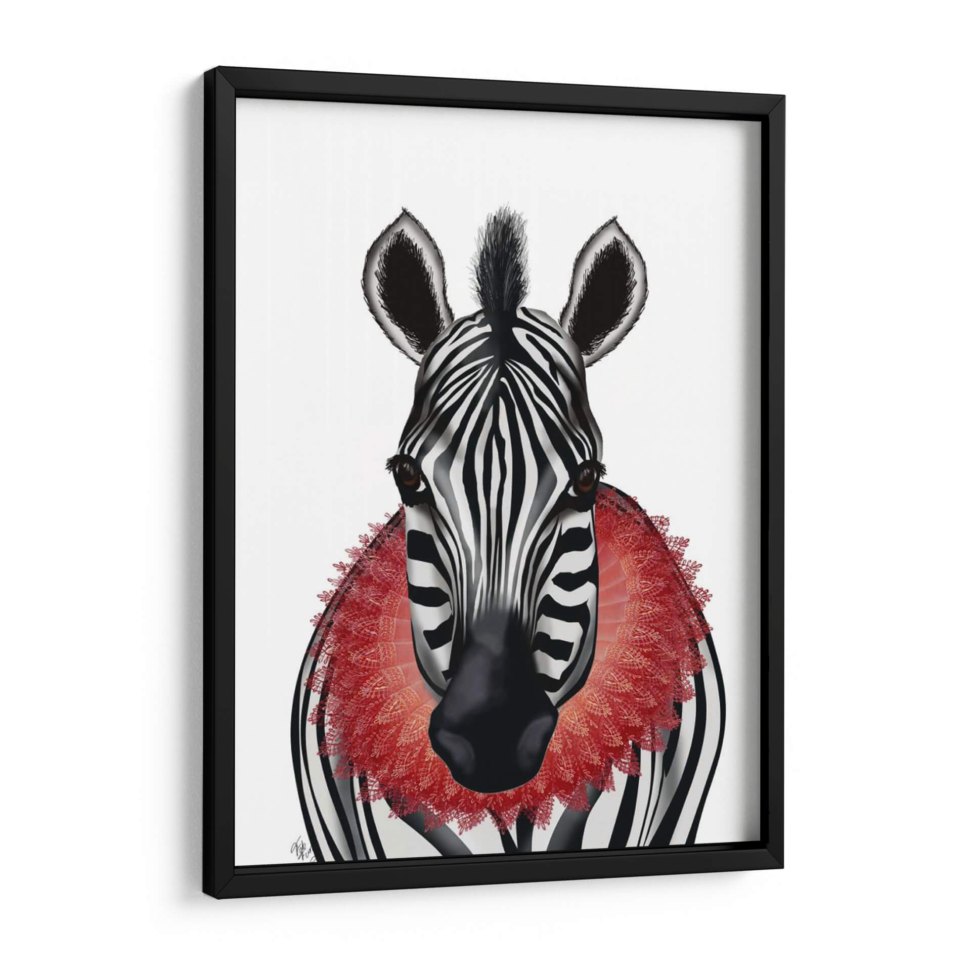 Atrévete a dar un toque de audacia y elegancia a tu hogar con este cautivador cuadro decorativo de una cebra, realzado por un llamativo collar de volantes en tono rojo. La obra maestra, titulada 'Cebra Y Ruff Rojo' del artista Fab Funky, combina la icónica estampa de cebra en blanco y negro con un contraste vibrante y detallado, creando una pieza que no pasa desapercibida. La composición se centra en el rostro de la cebra, sus penetrantes ojos y la textura intrincada del adorno rojo, generando una atmósfera de sofisticación con un toque juguetón. Este cuadro es perfecto para quienes buscan añadir personalidad y un punto focal interesante a sus espacios, ya sea en una sala de estar moderna, un despacho o incluso un dormitorio. Su estilo único, que fusiona realismo con un elemento surrealista, lo convierte en una pieza de arte contemporáneo ideal para romper la monotonía y estimular la conversación. Añade un toque de color y carácter a tus paredes con esta obra de arte digital que evoca un sentido de distinción y originalidad, asegurando que tu decoración destaque y refleje tu estilo único.