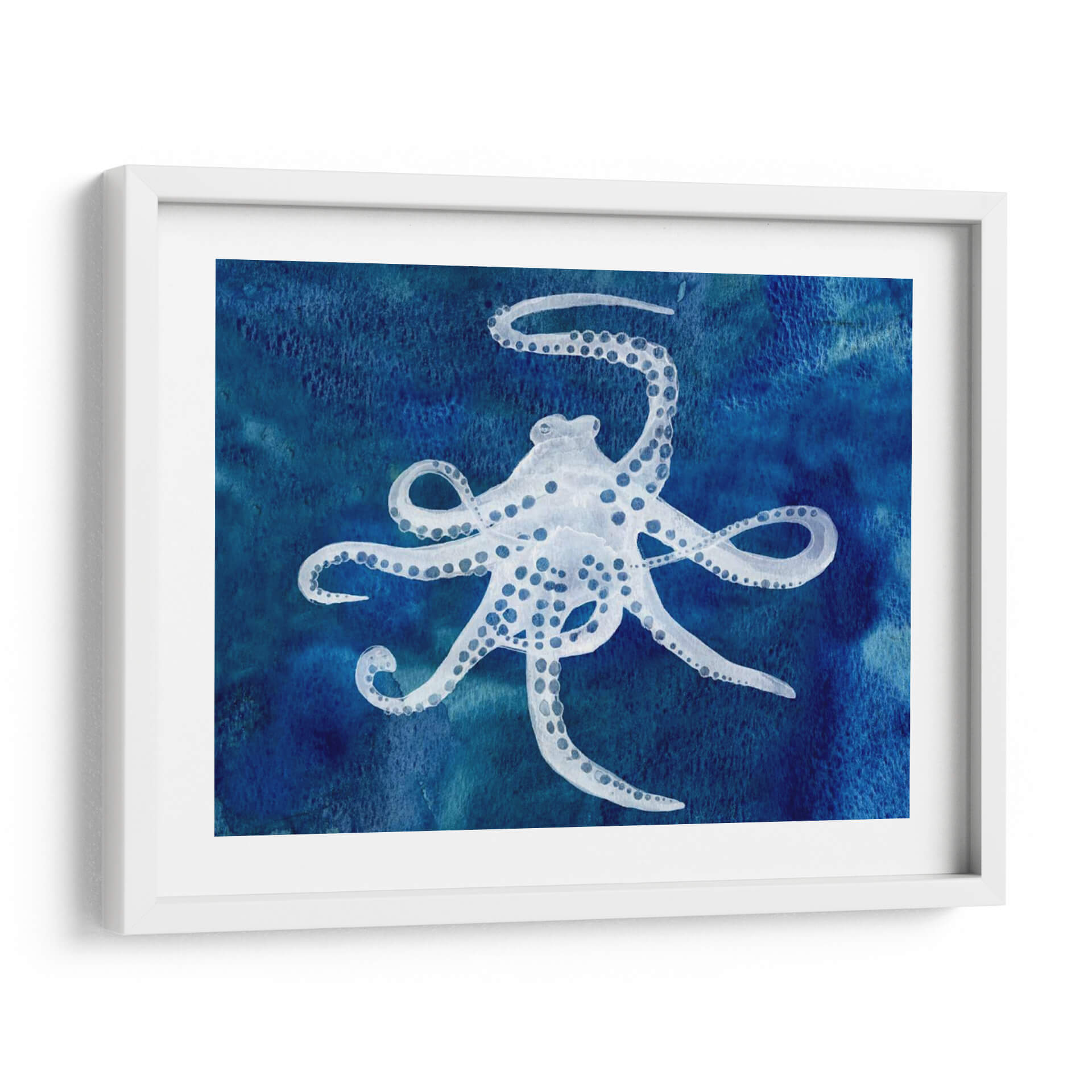 Sumérgete en las profundidades marinas con "Cefalópodo II", una cautivadora obra de arte de Alicia Ludwig que trae la serenidad del océano a tu hogar. Este cuadro decorativo presenta un delicado pulpo blanco, representado con trazos fluidos y etéreos, que parece flotar con gracia sobre un vibrante y texturizado fondo azul. La paleta de colores, dominada por intensos tonos de azul que evocan la inmensidad del mar, crea una atmósfera de calma y misterio. La composición, centrada en la figura del cefalópodo con sus tentáculos desplegados en un movimiento sugerente, captura la fascinación por estas criaturas marinas. Ideal para salas de estar, dormitorios o estudios, esta pieza aportará un toque de elegancia natural y un soplo de aire fresco a cualquier decoración. "Cefalópodo II" es más que un simple cuadro; es una invitación a la contemplación y una conexión con la vida marina, diseñada para realzar espacios que buscan transmitir tranquilidad y sofisticación. Descubre la belleza del arte contemporáneo con esta pieza única.