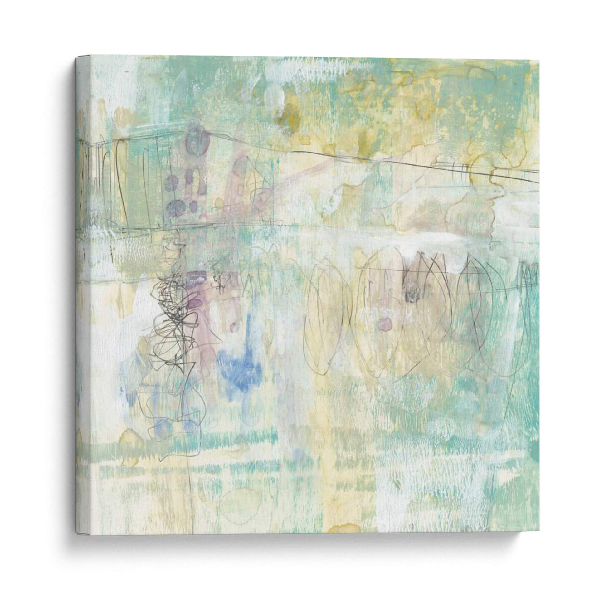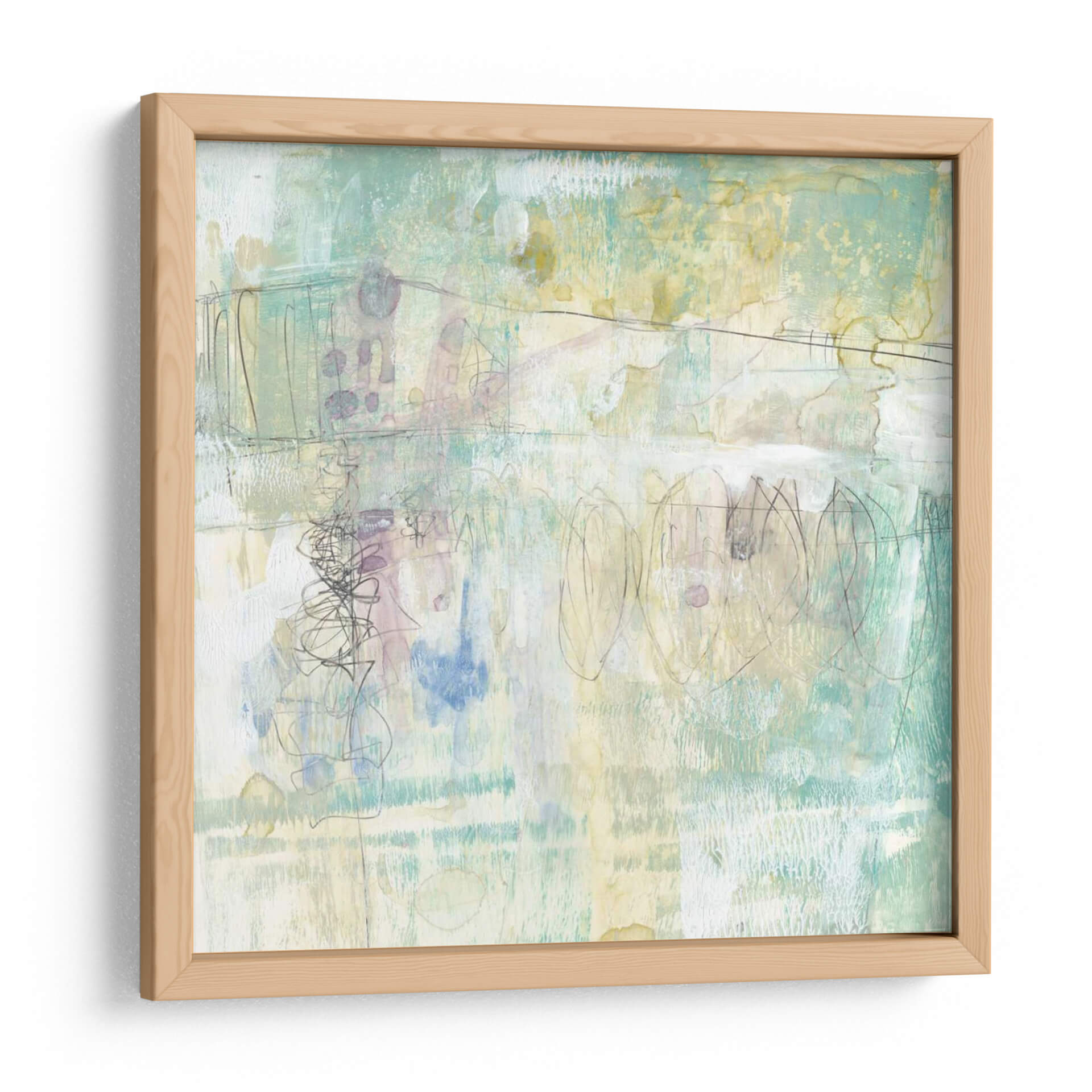 Sumérgete en la serenidad etérea de "Cocina Hip Iv", una obra abstracta contemporánea de Jennifer Goldberger. Esta pieza cautiva con su delicada paleta de colores, donde suaves tonos aguamarina se entrelazan con cálidos amarillos pálidos y toques de lavanda y azul vibrante, creando una atmósfera de tranquilidad y reflexión. La composición se caracteriza por capas sutiles de textura y líneas gestuales que sugieren movimiento y profundidad, evocando la sensación de un paisaje soñado o un pensamiento efímero. Los trazos de lápiz y las pinceladas expresivas invitan a una contemplación pausada, ofreciendo un respiro visual en cualquier espacio. "Cocina Hip Iv" es ideal para añadir un toque de sofisticación sutil y calma a tu sala de estar, dormitorio o estudio. Este cuadro decorativo abstracto se adapta perfectamente a interiores modernos y minimalistas, así como a espacios que buscan un acento de color suave y orgánico. Transforma tu hogar u oficina en un santuario de paz y estilo con esta pieza única que inspira serenidad y estimula la imaginación, siendo una adición versátil y elegante a tu colección de arte de pared.