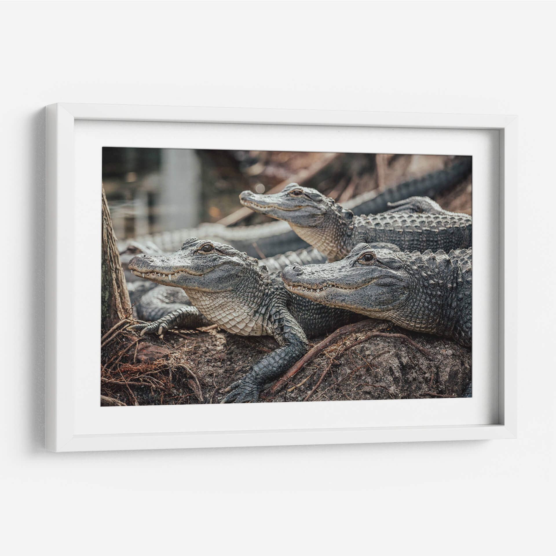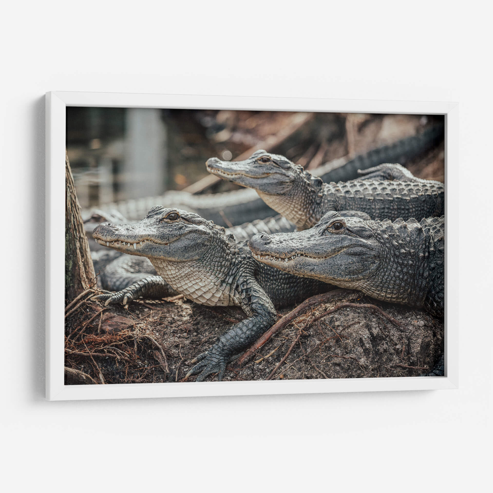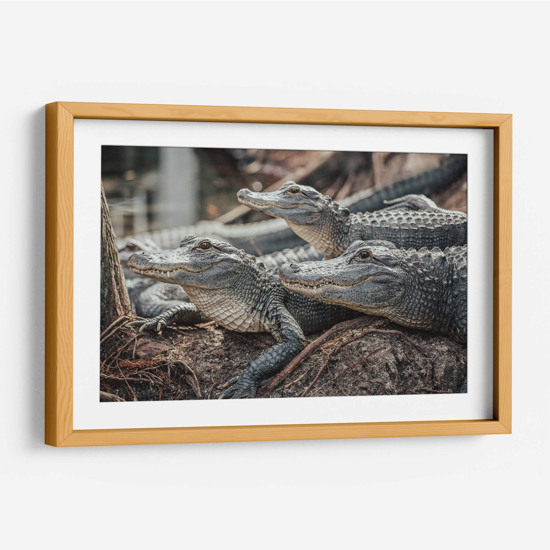 Captura la fuerza y el misterio de la naturaleza con este impresionante lienzo "Cocodrilos al Acecho". La obra presenta un primer plano íntimo de tres caimanes o cocodrilos, cuyas escamas detalladas y miradas penetrantes evocan una sensación de poder ancestral. La paleta de colores se centra en tonos tierra, grises profundos y verdes apagados, creando una atmósfera sombría y realista que transporta al espectador directamente a su hábitat natural. La composición, con los reptiles posicionados en diferentes planos y ángulos, añade profundidad y dinamismo, invitando a una contemplación pausada de su majestuosidad. Este arte de pared es perfecto para quienes buscan añadir un toque salvaje y sofisticado a su hogar u oficina, ideal para salas de estar modernas, estudios o incluso espacios de inspiración en entornos empresariales. Su realismo detallado y la presencia imponente de estos animales lo convierten en una pieza de conversación única, capaz de infundir carácter y una conexión con el reino animal en cualquier decoración.