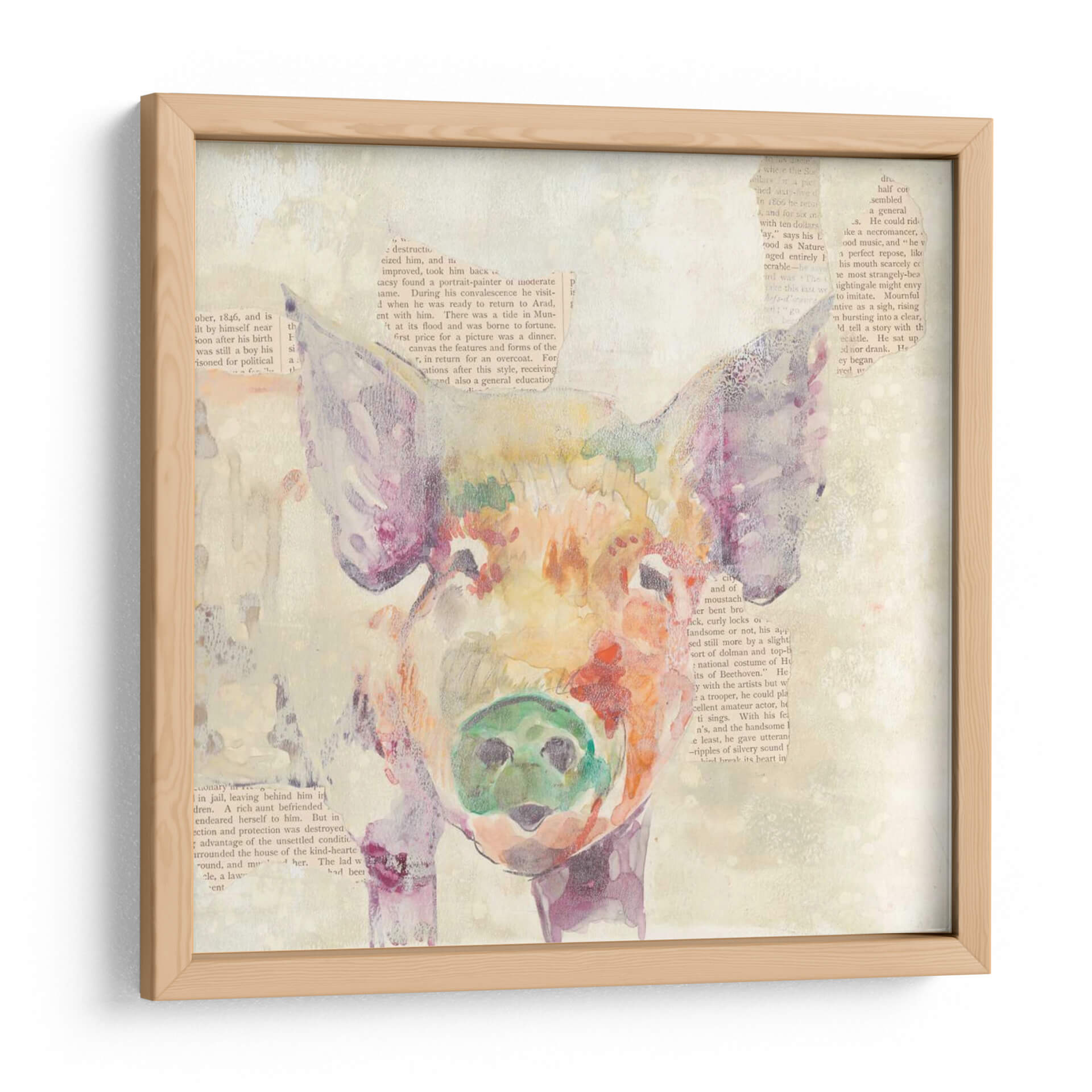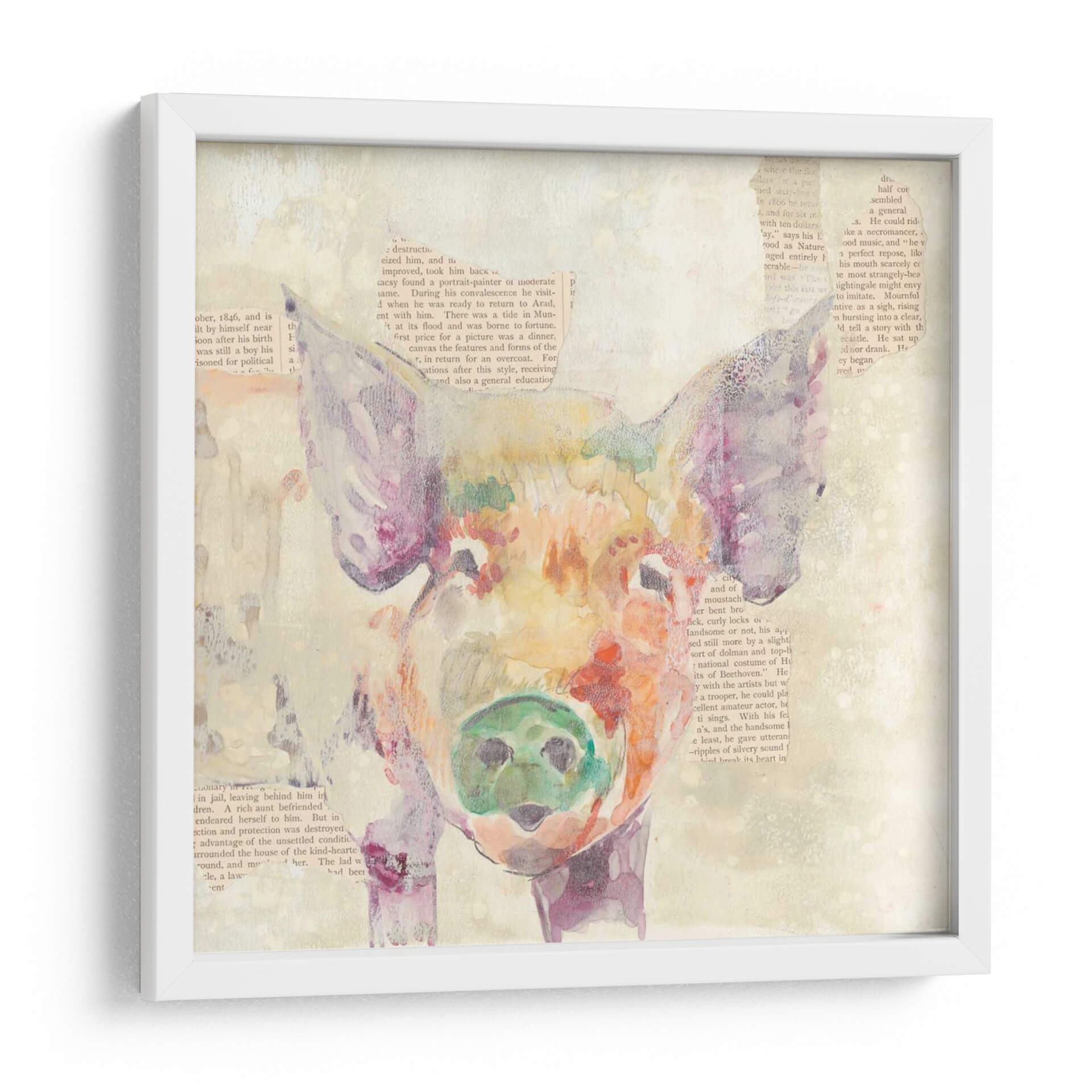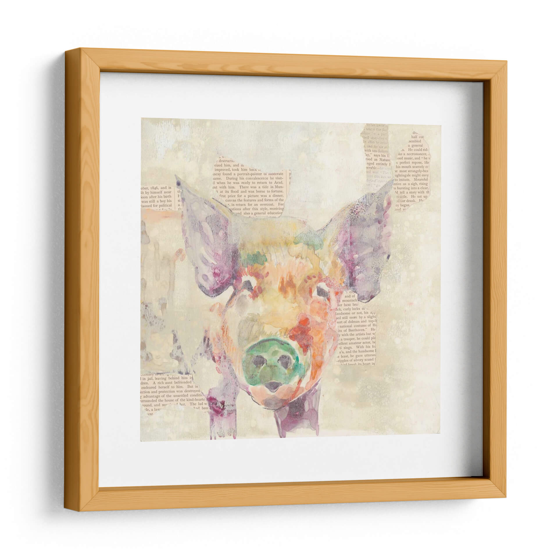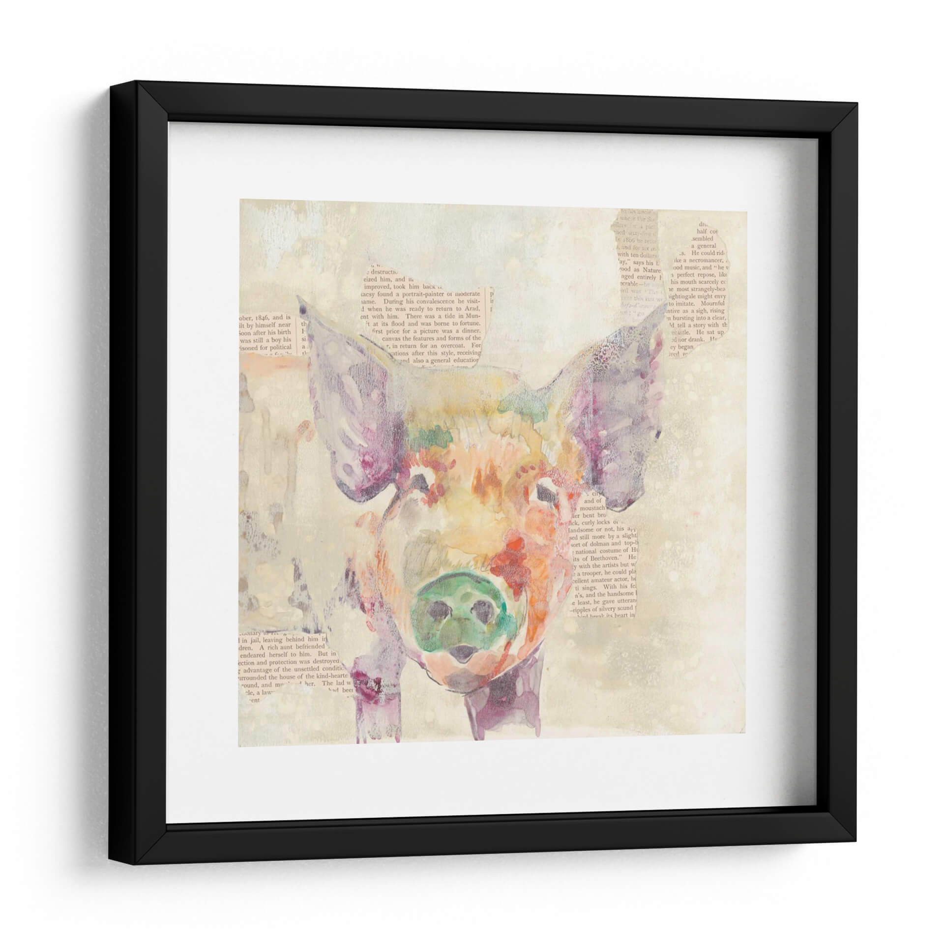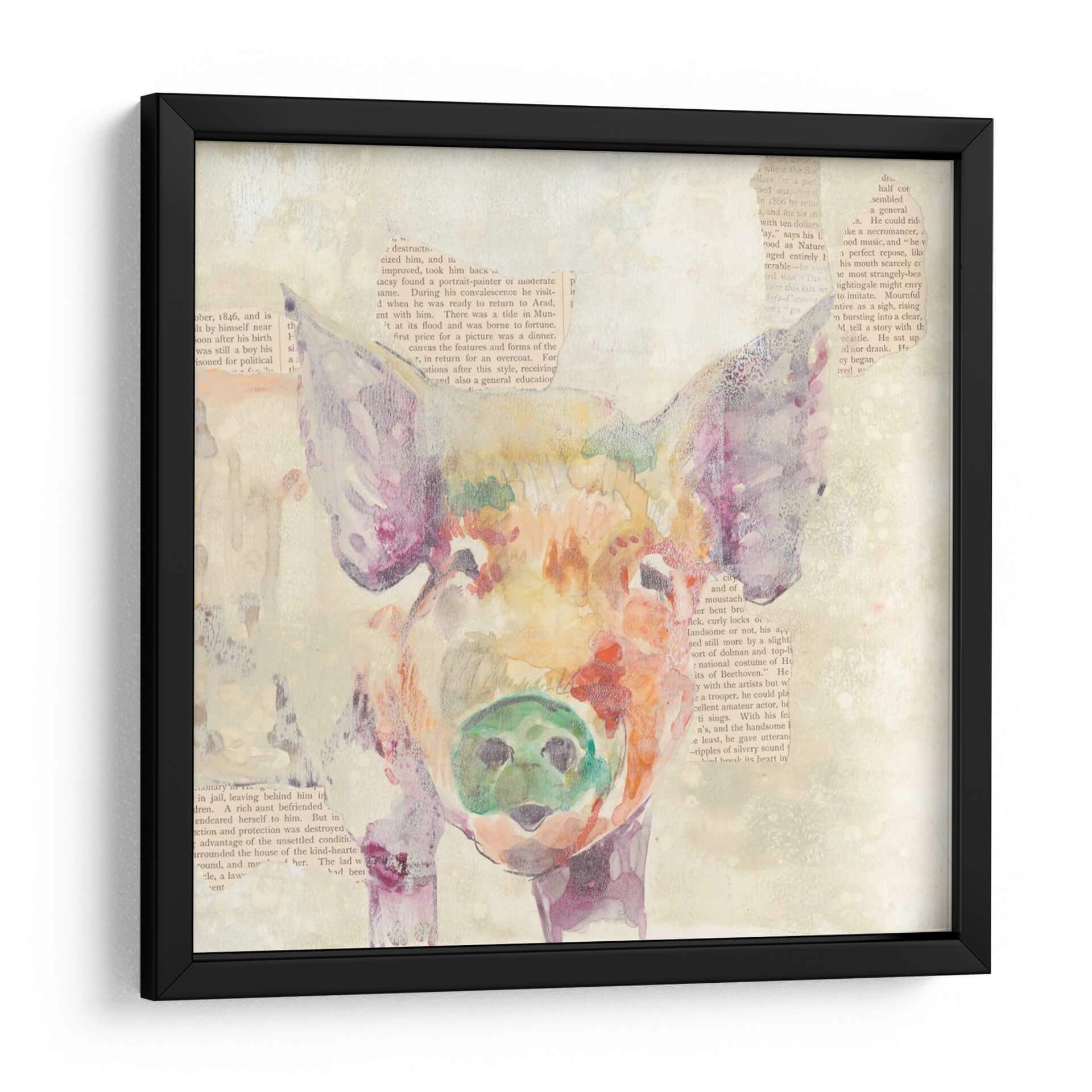 Sumérgete en la peculiaridad y el encanto de "Collage Farm Iii", una obra de arte digital que fusiona la técnica de collage con una expresiva acuarela para dar vida a un cerdo vibrante. El artista Jennifer Goldberger ha creado una pieza que, si bien centra su atención en este animal de granja, trasciende la simple representación para ofrecer una experiencia visual rica y texturizada. El fondo, compuesto por fragmentos de texto de libros antiguos, añade una capa de profundidad histórica y literaria, contrastando maravillosamente con la audacia de los trazos y la paleta de colores que va desde suaves tonos tierra hasta toques vibrantes de púrpura, verde y naranja. El hocico del cerdo, en particular, es un punto focal cautivador con su tono verde esmeralda que aporta un toque de originalidad y frescura. Esta obra es perfecta para aquellos que buscan añadir un elemento de sorpresa y carácter a su decoración, ya sea en una cocina rústica, un comedor moderno o incluso un estudio creativo. "Collage Farm Iii" no es solo un cuadro decorativo, es una conversación visual que inspira alegría y originalidad, convirtiéndose en el punto focal ideal para cualquier espacio que necesite un toque de arte contemporáneo y con personalidad.