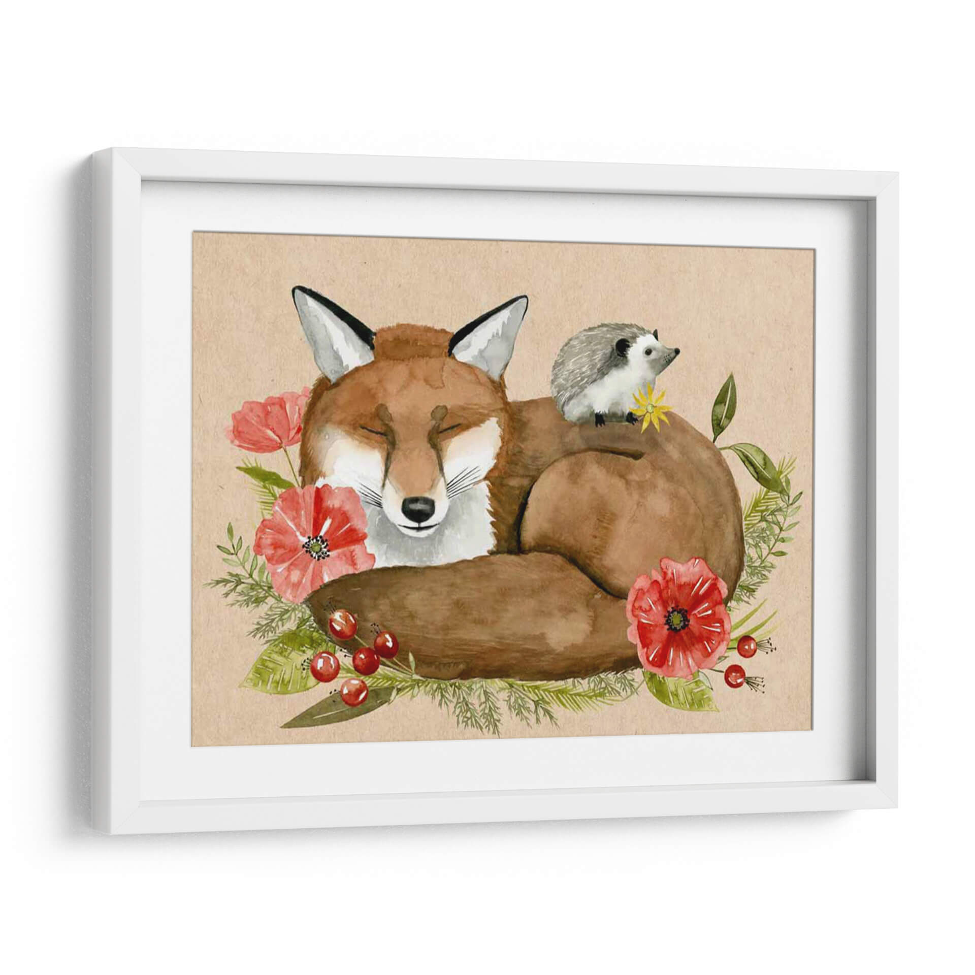 Sumérgete en la ternura y serenidad de "Corazón Agradecido I", una obra de arte digital de Grace Popp que captura la esencia de la amistad y la tranquilidad en la naturaleza. Esta pieza presenta un zorro dormido, acurrucado entre delicadas flores rojas y follaje verde, con un pequeño erizo posado en su lomo, irradiando paz y conexión. La paleta de colores, dominada por tonos tierra cálidos del zorro y el fondo, contrastados con vibrantes toques de rojo de las amapolas y el verde de las hojas, crea una atmósfera acogedora y reconfortante. El estilo acuarela, con sus pinceladas suaves y transiciones de color fluidas, añade una cualidad etérea y soñadora a la composición. "Corazón Agradecido I" es más que una simple decoración de pared; es una invitación a la calma, perfecta para añadir un toque de dulzura a dormitorios infantiles, salas de estar acogedoras o estudios que buscan un respiro visual. Su temática de inocencia y compañerismo lo convierte en un regalo ideal y una adición entrañable a cualquier hogar que aprecie el arte con alma. Descubre cómo este cuadro decorativo puede transformar tu espacio en un santuario de paz y armonía.