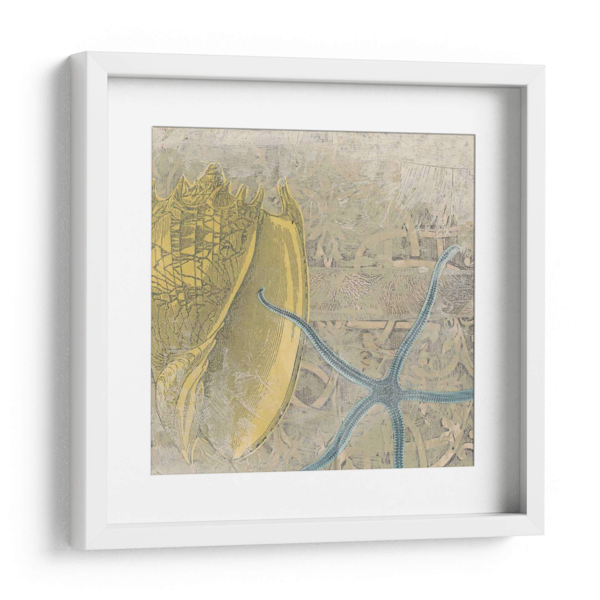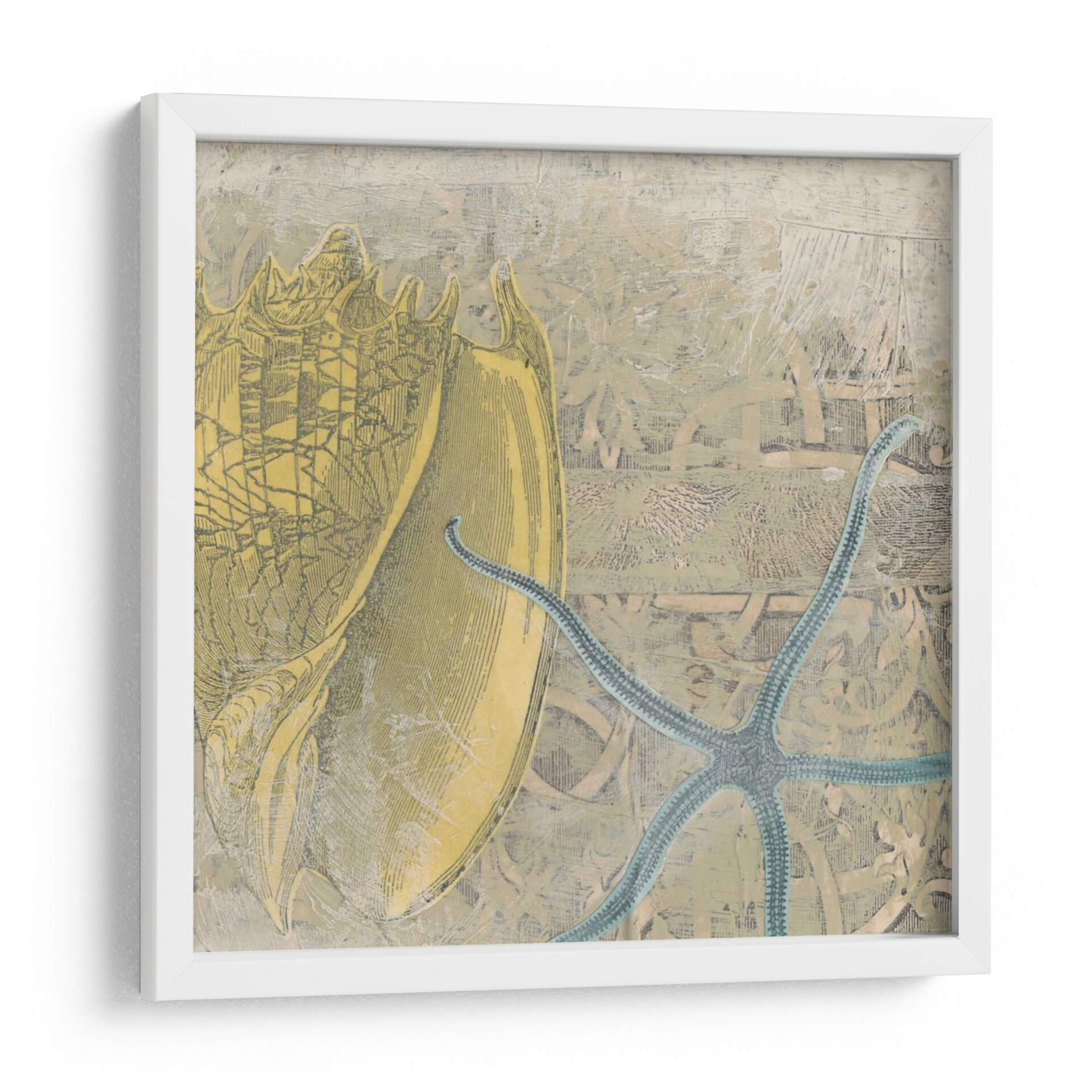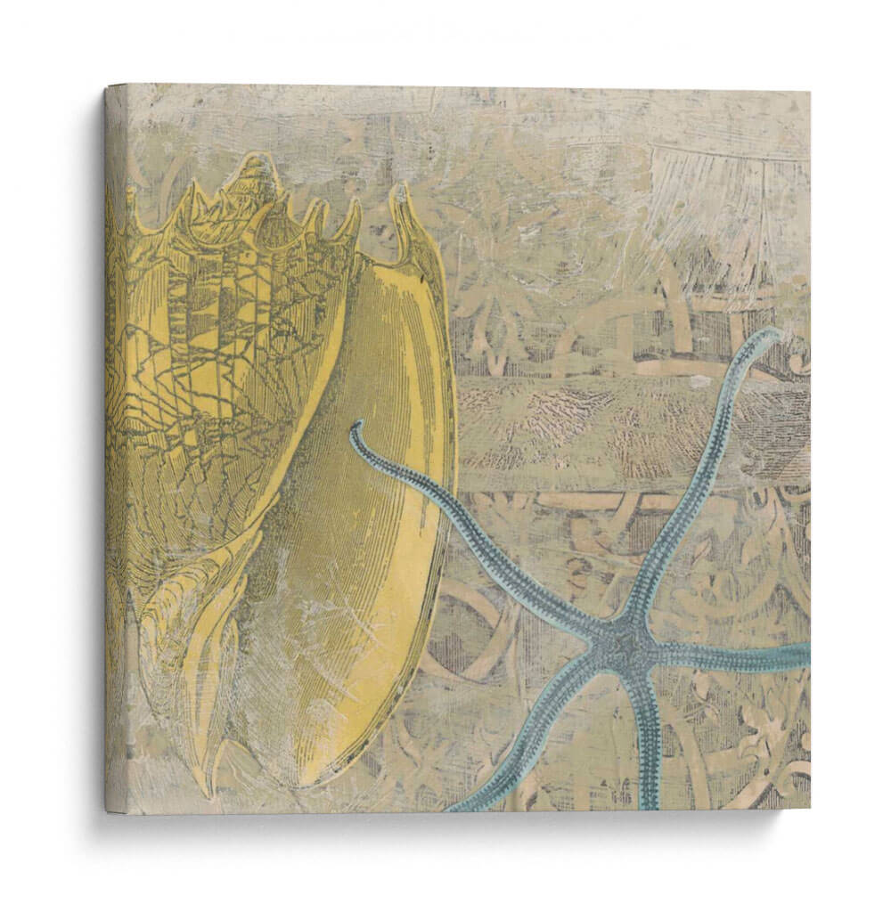 Sumérgete en la serenidad del océano con "Costa De Camafeo VII", una obra de arte que captura la delicadeza y la majestuosidad de la vida marina. Esta pieza, creada por la talentosa June Erica Vess, presenta un detallado grabado de una caracola en tonos dorados y ocres, destacando su intrincada forma y textura. A su lado, una estrella de mar azul turquesa se despliega con elegancia, añadiendo un toque de color vibrante y contraste. El fondo, con su acabado texturizado y sutiles grabados, evoca la sensación de un antiguo mapa o un cuaderno de naturalista, aportando una atmósfera de descubrimiento y nostalgia. La composición equilibrada y la paleta de colores terrosos y marinos crean una sensación de calma y conexión con la naturaleza, perfecta para transformar cualquier espacio en un refugio tranquilo. Este cuadro decorativo es ideal para salas de estar, dormitorios o estudios que busquen un elemento inspirador y lleno de carácter. Añade un toque de elegancia costera a tu hogar con esta pieza única que invita a la contemplación y al ensueño.