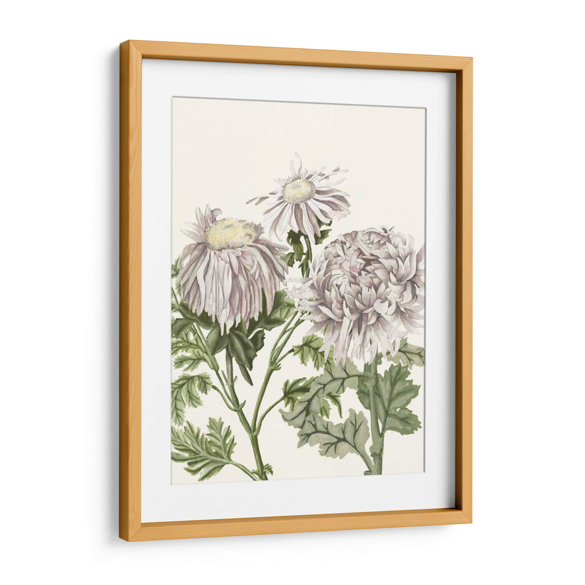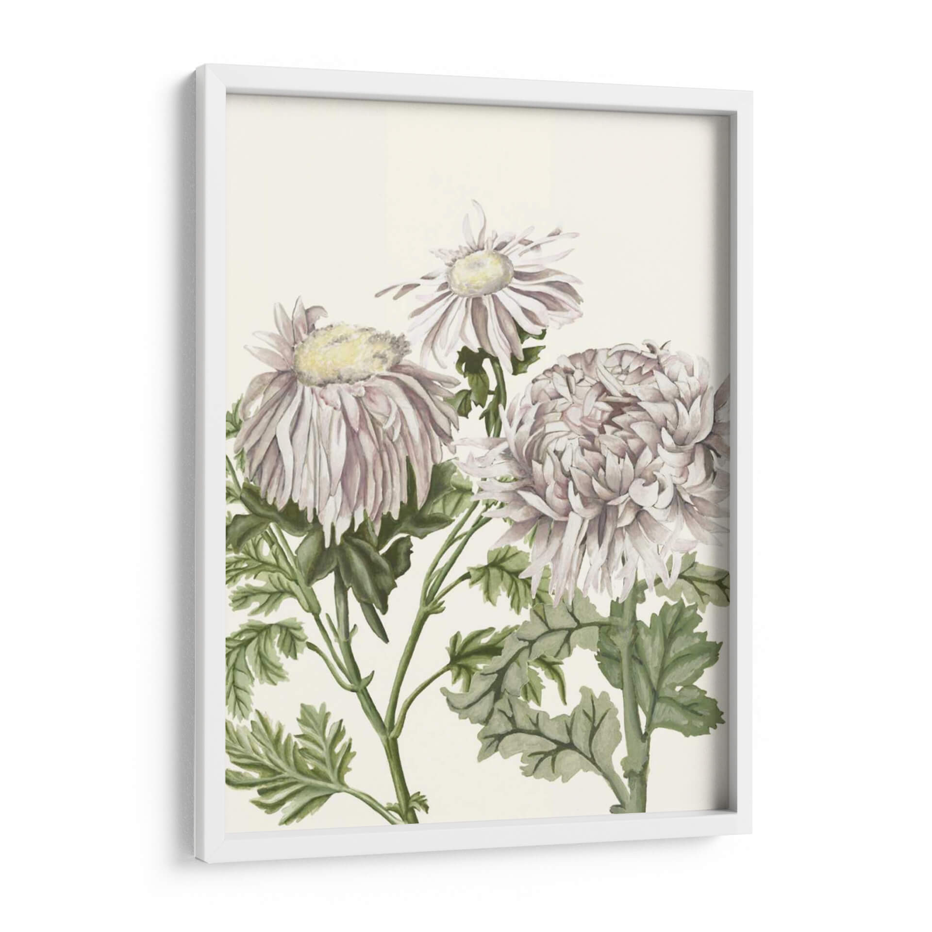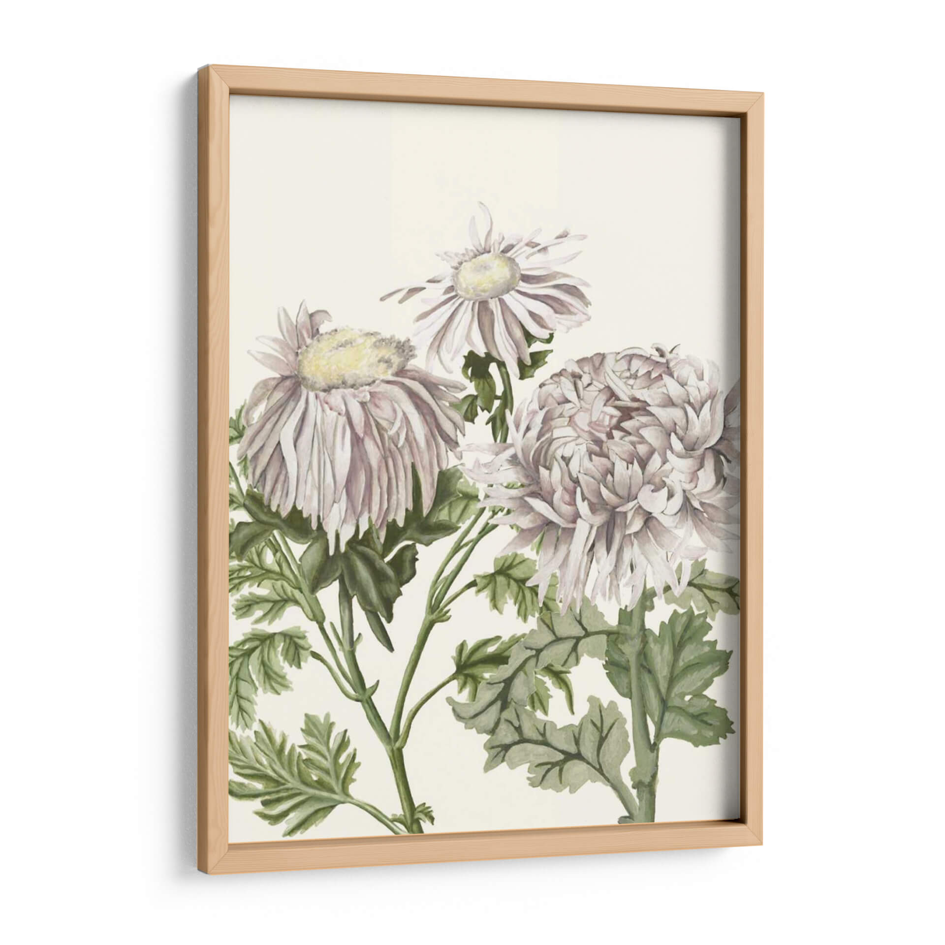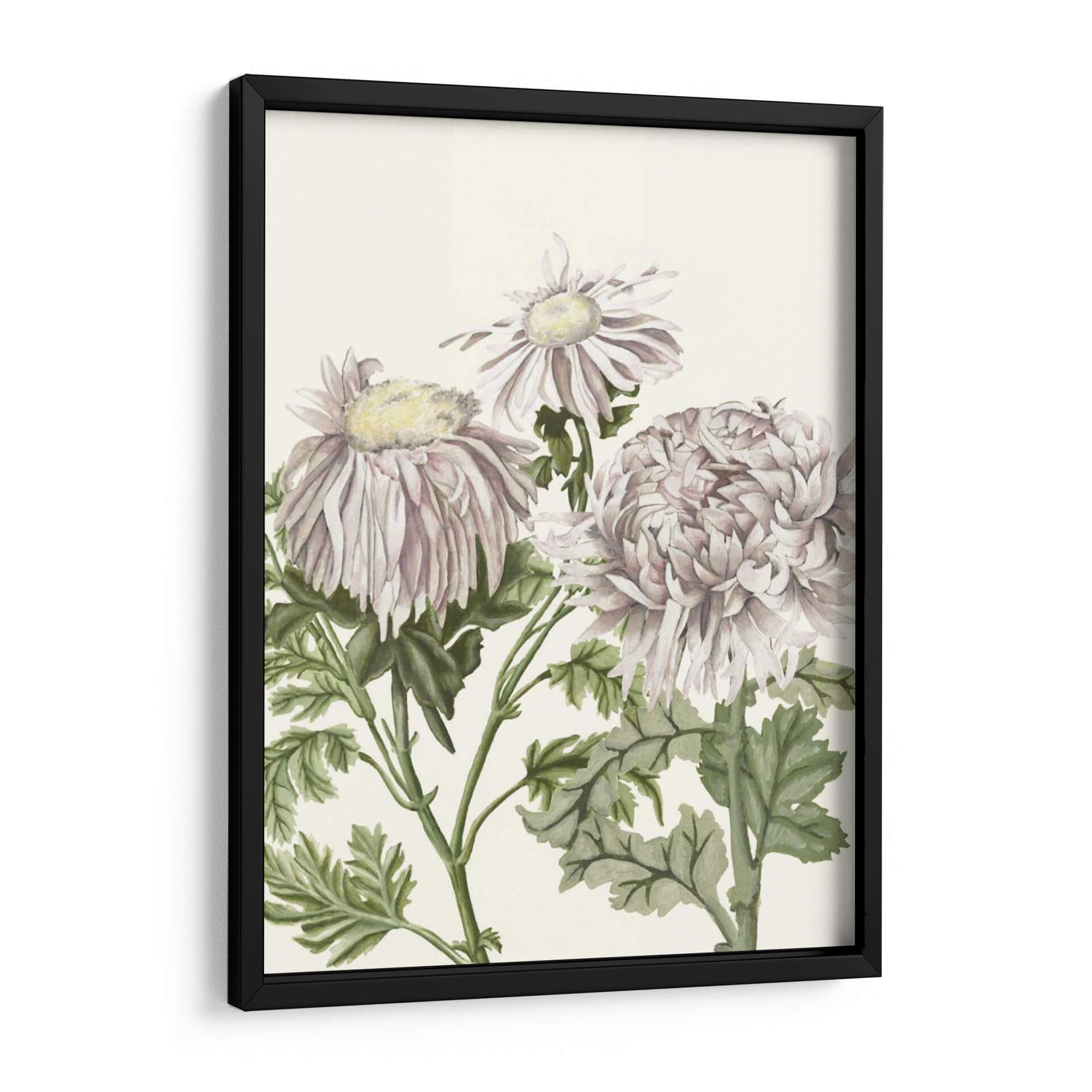 Embellece tu espacio con la delicadeza atemporal de "Crisantemos de Primavera Temprano I", una obra maestra de Naomi McCavitt. Este cuadro decorativo captura la esencia etérea de los crisantemos en plena floración, con pétalos que despliegan una paleta de suaves tonos lila y toques de amarillo pálido en sus centros. La técnica de acuarela aporta una ligereza y transparencia únicas, permitiendo que la luz juegue sutilmente sobre cada forma floral. Las hojas de un verde profundo y texturizado añaden contraste y vitalidad a la composición, anclando las flores en un entorno natural. La atmósfera general es de serenidad y elegancia, ideal para crear un rincón de calma en tu hogar o añadir un toque de sofisticación natural a tu oficina. Este lienzo es perfecto para quienes buscan un arte floral que inspire paz y belleza, funcionando como un punto focal suave pero cautivador en decoraciones de estilo nórdico, clásico o contemporáneo. Deja que la belleza efímera de la primavera decore tus paredes todo el año con esta pieza excepcional.