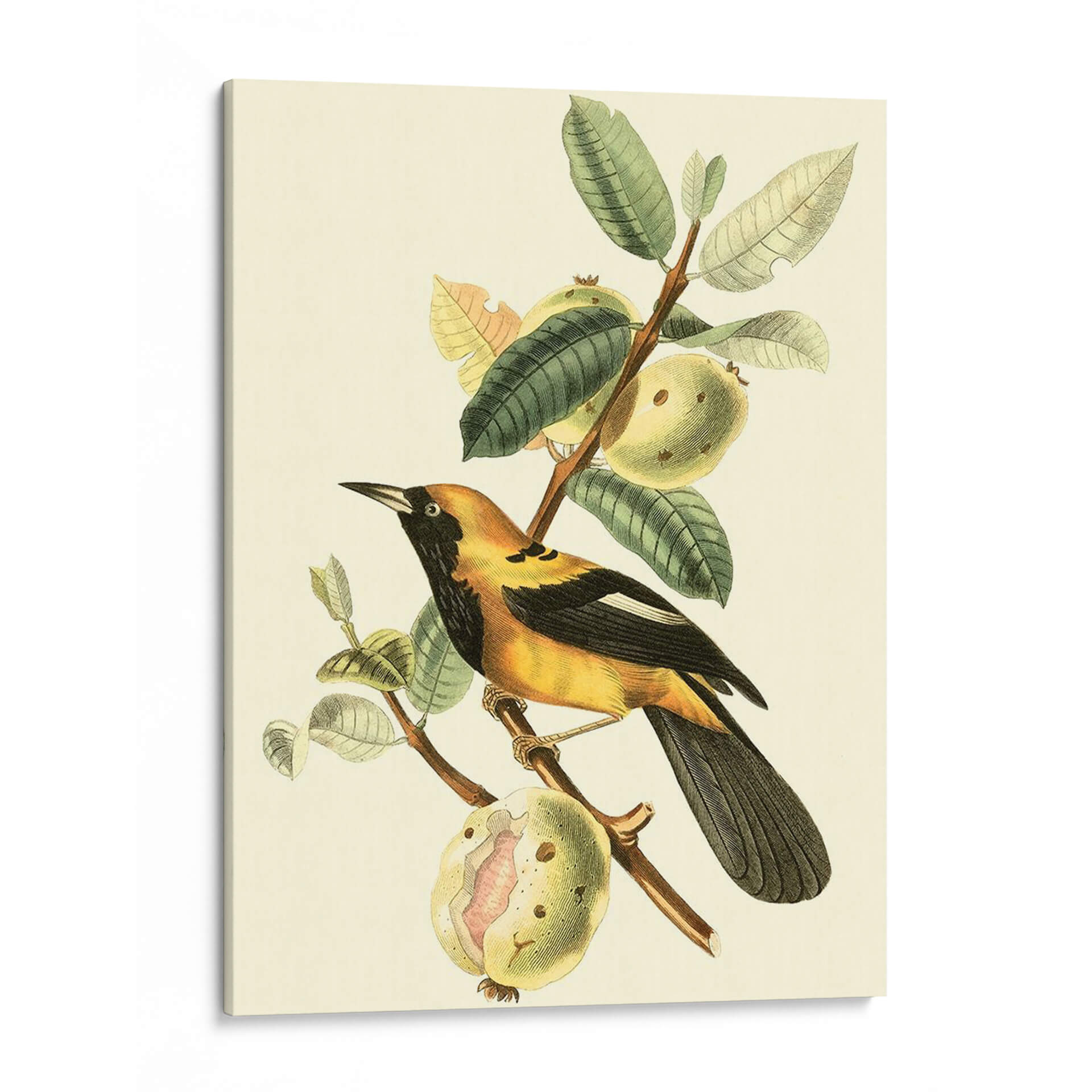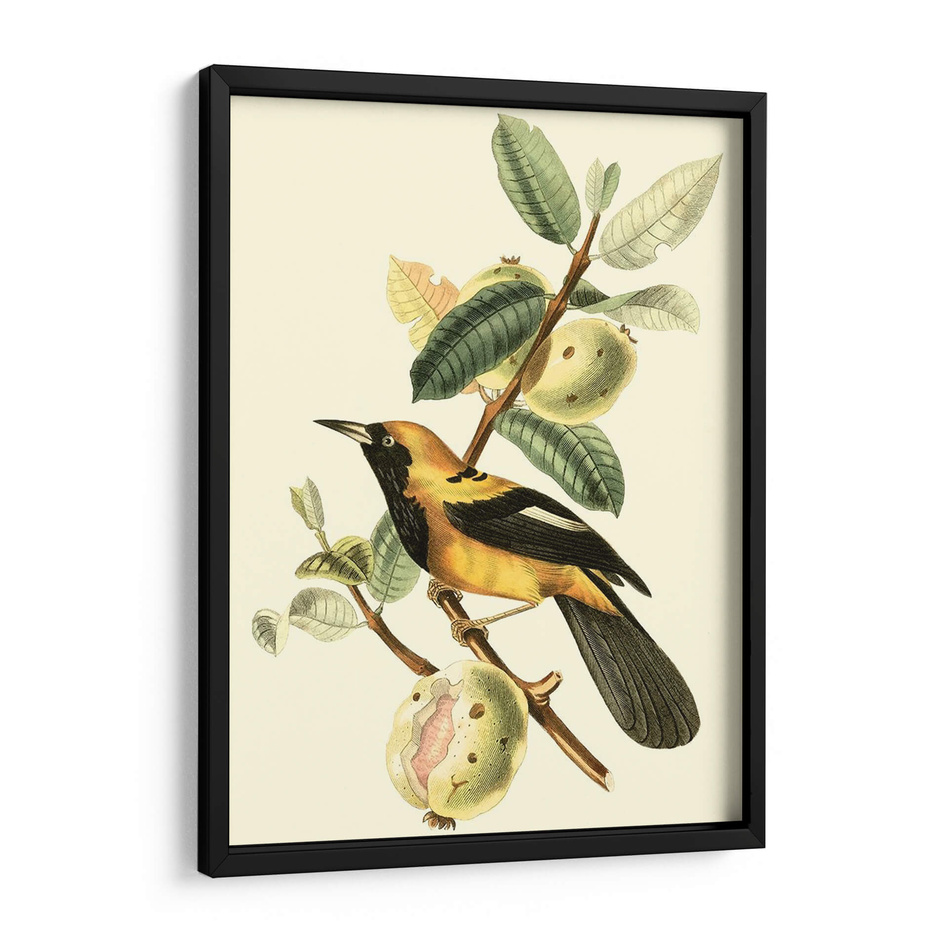 Embellece tu espacio con "Cuvier Exotic Birds II", una obra de arte exquisita del artista Becky Davis. Este cuadro decorativo captura la majestuosidad de un pájaro exótico posado en una rama frutal, con un detalle meticuloso y una paleta de colores que evoca la serenidad de la naturaleza. La delicadeza de las ilustraciones botánicas se combina con la vibrante presencia del ave, creando una pieza que aporta sofisticación y un toque de vida salvaje a cualquier ambiente. Los tonos amarillos, negros y verdes, sobre un fondo suavemente cremoso, ofrecen una armonía visual perfecta para salones, dormitorios u oficinas que buscan un acento elegante y con carácter. Ideal para quienes aprecian el arte clásico con una perspectiva contemporánea, esta pieza invita a la contemplación y añade un aire de refinamiento natural. Integra esta obra maestra en tu decoración para transformar tu hogar en un santuario de estilo y calma, resonando con la belleza atemporal de la ornitología y la botánica. Una elección perfecta para añadir profundidad y un punto de interés visual que perdurará.