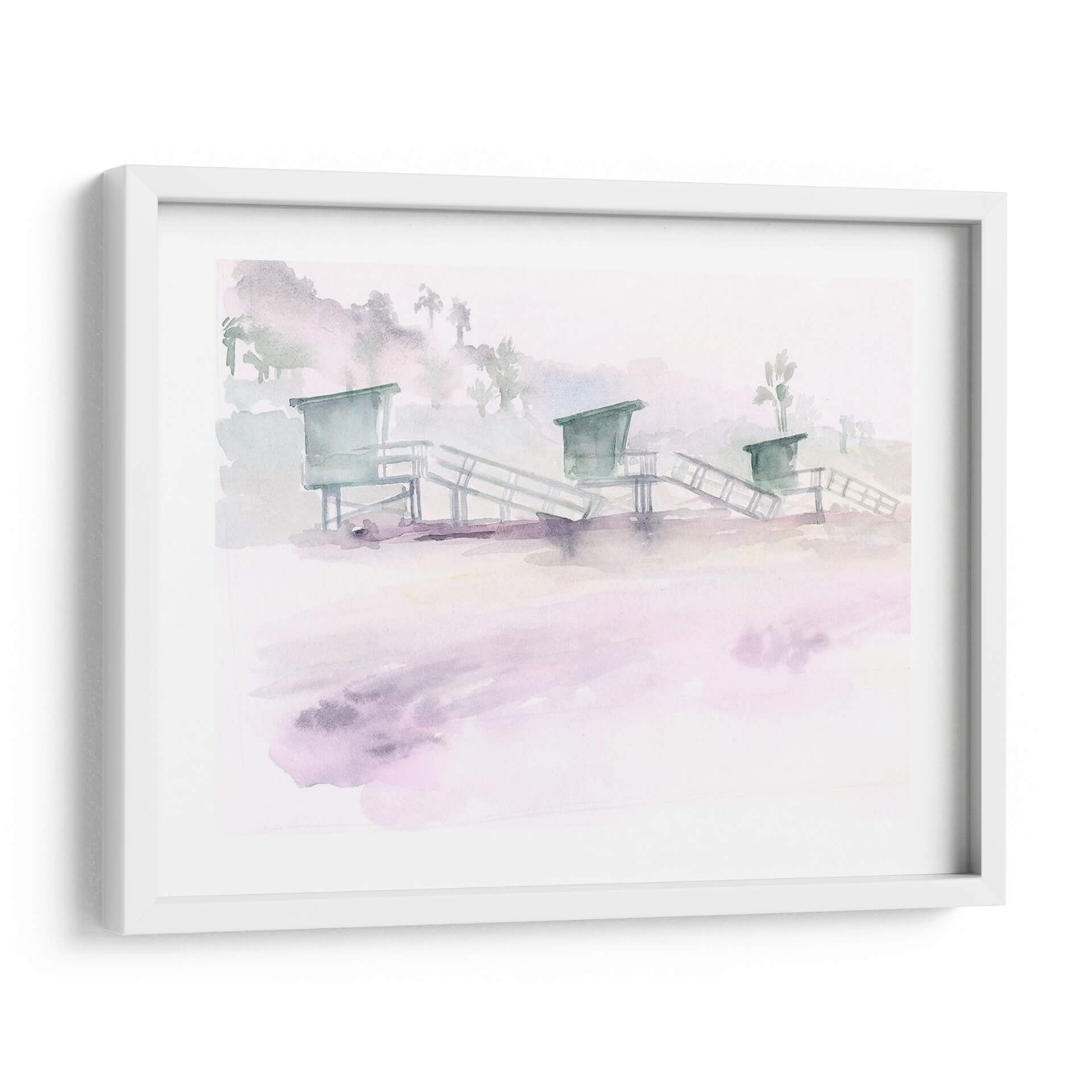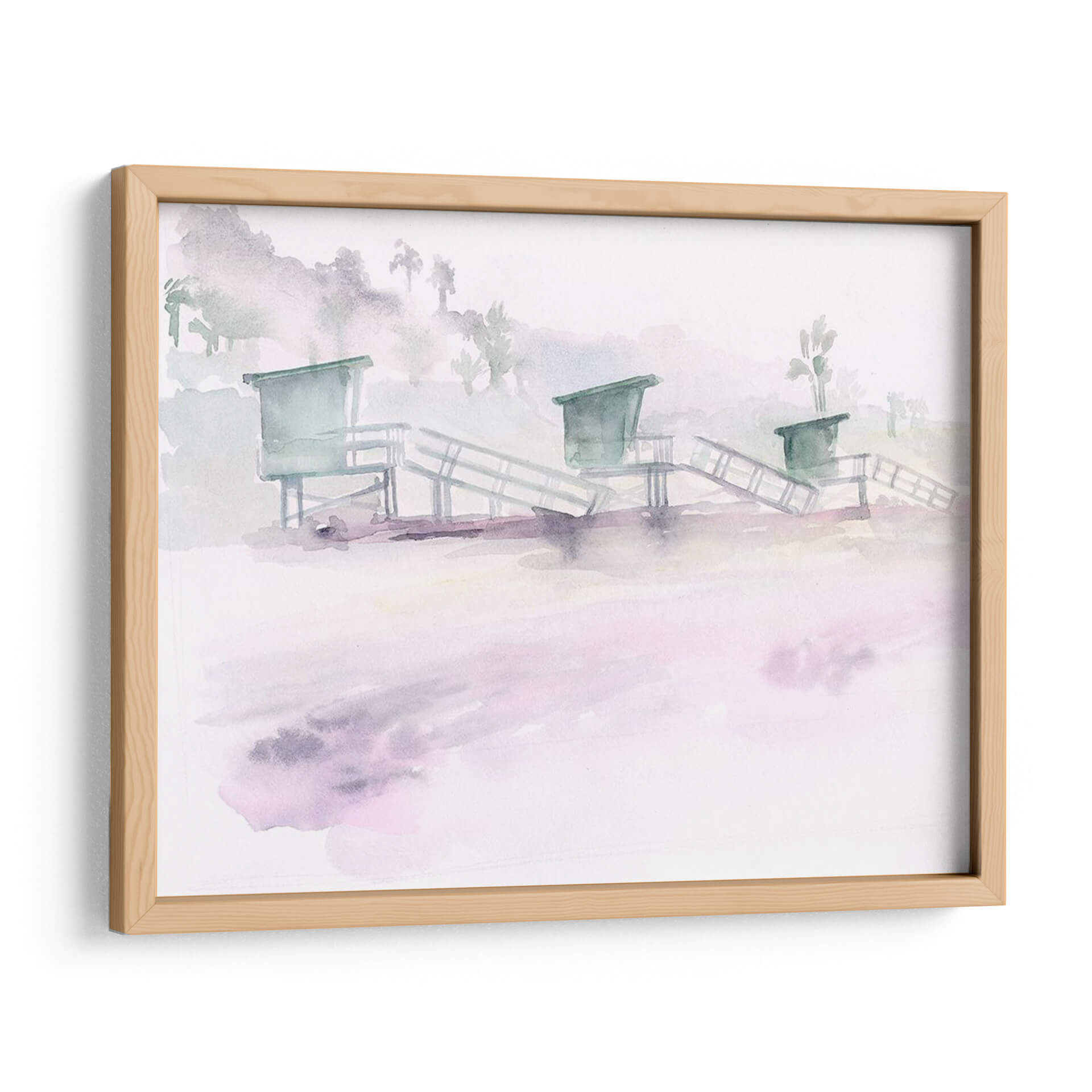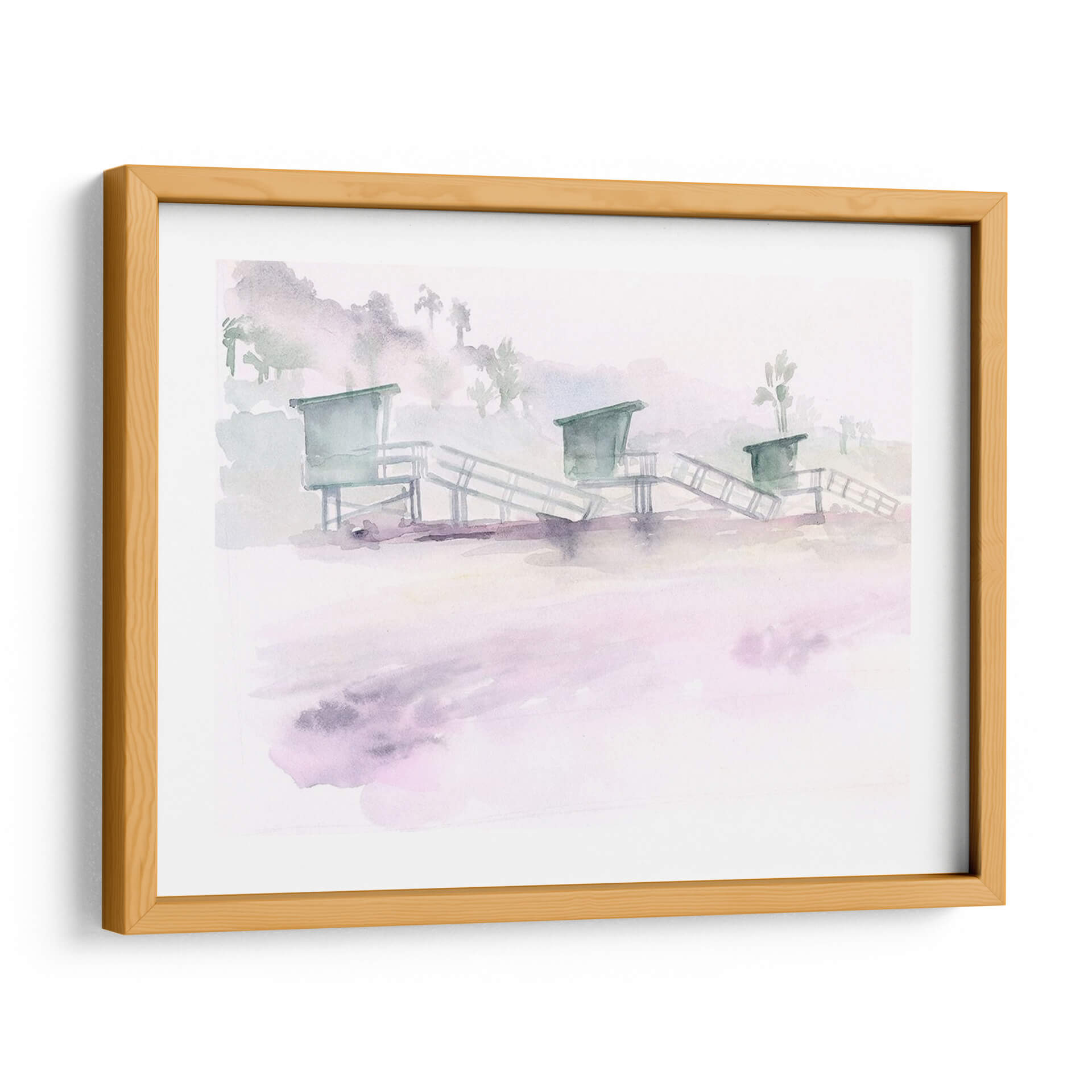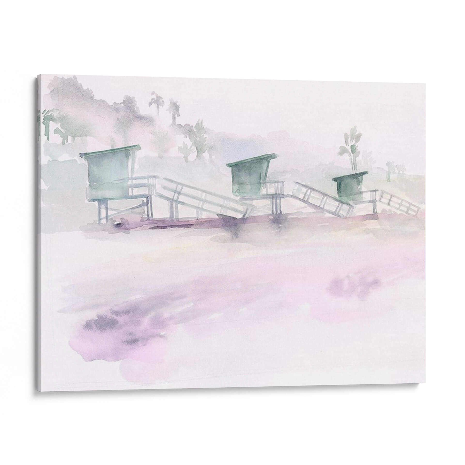 Sumérgete en la serenidad del amanecer con "Dawn Beach Break II", una obra de arte de Jennifer Paxton Parker que captura la delicadeza de la costa al inicio del día. Esta pieza evoca una atmósfera de paz y tranquilidad, con suaves pinceladas de acuarela que dan vida a la escena. Los tonos pastel, que van desde el lavanda y el rosa pálido hasta verdes y grises tenues, crean una paleta de colores etérea y soñadora. Las estructuras de los puestos de socorrismo, representadas de forma estilizada y casi abstracta, se funden con el paisaje brumoso, sugiriendo un momento efímero y sereno. El estilo, cercano al impresionismo etéreo, invita a la contemplación y a la conexión con la naturaleza. Este cuadro decorativo es perfecto para añadir un toque de calma y sofisticación a cualquier espacio, ya sea un dormitorio, una sala de estar o un estudio. Imagina comenzar tus mañanas con la suave luz y la quietud que emana esta composición, transformando tu hogar en un refugio de paz y belleza.