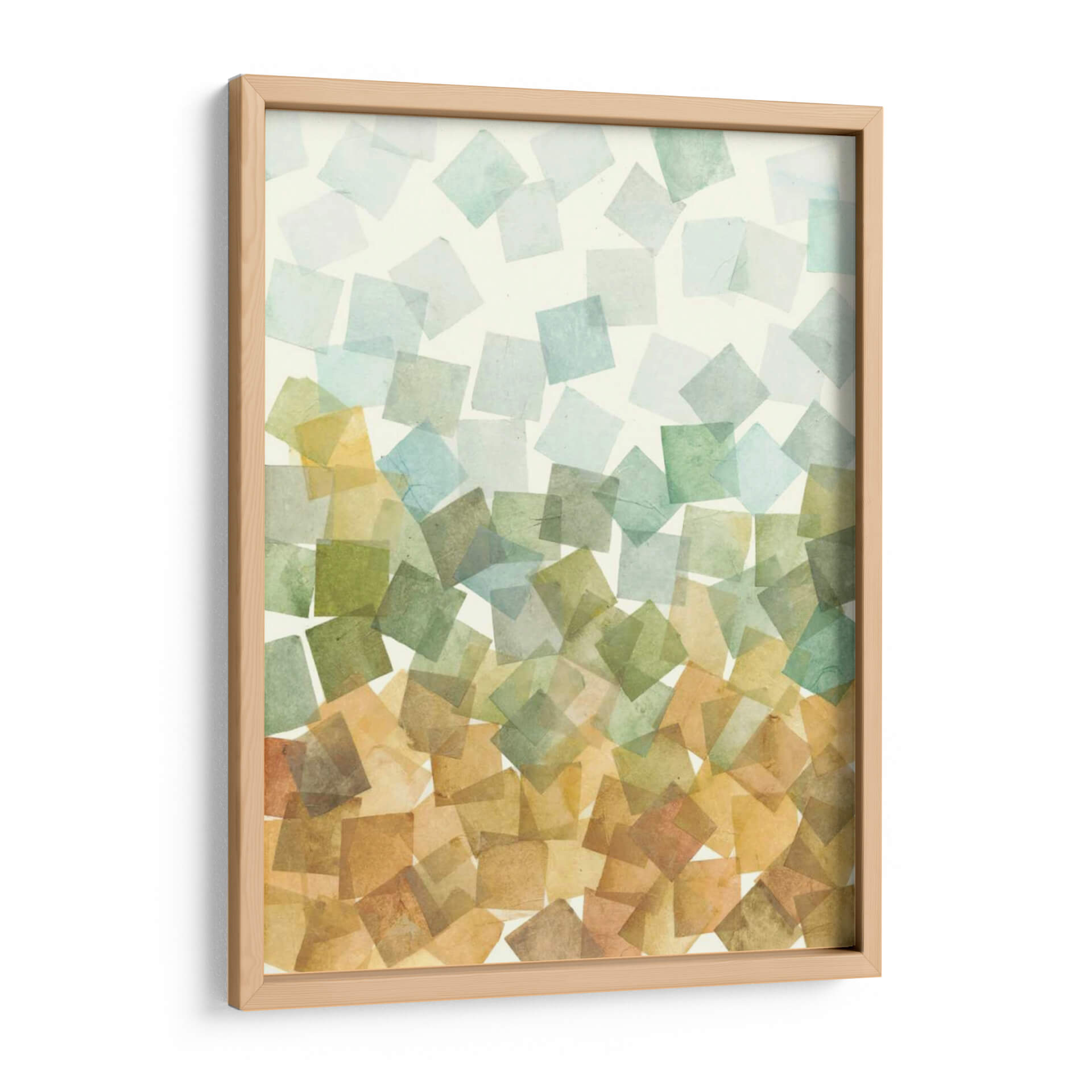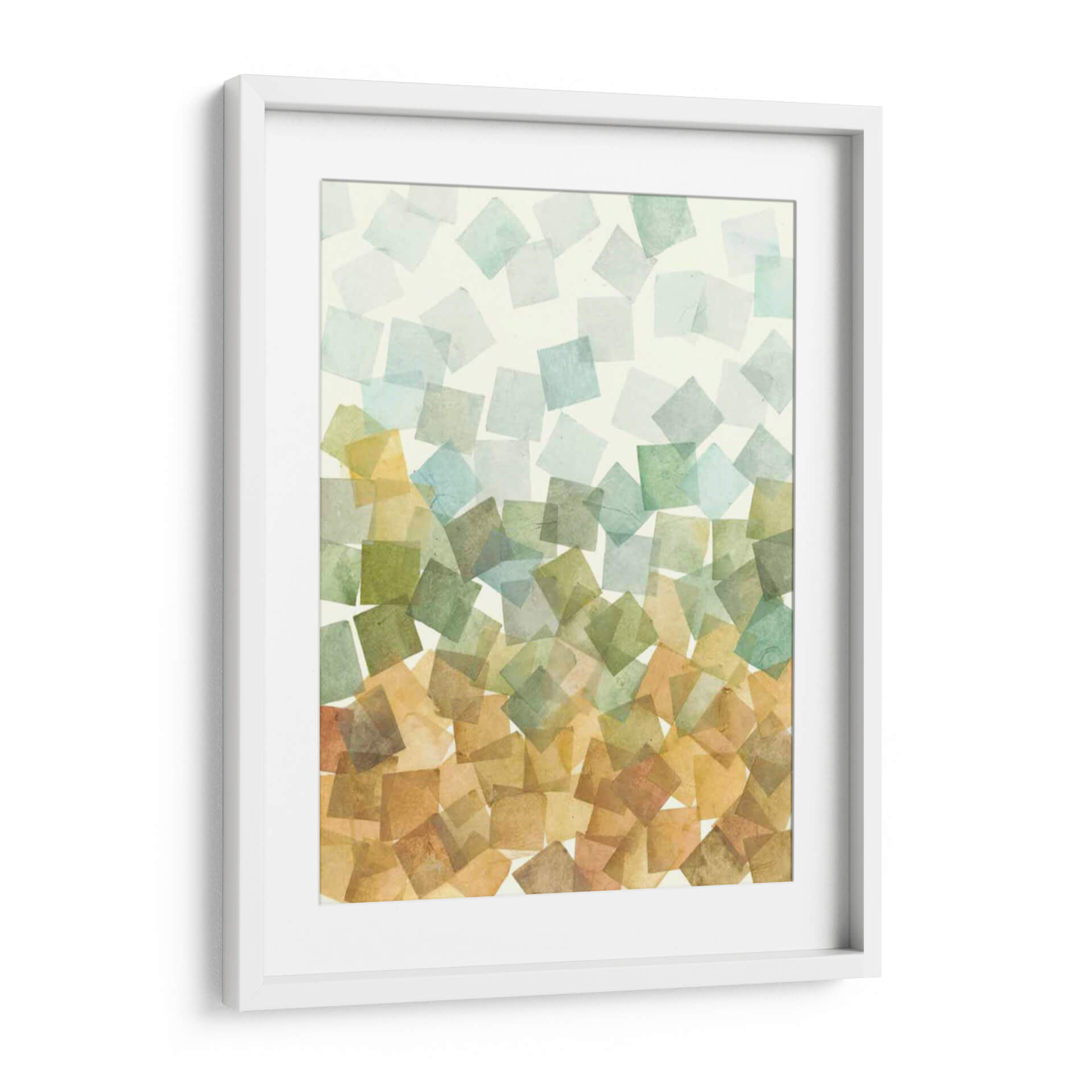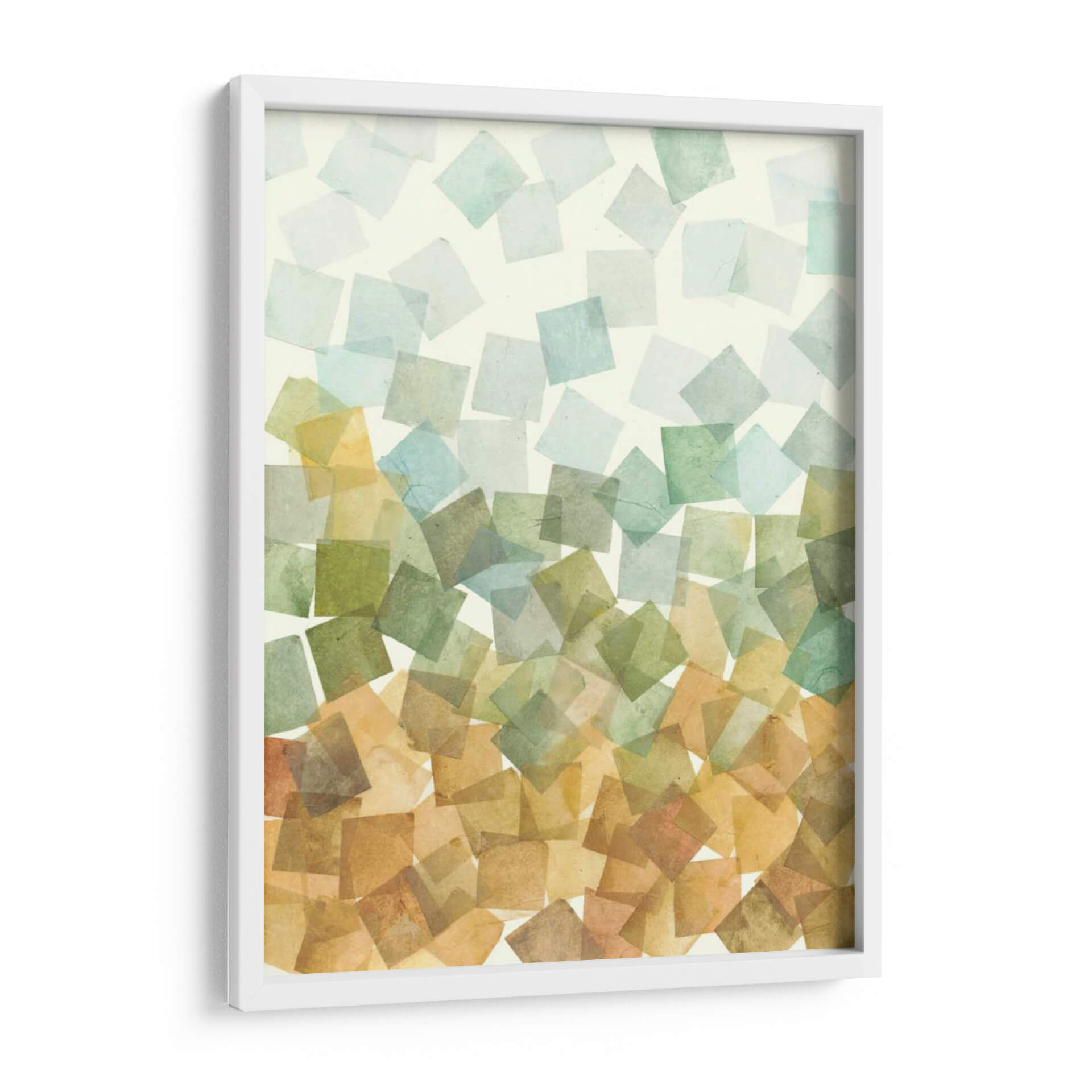 Sumérgete en la serenidad de "Deconstruido Fall I", una obra de arte contemporáneo de Megan Meagher que captura la esencia de la transición otoñal con una paleta de colores terrosos y acuáticos. Este cuadro decorativo se caracteriza por su composición abstracta, donde se superponen formas cuadradas translúcidas en tonos verdes, azules pálidos y ocres, creando una sensación de profundidad y movimiento suave. Cada cuadrado, con su textura delicada, evoca la ligereza de las hojas cayendo o la neblina matutina sobre un paisaje. La armonía de sus colores, que fluyen desde tonos cálidos en la base hasta tonalidades más frías en la parte superior, aporta una atmósfera de calma y contemplación, ideal para transformar cualquier espacio en un refugio de paz. Perfecto para salones modernos, dormitorios acogedores u oficinas que buscan un toque de sofisticación natural. "Deconstruido Fall I" no es solo una pieza decorativa, es una invitación a la reflexión y a la apreciación de la belleza efímera de la naturaleza, infundiendo a tu hogar una sensación de equilibrio y elegancia atemporal. Deja que esta obra maestra aporte una dosis de arte contemporáneo y serenidad a tu decoración.