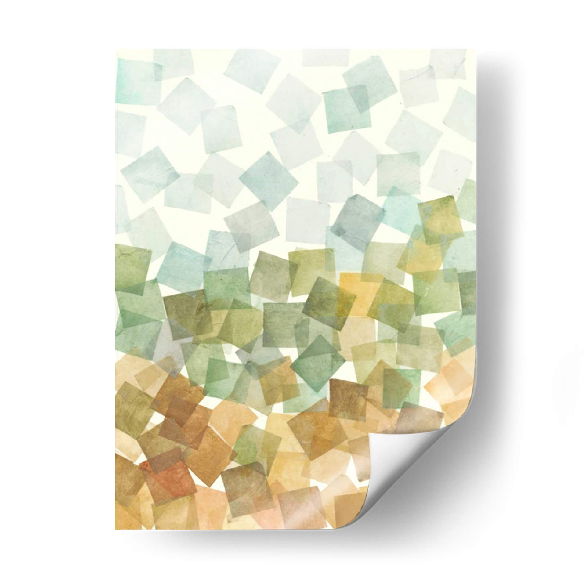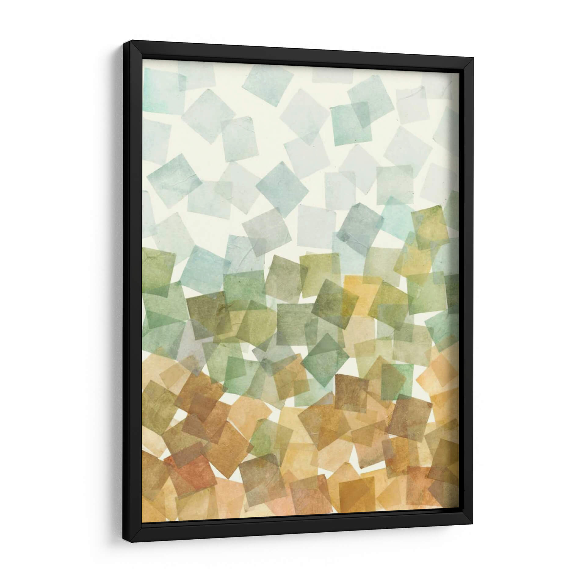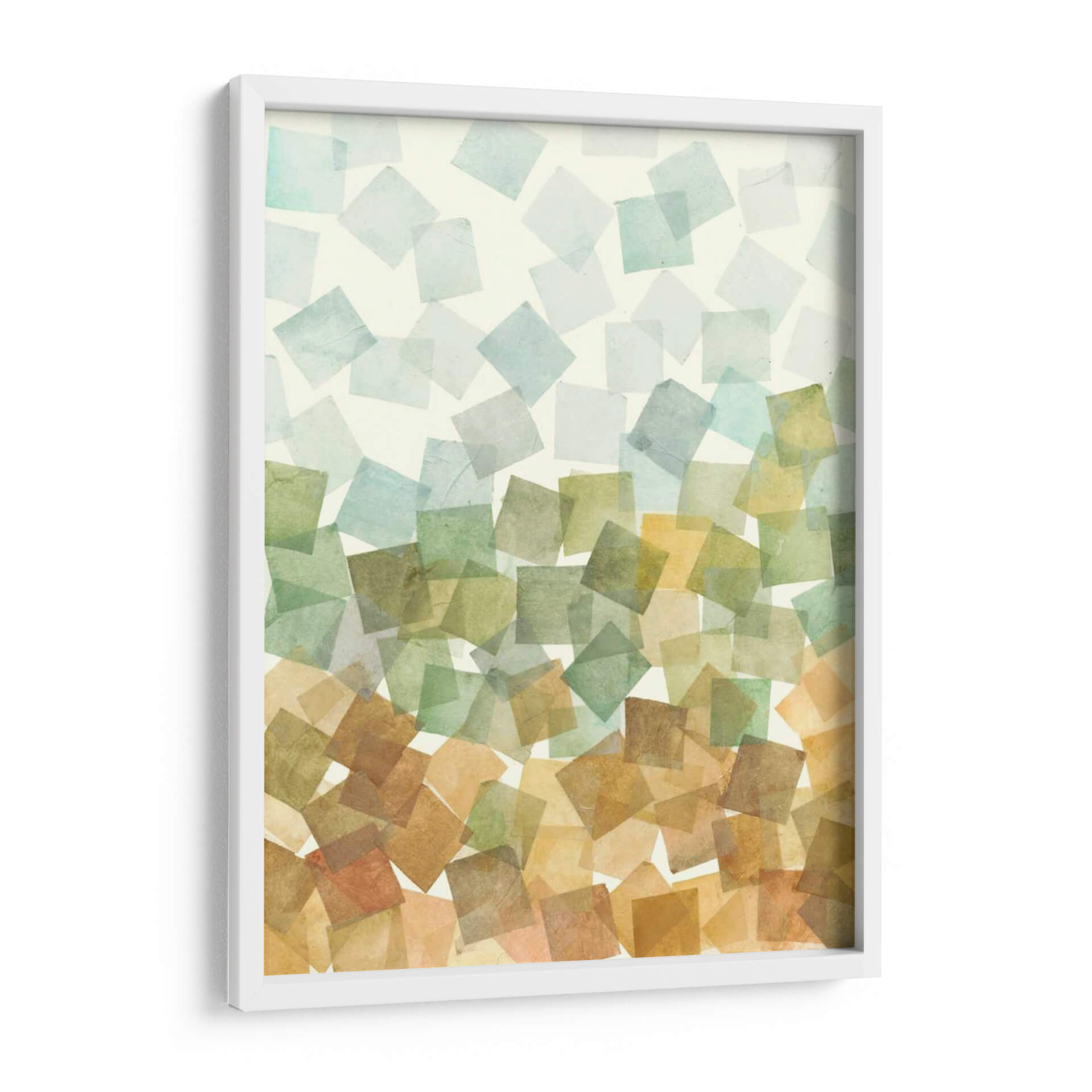 Sumérgete en la serenidad y el orden abstracto con "Deconstruido Fall II II" de Megan Meagher. Esta obra de arte cautiva con su composición de formas geométricas superpuestas, evocando la delicadeza de las hojas de otoño cayendo suavemente. La paleta de colores, que transita desde suaves tonos celestes y verdosos en la parte superior hacia cálidos ocres y terracotas en la base, crea una atmósfera de transición y armonía natural. Cada cuadrado, con su textura sutil y translucidez, parece flotar, invitando a la contemplación y a la calma. Ideal para añadir un toque de sofisticación orgánica a tu sala de estar, dormitorio u oficina, este cuadro decorativo abstracto se convierte en un punto focal que inspira tranquilidad y conexión con la naturaleza. Su diseño contemporáneo y su ejecución impecable lo convierten en una pieza esencial para quienes buscan un arte que eleve su espacio y refleje una apreciación por la belleza sutil y el equilibrio. Descubre la magia de la abstracción geométrica y transforma tu hogar con esta pieza única de Megan Meagher.