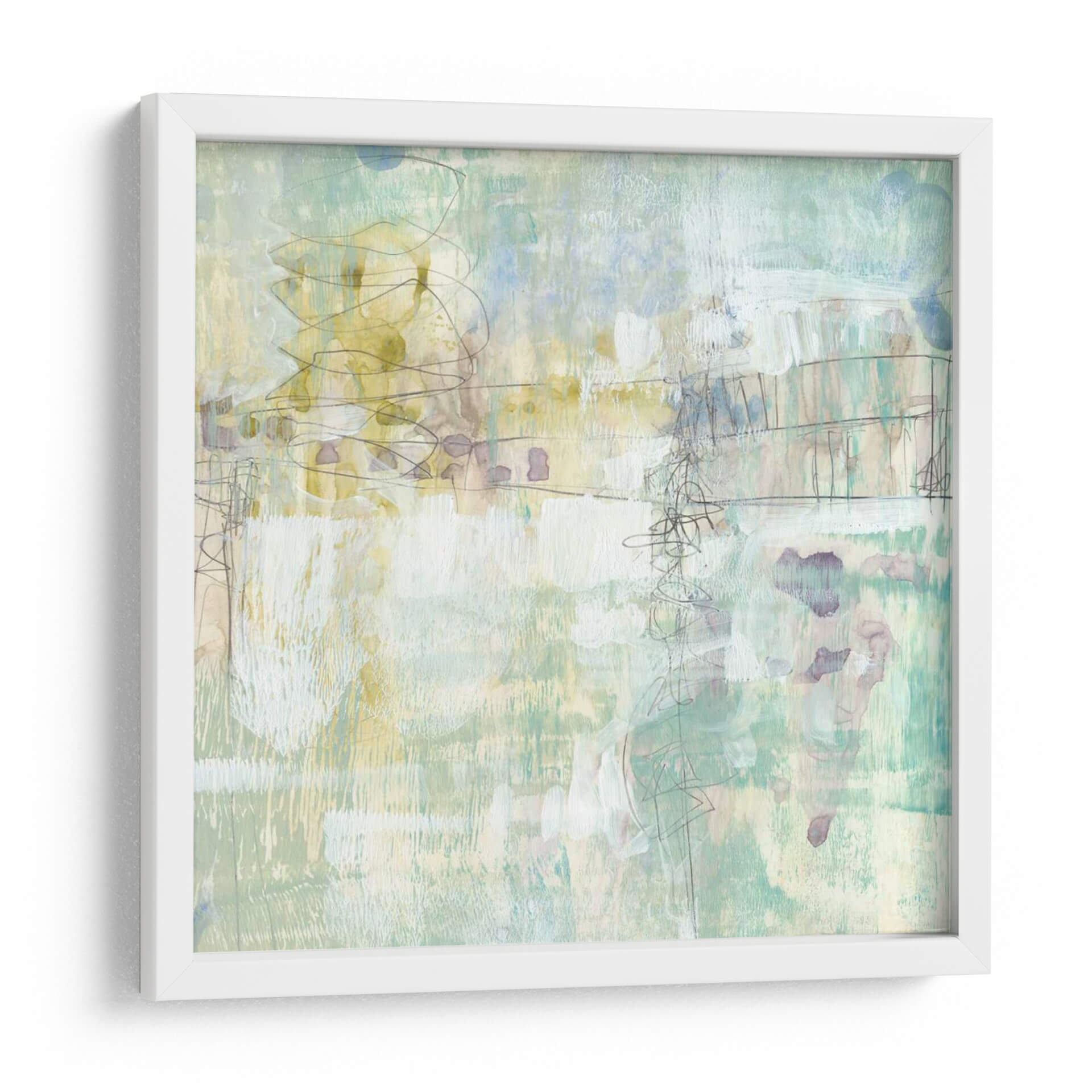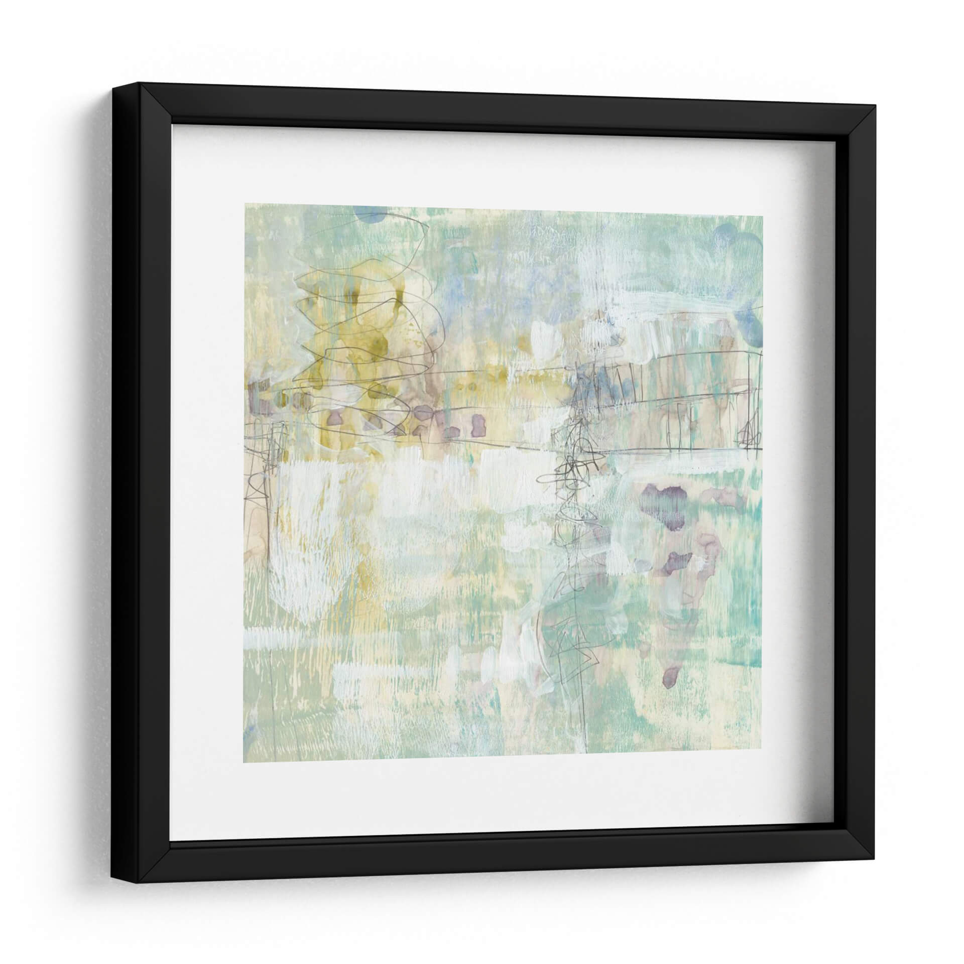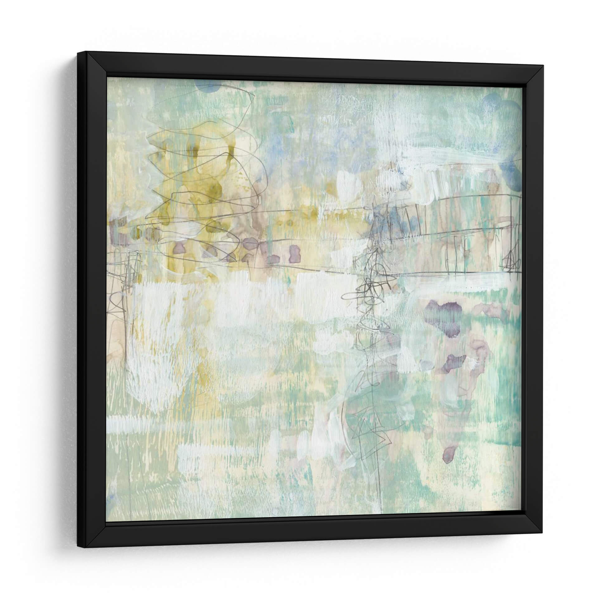 Sumérgete en la serenidad etérea de 'Desayuno Club I', una obra de arte abstracta de Jennifer Goldberger que evoca una atmósfera de calma y reflexión. Esta pieza se caracteriza por su delicada paleta de colores pastel, dominada por suaves tonos verdes menta, celestes y toques de amarillo pálido, intercalados con blancos nítidos y sutiles morados. La composición se desarrolla a través de capas de texturas visuales, donde pinceladas suaves se mezclan con finos trazos de dibujo lineal que añaden un elemento de intriga y movimiento. Es un cuadro decorativo que, a pesar de su naturaleza abstracta, sugiere paisajes etéreos o estados de ánimo contemplativos. Ideal para infundir paz y sofisticación en cualquier espacio, desde una sala de estar contemporánea hasta un tranquilo dormitorio o una oficina que busque un toque de inspiración artística. 'Desayuno Club I' es una invitación a la contemplación, perfecta para quienes aprecian el arte abstracto con profundidad emocional y una estética refinada.