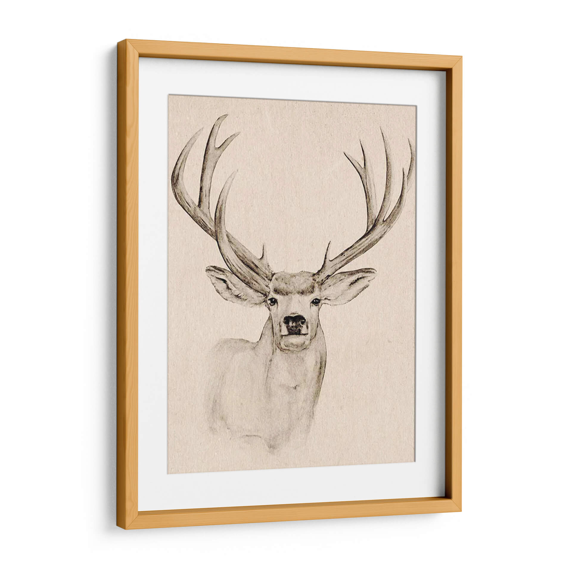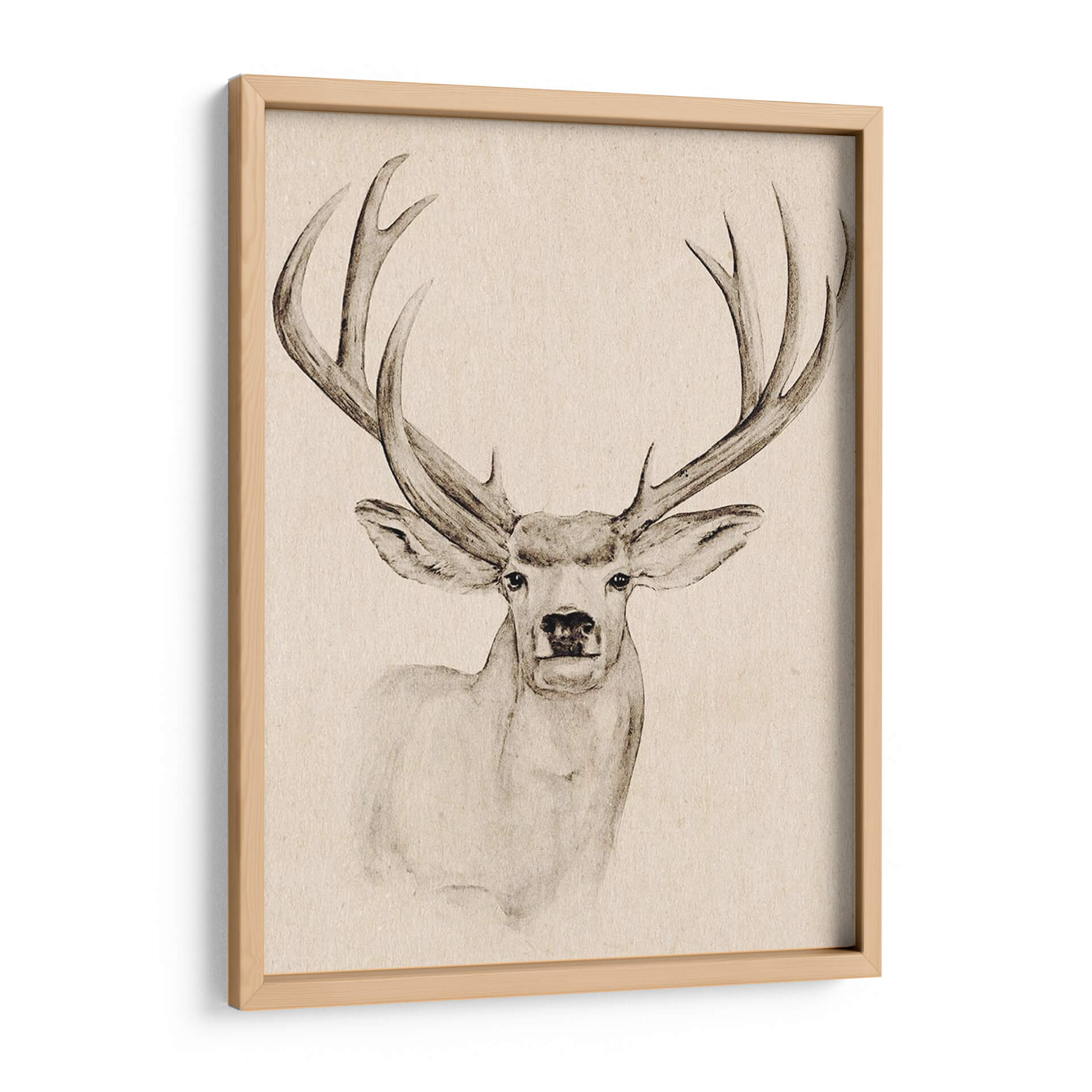 Este cautivador cuadro decorativo, 'Dinero Natural I' de Jacob Green, es una obra de arte que evoca la majestuosidad de la naturaleza y la serenidad del mundo salvaje. La pieza presenta un retrato íntimo de un ciervo con una cornamenta imponente, ejecutado con una delicada técnica que recuerda a los bocetos clásicos, pero con un toque contemporáneo. La paleta de colores se centra en tonos sepia y beige, creando una atmósfera cálida y atemporal que se integra sin esfuerzo en cualquier esquema de decoración. La mirada directa del ciervo añade un elemento de conexión profunda, invitando a la contemplación y a la reflexión sobre la belleza indómita. Este cuadro decorativo es ideal para quienes buscan infundir a sus espacios, ya sea un hogar acogedor o una oficina sofisticada, con un sentido de paz, elegancia y un vínculo con lo natural. Su estilo detallado pero sutil lo convierte en un punto focal armonioso, capaz de complementar tanto decoraciones rústicas como modernas, aportando un toque de distinción y naturaleza a la vida cotidiana. Es una pieza que inspira calma y admiración, perfecta para añadir carácter y profundidad a tus paredes.