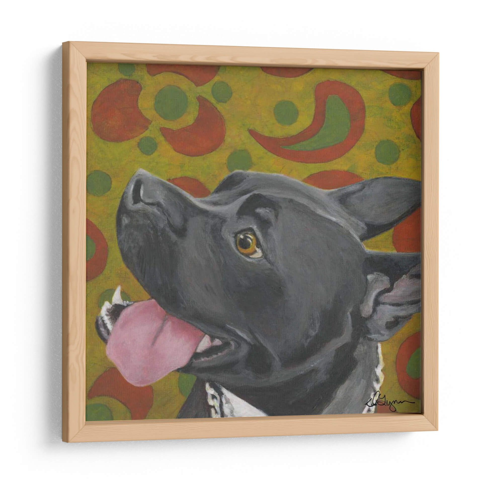 Captura la vitalidad y el espíritu juguetón de tu compañero canino con este cautivador cuadro decorativo de Dlynn Roll. La obra, titulada "Dogs Drynns - Kendall", presenta un retrato expresivo de un perro negro con la lengua fuera, rebosante de alegría y energía. El fondo, vibrante y texturizado, se compone de formas orgánicas en tonos ocres, naranjas y verdes, creando un contraste dinámico con la figura del perro. La técnica pictórica, con pinceladas audaces y un enfoque en la captura de la personalidad del animal, le otorga un aire contemporáneo y lleno de vida. Este cuadro es perfecto para amantes de los perros y para aquellos que buscan añadir un toque de color y carácter a su hogar u oficina. Ideal para salas de estar, estudios o cualquier espacio que necesite un punto focal lleno de personalidad y calidez. Su estilo único lo convierte en una pieza de conversación que evoca sentimientos de felicidad y lealtad.
