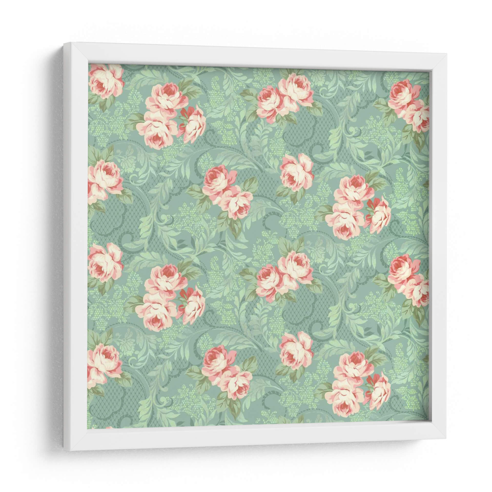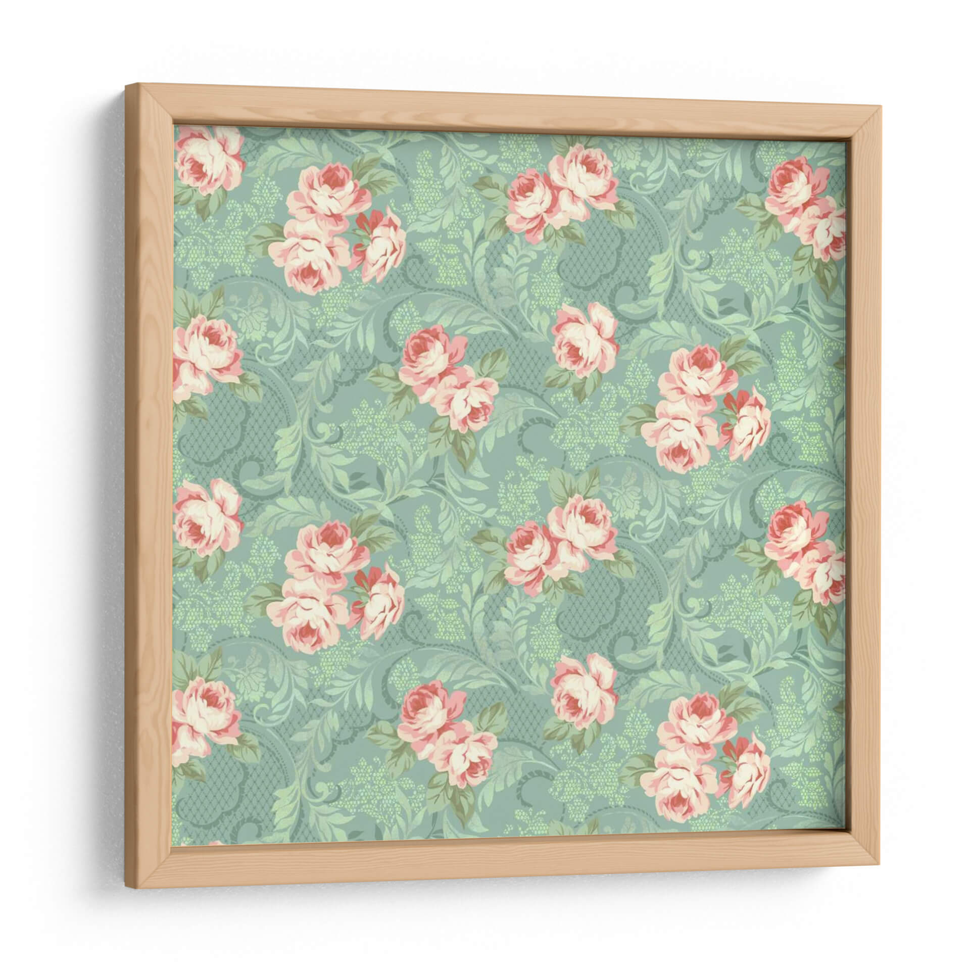 Sumérgete en la delicadeza atemporal de 'Downton Roses III', una obra de arte que captura la esencia de la belleza floral con un toque contemporáneo. Este cuadro decorativo presenta un patrón intrincado de rosas en tonos rosados y blancos, delicadamente dispuestas sobre un fondo verde menta con un sutil diseño damasco y motivos botánicos en relieve. La composición simétrica y el uso de una paleta de colores suaves y armoniosos crean una atmósfera de calma y elegancia. La técnica de Katia Hoffman, sutil y detallada, evoca un estilo que recuerda a los papeles pintados clásicos, pero con una frescura que lo hace perfecto para interiores modernos y tradicionales. Ideal para añadir un toque de sofisticación romántica a tu sala de estar, dormitorio o incluso a un espacio de oficina que necesite un soplo de naturaleza y serenidad. Las rosas, símbolos de amor y belleza, se entrelazan con el follaje creando una sensación de profundidad y movimiento. Este cuadro es una invitación a la contemplación, perfecto para quienes aprecian el arte floral detallado y buscan una pieza que aporte dulzura y estilo a su hogar. Su diseño versátil permite integrarlo en diversas decoraciones, desde lo bohemio hasta lo más clásico, asegurando un punto focal encantador.