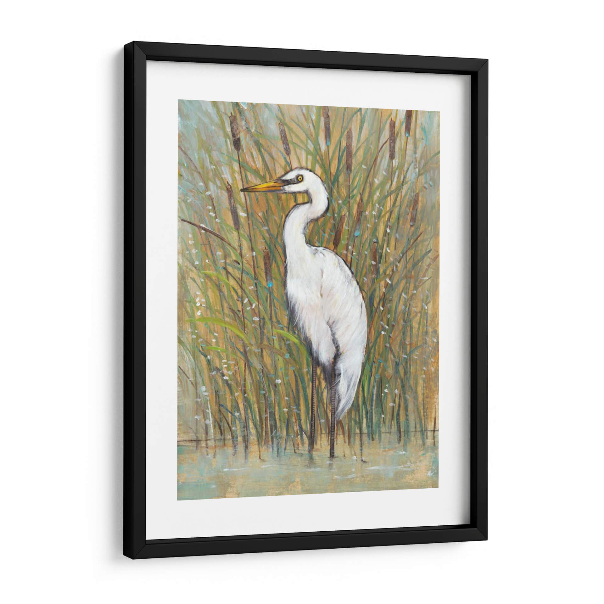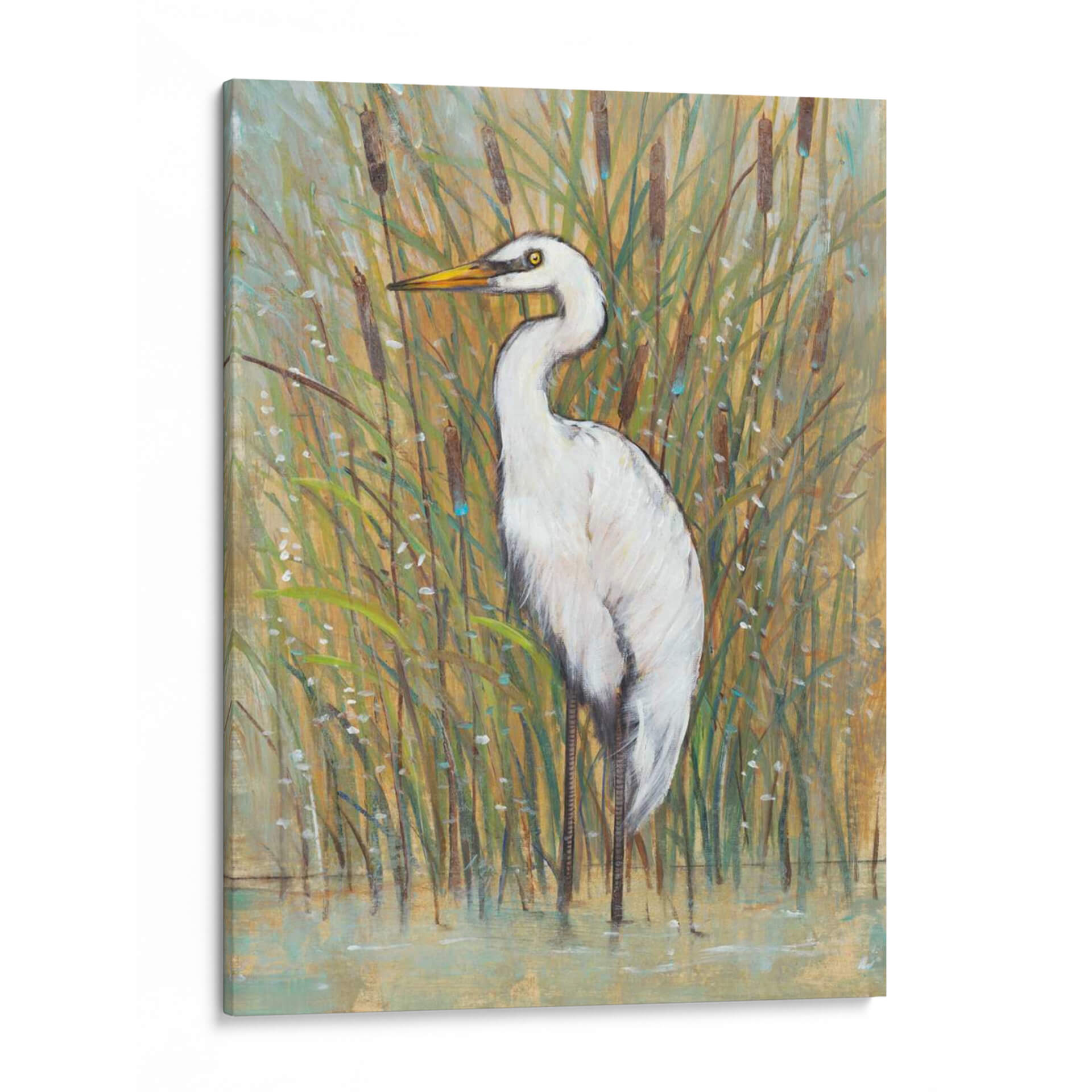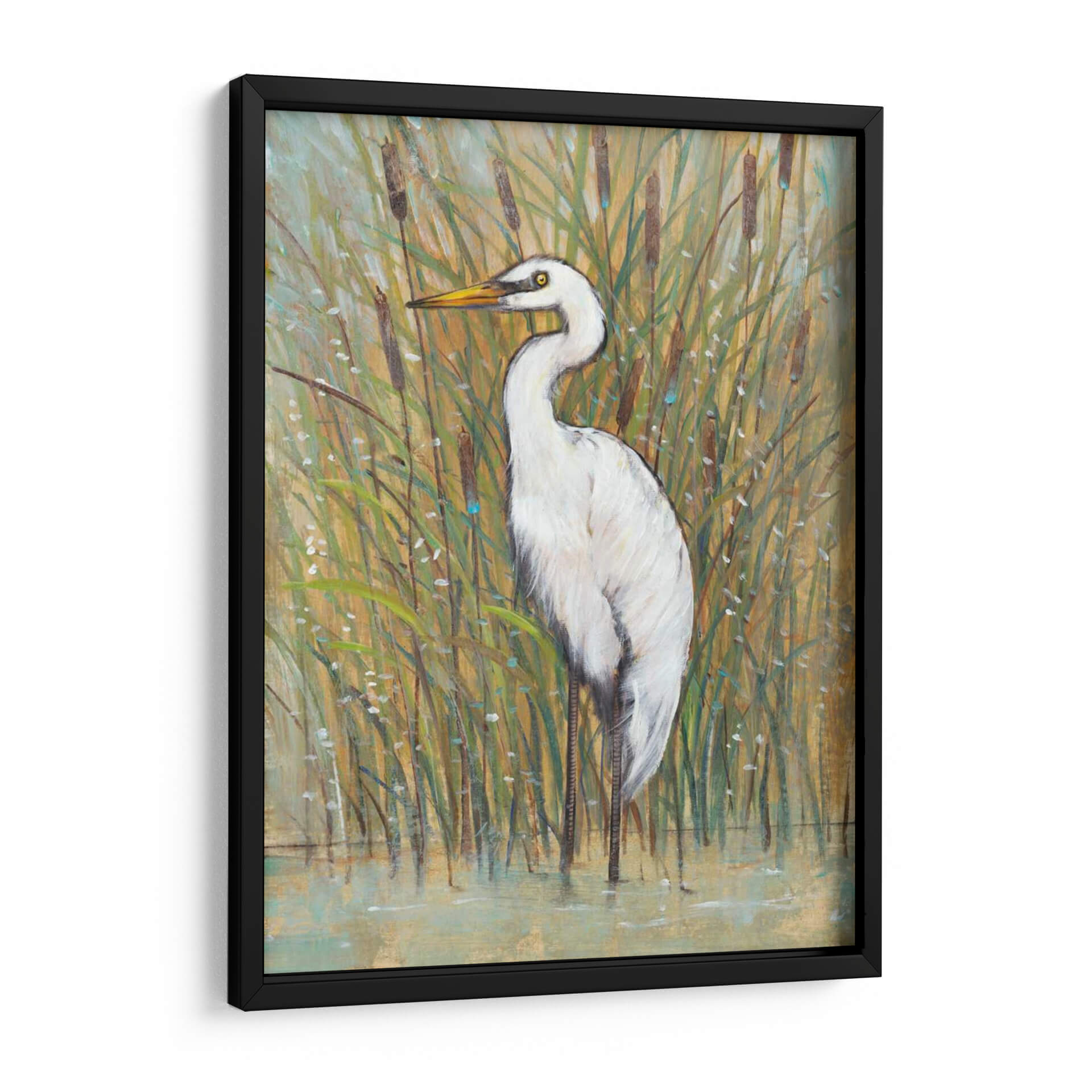 Sumérgete en la serenidad de la naturaleza con "Egret Blanco I", una cautivadora obra de arte de Tim O'Toole que captura la elegancia de una garza blanca en su hábitat natural. La pieza presenta una composición magistral donde la figura central de la garza, de un blanco puro y plumaje detallado, se alza con gracia entre una densa vegetación de juncos y totoras. La paleta de colores, dominada por tonos verdes, ocres y toques de azul aguamarina en el agua, evoca una atmósfera de paz y tranquilidad, transportando al espectador a un oasis de calma. El estilo pictórico, con pinceladas sugerentes y una textura rica, aporta profundidad y movimiento a la escena. "Egret Blanco I" es más que un simple cuadro decorativo; es una ventana a la belleza serena del mundo natural, ideal para añadir un toque de sofisticación y armonía a tu sala de estar, dormitorio u oficina. Su presencia aporta una sensación de quietud y conexión con la naturaleza, convirtiéndola en una elección perfecta para quienes buscan un refugio visual en su hogar. Este cuadro decorativo es una pieza excepcional que combina arte contemporáneo con la atemporalidad de la vida silvestre, creando un punto focal que invita a la contemplación y al relax, transformando cualquier espacio en un santuario de paz.