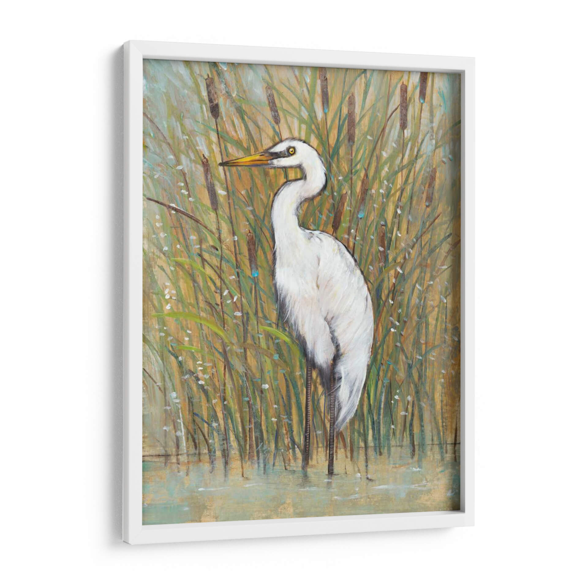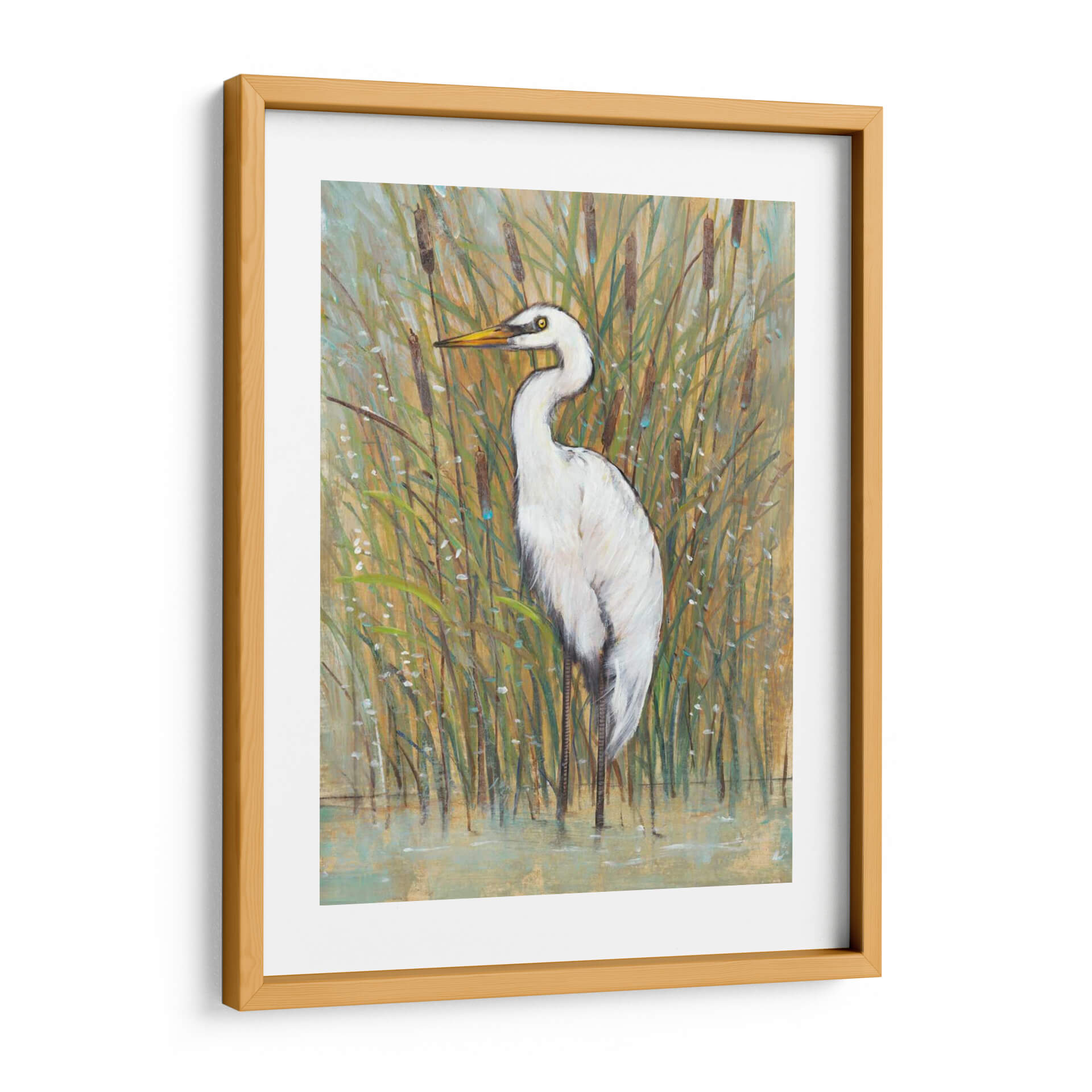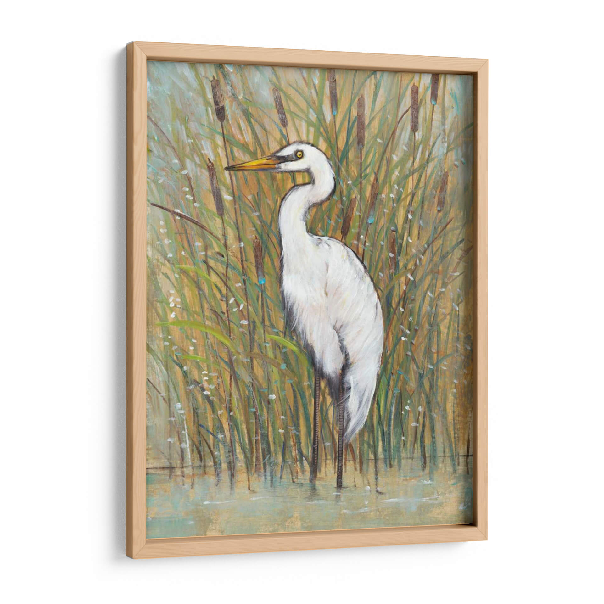Sumérgete en la serenidad de la naturaleza con "Egret Blanco I", una cautivadora obra de arte de Tim O'Toole que captura la elegancia de una garza blanca en su hábitat natural. La pieza presenta una composición magistral donde la figura central de la garza, de un blanco puro y plumaje detallado, se alza con gracia entre una densa vegetación de juncos y totoras. La paleta de colores, dominada por tonos verdes, ocres y toques de azul aguamarina en el agua, evoca una atmósfera de paz y tranquilidad, transportando al espectador a un oasis de calma. El estilo pictórico, con pinceladas sugerentes y una textura rica, aporta profundidad y movimiento a la escena. "Egret Blanco I" es más que un simple cuadro decorativo; es una ventana a la belleza serena del mundo natural, ideal para añadir un toque de sofisticación y armonía a tu sala de estar, dormitorio u oficina. Su presencia aporta una sensación de quietud y conexión con la naturaleza, convirtiéndola en una elección perfecta para quienes buscan un refugio visual en su hogar. Este cuadro decorativo es una pieza excepcional que combina arte contemporáneo con la atemporalidad de la vida silvestre, creando un punto focal que invita a la contemplación y al relax, transformando cualquier espacio en un santuario de paz.