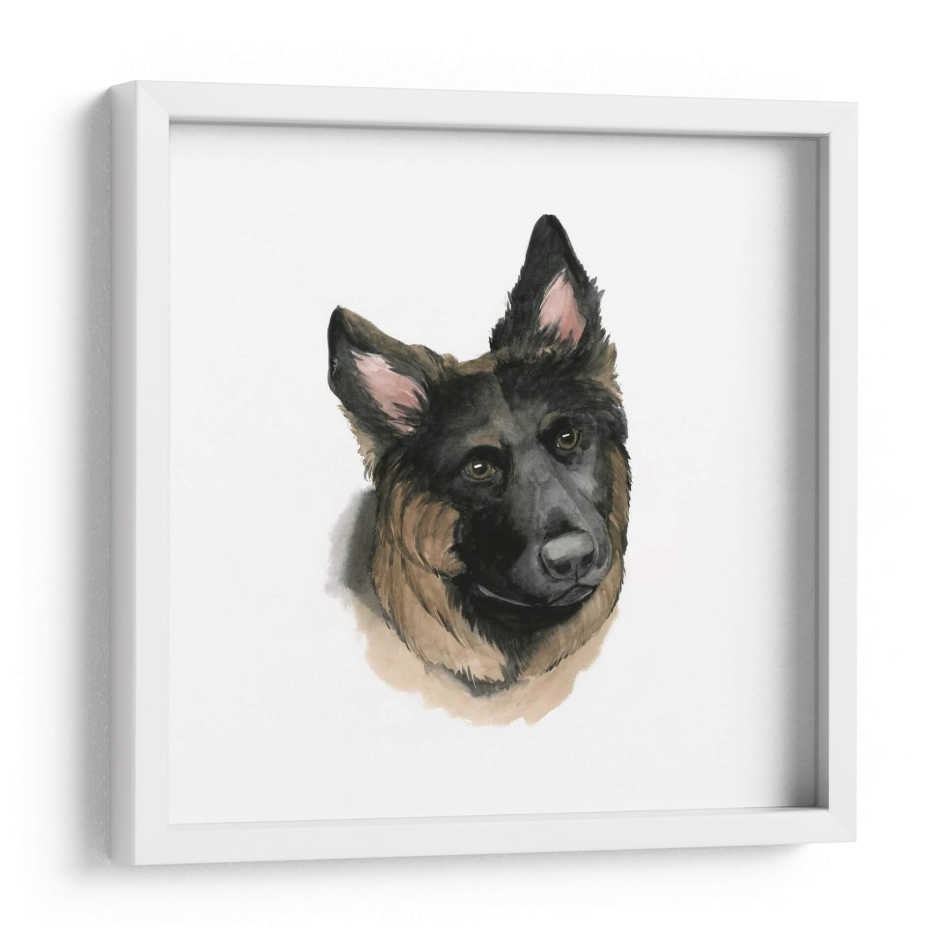 Captura la lealtad y la nobleza con este conmovedor cuadro decorativo de un Pastor Alemán, "El Mejor Amigo De Los Humanos II", obra de Grace Popp. Realizada con una técnica que evoca la delicadeza de la acuarela, esta pieza presenta un primer plano íntimo del rostro del perro, destacando sus expresivos ojos y sus orejas alertas. La paleta de colores, dominada por tonos tierra, negros y suaves rosas en el interior de las orejas, crea una atmósfera cálida y familiar. El estilo, que combina el realismo con toques de acuarela suelta, le confiere una sensibilidad única, perfecta para amantes de los animales y aquellos que aprecian el arte figurativo con alma. Este cuadro decorativo es ideal para añadir un punto de calidez y personalidad a tu sala de estar, estudio u oficina, rindiendo homenaje al vínculo inquebrantable entre humanos y sus compañeros caninos. La composición centra la atención en la mirada penetrante del animal, invitando a la reflexión sobre la inteligencia y el espíritu de estos fieles animales. Una adición perfecta para cualquier espacio que necesite un toque de carácter y afecto.