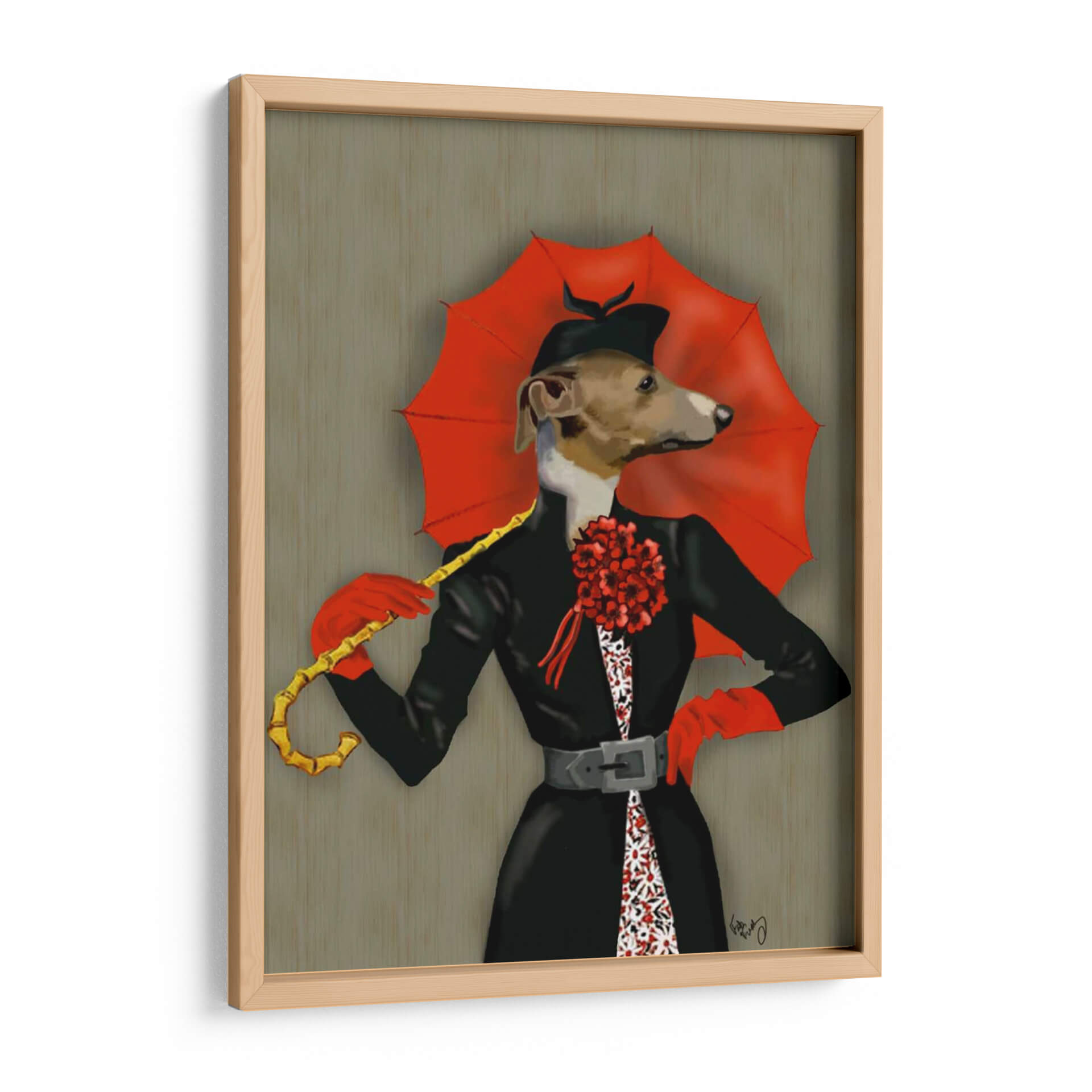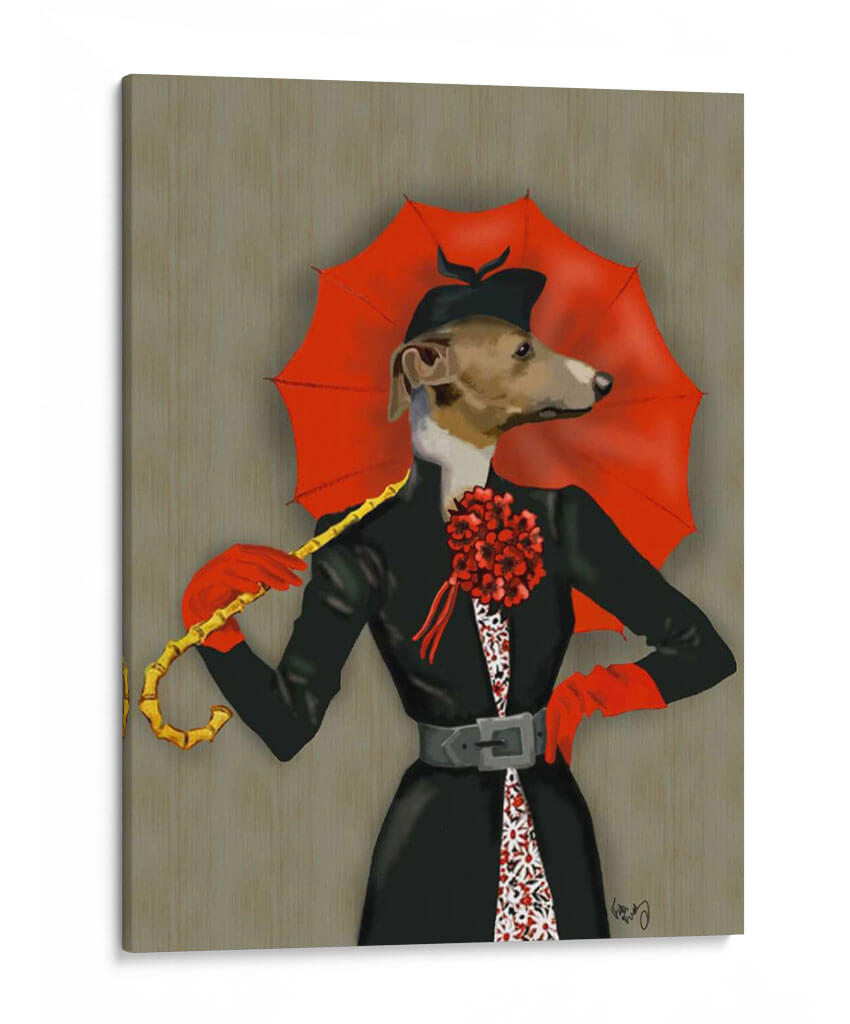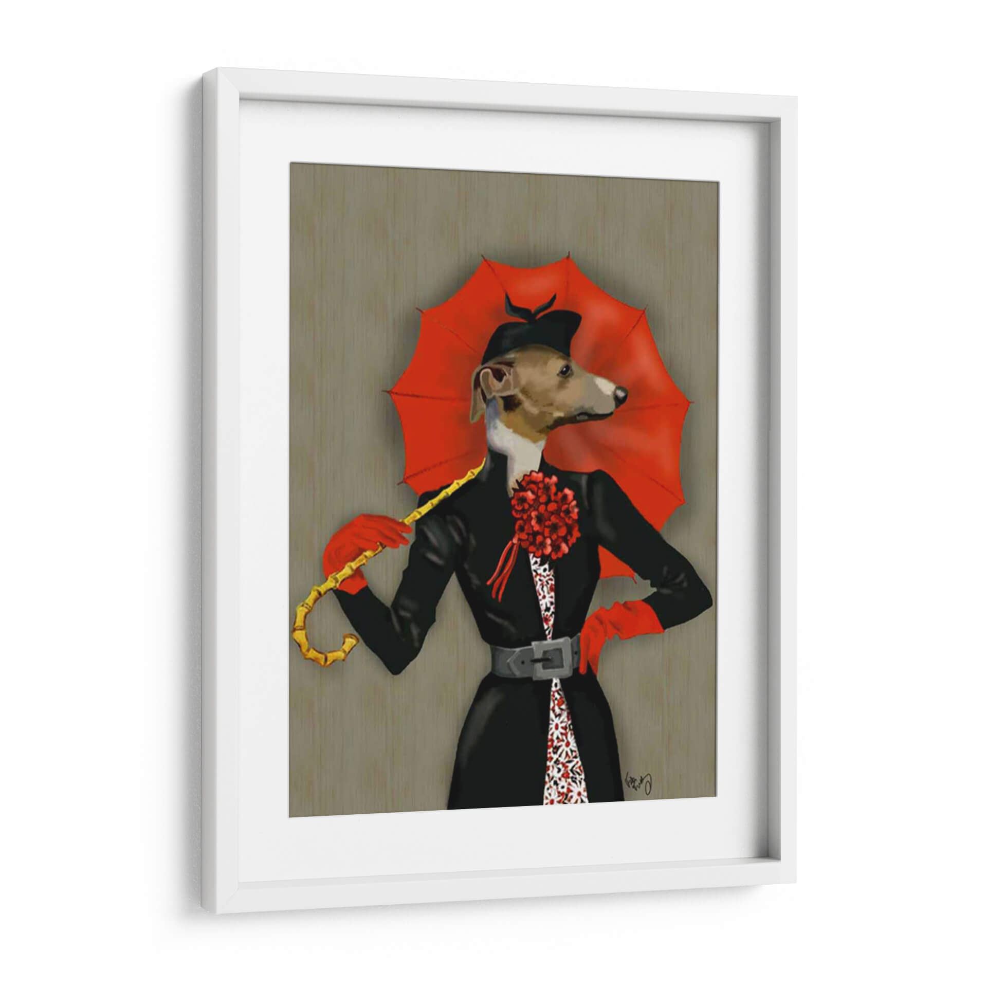 Elegante Galgo Y Paraguas Rojo. - Fab Funky