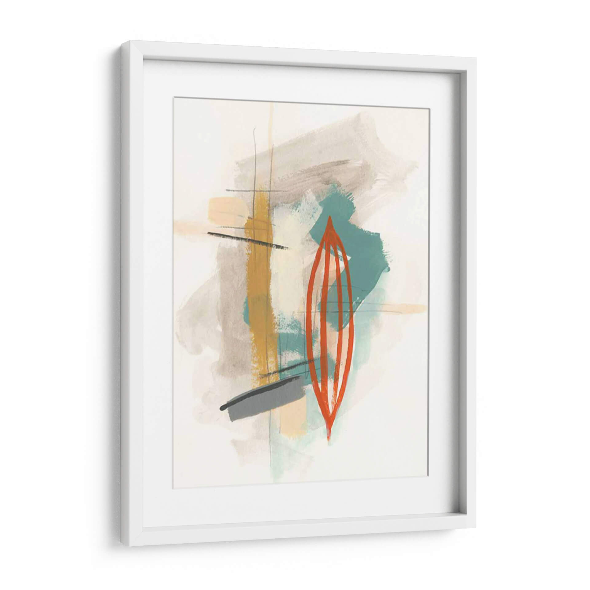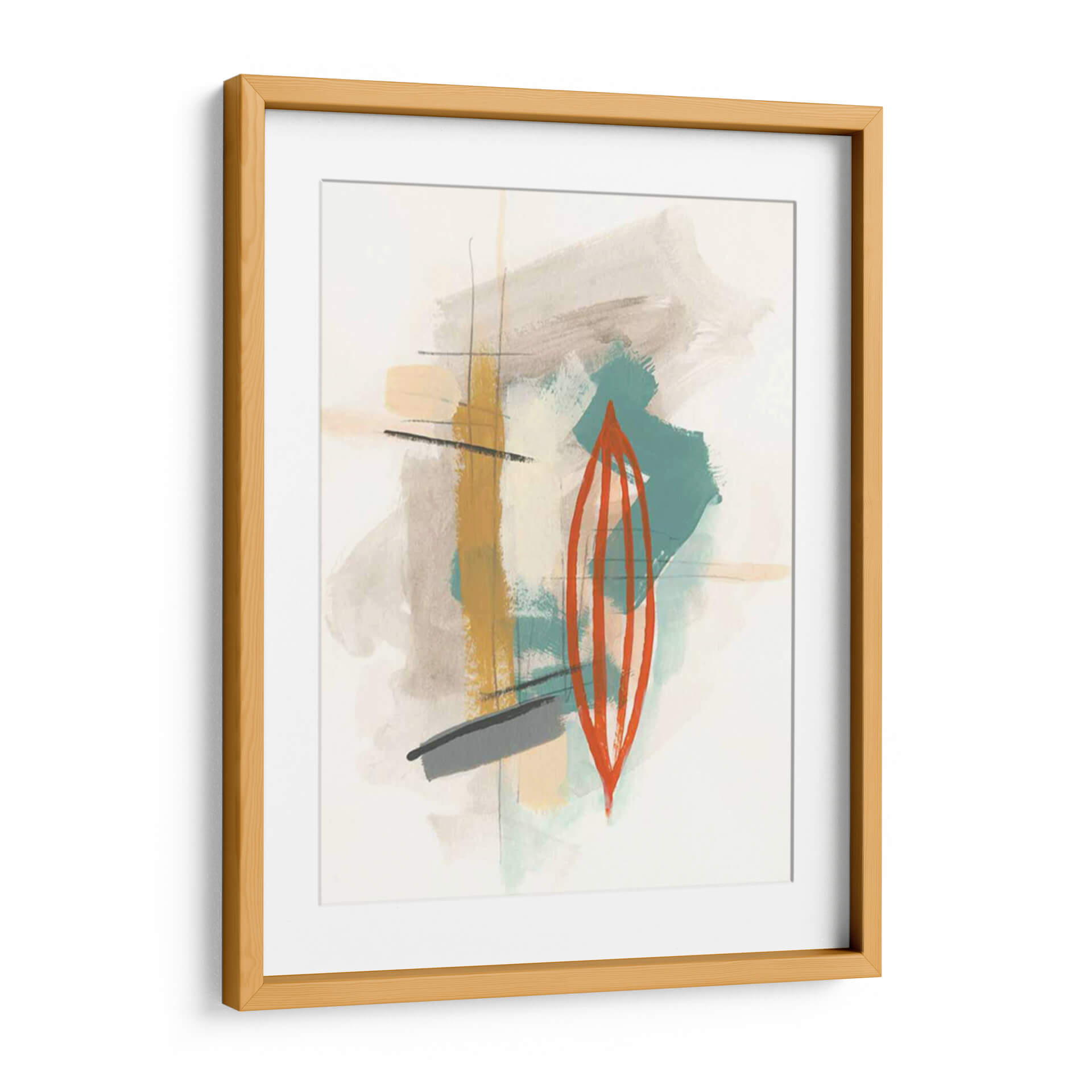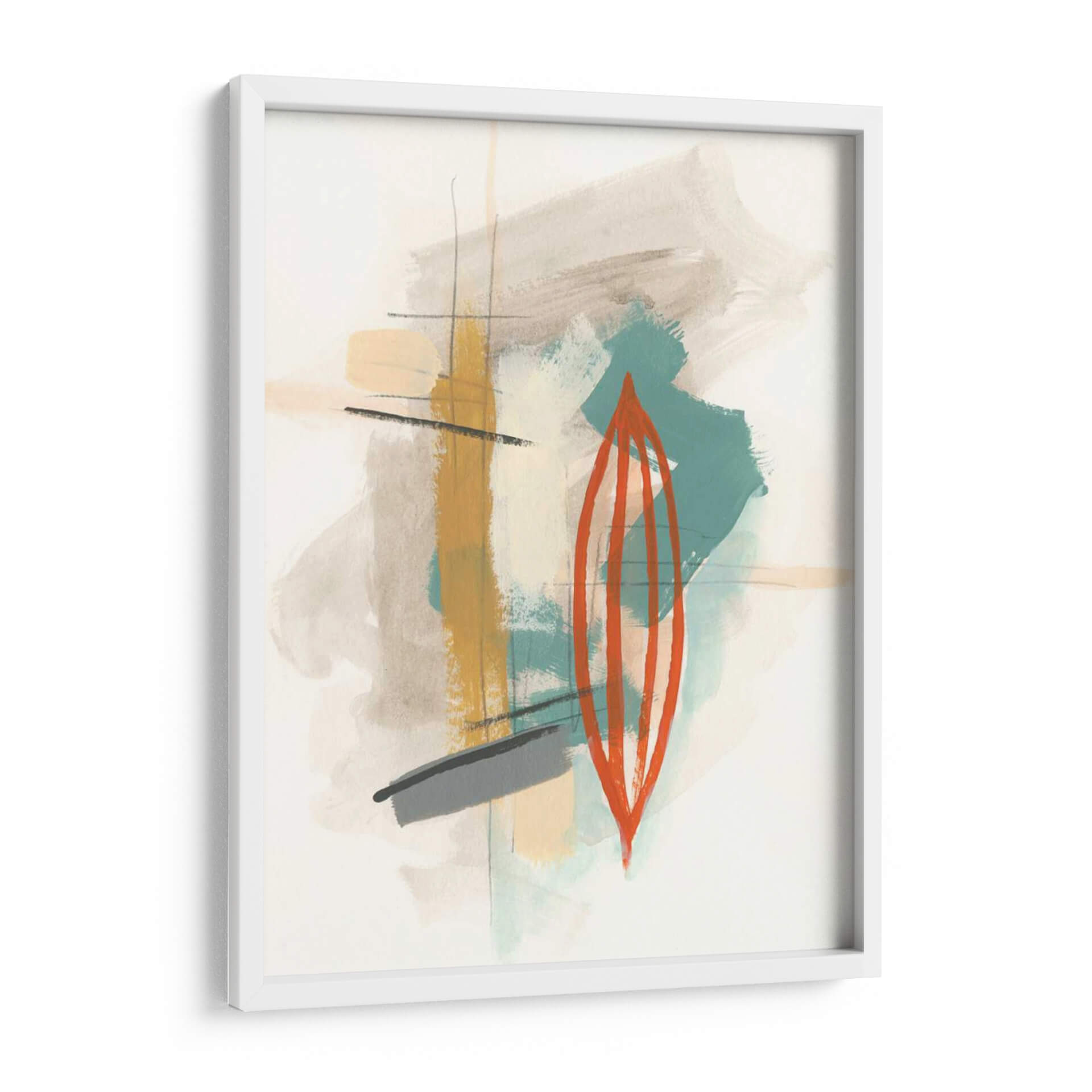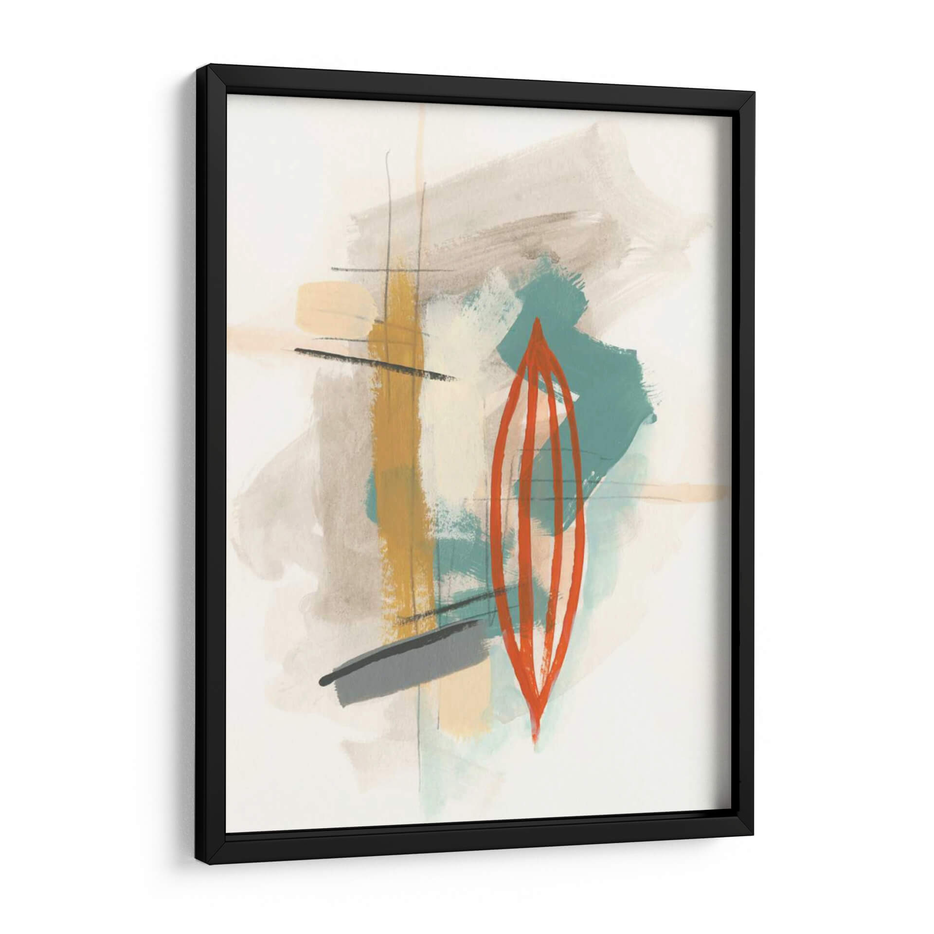 Sumérgete en la cautivadora obra abstracta "Elementos I" de June Erica Vess, una pieza que redefine la expresión contemporánea a través de un juego de texturas y formas orgánicas. Este cuadro decorativo presenta una paleta de colores terrosos y sutiles toques de verde azulado, contrastando con un audaz elemento central de color naranja vibrante, que evoca una sensación de energía contenida y dinamismo. Las pinceladas sueltas y gestuales, junto con finas líneas verticales y horizontales, crean una composición equilibrada que invita a la contemplación. "Elementos I" es ideal para añadir un toque de sofisticación moderna a cualquier espacio, ya sea una sala de estar, una oficina o un dormitorio, transformándolo en un lienzo de expresión artística. Su diseño abstracto permite una interpretación personal, convirtiéndose en un punto focal único que complementa estilos decorativos variados, desde el minimalista hasta el bohemio chic. Descubre la belleza de lo abstracto y eleva tu decoración con esta pieza inspiradora.